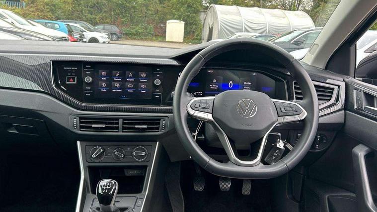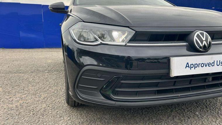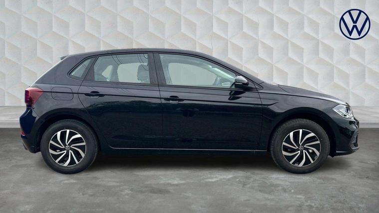 Adaptive cruise control without follow-to-stop and speed limiter, Advanced driver attention and drowsiness monitor, Bluetooth mobile phone interface, Dynamic road sign display, Emergency call service, Power assisted speed sensitive steering, Preparation for navigation system with media and internet package, Preparation for We connect and We connect plus, Speedo and rev counter, electronic odometer, trip, service interval display and exterior temperature gauge, Standard rear axle, Travel Assist - Lane keeping system and traffic jam assist, Travel assist including emergency assist, Trip computer, Warning signal and warning light for front and rear seatbelts not fastened, Washer fluid level indicator, Wireless app connect, Front wheel drive, Rear shock absorpion, Start-stop system with battery regeneration (recuperation - energy recovery during braking), DAB Digital radio, Diversity antenna for FM reception, Front and rear 6 speakers, Automatic dimming interior rear view mirror, Automatic headlight control with LED separate daytime running lights with coming/leaving home function, Body colour bumpers with chrome inserts, Body colour door handles, Body colour door mirrors, Electric front windows, Engine badge deletion, Headlight range adjustment, Heat insulating and laminated safety glass windshield, Heat insulating darkened glass in side and rear windows, Heat insulating glass windscreen, LED Headlights, LED rear combination lamps, Power folding adjustable/heated exterior mirrors and front passenger exterior mirror lowering function, Rain sensor, Rear electric windows, Rear fog light, Rear side wing doors, Rear windscreen washer and wiper with interval delay, Third brake light, 12V power socket in centre console, 2 front and 2 rear reading lights with switch off delay and dimmer, 2 USB-C ports in the front, 2 USB-C charging sockets on the center console in the rear, 3 rear head restraints, 60/40 split folding rear seat and rear seat bench not split, Ceramique roof lining, Chrome plated radiator grille inserts, air vent surrounds and light switch surrounds, Door and side trim panel, Driver and front passenger seat height adjustment, Driver/passenger sunvisors with illuminated vanity mirrors, Front centre armrest, Front seat backrest storage pockets, Front standard seats, Handbrake lever handle in leather, Hartley/Thomas cloth upholstery, Headliner in recycled material, Isofix child seat preparation easy-fit (for two outer rear seats, and front passenger seat) compatible with I-size, Leather trimmed gear knob, Luggage compartment cover, Luggage compartment lighting, Removable luggage compartment floor, Single front passenger seat, Standard climatic zones, Standard pedal cluster, Three spoke leather wrapped multifunction steering wheel, Light and vision pack - Polo, 3 point height adj front seatbelts + pretensioners, 3x3 point rear seatbelts, ABS, Driver and front passenger airbag with front passenger airbag deactivation, Drivers and front passengers safety optimised head restraints, ESC (Electronic stability control) + EDL (Electronic Differntial lock) and ASR (Traction control), Extended and predictive pedestrian/ cyclist protection, Front assist with autonomous emergency braking (for Adaptive Cruise Control ACC up to 130 mph), Front curtain and side airbags with center airbag, Front disc brakes, Hill hold control, Manual child lock in rear doors, Rear drum brakes, Single tone horn, Tyre pressure loss indicator, Alarm with interior protection, Anti-theft alarm system with interior monitoring, backup horn, and towing protection, Anti-theft wheel bolts, Electronic engine immobiliser, Lava stone black gloss/matt decorative inserts in dash and front door panels, Low rolling resistance tyres,