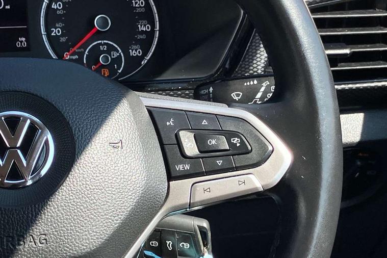 'Lights On' Reminder warning buzzer, Adaptive cruise control including front assist, radar sensor controlled distance monitoring system, city emergency braking, cruise control/speed limit, Car net app connect combined functionality of Apple CarPlay, Android Auto and MirrorLink, USB connection, audio and voice control, Driver alert system, eCall emergency call system, Lane assist, Multifunction computer with visual gear change recommendation for fuel consumption, Power assisted speed sensitive steering, Speedo, rev counter, electronic odometer, trip, service interval display, exterior temperature and fuel gauge, Stop/start system, Warning sound and light for doors and tailgate open, Warning sound and light for front seatbelts unfastened, We Connect Go Dongle, Battery regeneration during braking, Misfuel prevention device, 2x USB connection with USB charging sockets and in rear centre console, Premium USB cable for Apple or Android smartphone compatibility, Automatic dimming interior rear view mirror, Automatic hazard lights activation under emergency braking, Black roof rails, Body colour door handles, Body coloured bumpers, Dusk sensor + automatic driving lights, Front and rear electric windows, Front fog lights with static cornering function, Galvanised body, Heated rear window, High level 3rd brake light, Lower door sills and door pillars in black, Manual coming/automatic leaving home lighting function, Radiator grille with high gloss surface and chrome strip, Rain sensor, Rear lights incorporating LED technology, Rear window aerial, Rear windscreen washer and wiper with interval delay, Reflectors in all doors, Tailgate with integrated roof spoiler, Windscreen wipers/ intermittent wipe + 4 position delay, 12V Accessory socket in centre console, 3 rear head restraints and 3 rear three point seat belts with ECE label, 60/40 split folding rear seat backrest, Drawer under drivers seat, Driver and front passenger sunvisor with vanity mirror, Driver's sunvisor with ticket holder, Dust and pollen filter, Front and rear reading lights X 2, Front centre armrest with storage compartment, Front seat back storage pockets, Glovebox, Heating and fresh air system with 4 stage blower, Height/reach adjust steering wheel, Instrument lighting white adjustable panel illumination, Interior light with delay, Isofix child seat preparation for 2 rear child seats, Luggage compartment cover, Luggage compartment lighting, Manual front seats with height adjustment, Moveable and foldable Rear bench seat, Storage compartment in drivers and front passengers door, Variable boot floor, Anti-lock Braking System (ABS) with Hydraulic Brake Assist (HBA), Automatic post collision braking system, Driver and front passenger safety-optimised head restraints, Drivers and Front Passengers airbags with front passengers airbag deactivation switch, ESC with EDL, ASR, EDTC and trailer stabilisation function, Extended and proactive pedestrian protection, Front and rear curtain airbags, Front disc brakes and rear drum brakes, Front seat side impact airbags, Height adjustable 3 point automatic front seatbelts with pretensioners, Hill start assist, Pre crash preventive occupant protection, Rigid safety cell with front and rear crumple zones, Tyre pressure loss indicator, Volkswagen roadside assistance, Alarm with interior protection and deactivation via infotainment system, Child security locks in rear doors, Remote tailgate unlocking using key fob,