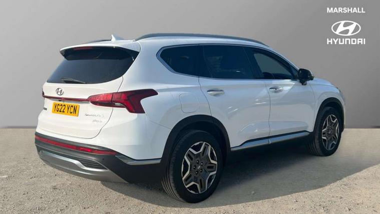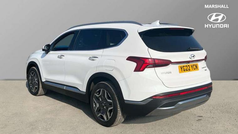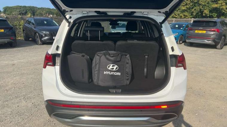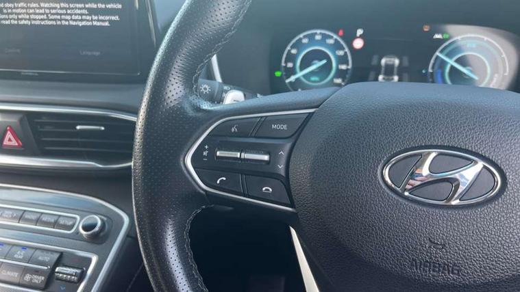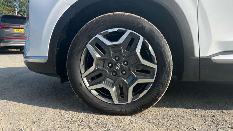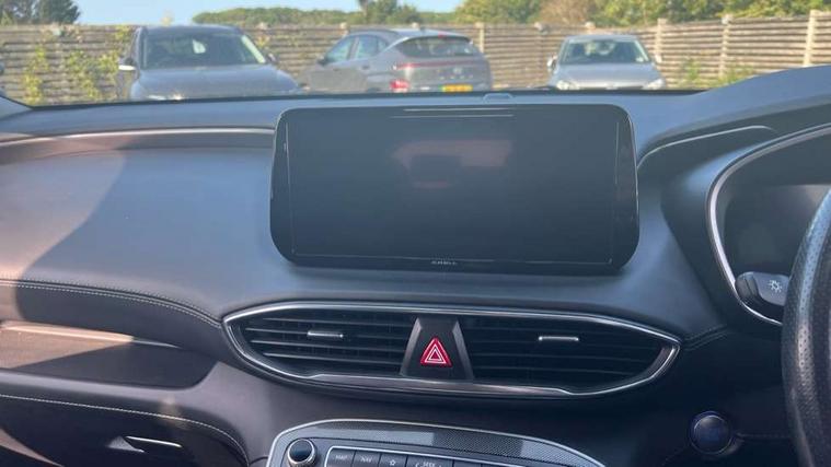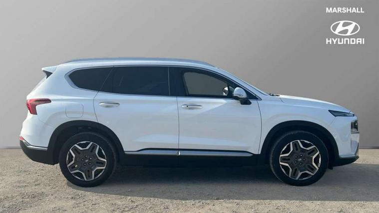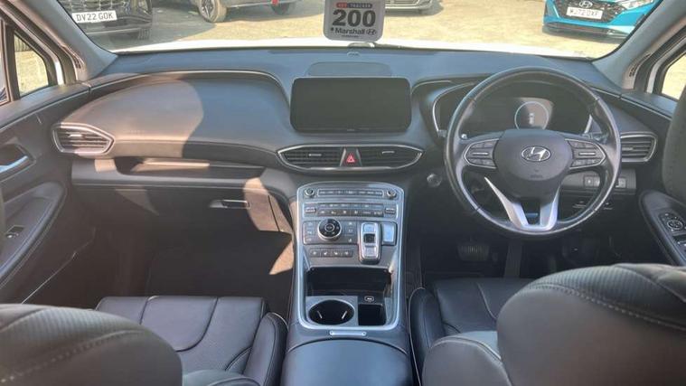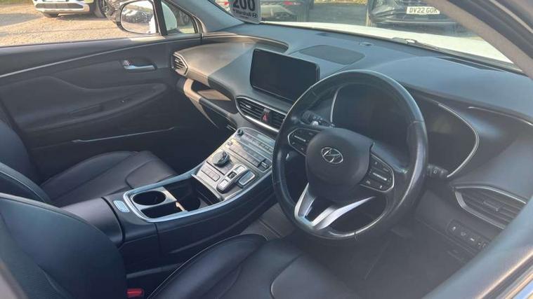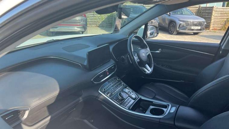 10.25" touchscreen satellite navigation with mapcare and live services, 12.3" TFT supervision cluster display, Apple car play/Android Auto, Blind spot collision avoidance assist, Blind spot monitor, Bluetooth connectivity with voice control, Cruise control - smart adaptive speed control with stop and go function, Drive mode selector, Driver attention alert system, E-call, Emergency stop signalling system, Forward Collision Avoidance Assist (FCA) - Car, Pedestrian and Cycle, Forward Collision Avoidance Assist Junction Turning (FCAJX), Front parking sensor, Head up Display, Highway driver assist, Intelligent speed limit warning, Lane departure warning system with lane keep assist - LKAS, Parking system with surround view monitor, PAS, Rear cross traffic alert, Rear parking sensor, Remote smart parking, Reverse parking collision aviodance assist, Safe exist assist (SEA), Smart electric tailgate with hand's free opening function, Smart posture control, Smartphone connectivity, Smartphone wireless charging plate, Trip computer, 3.3 kW On Board Charger, Charging cable - 7 pin type 2, Emergency 3 pin connector charging cable (ICCB), Self levelling suspension, Auxiliary input socket, DAB Digital radio, Krell premium audio with 10 speakers including external amplifier and subwoofer, Rear USB port, Steering wheel mounted controls, USB connection located in centre console, Automatic defog system, Automatic dimming rear view mirror, Automatic headlights with dusk sensor, Automatic windscreen wiper control, Body colour door handles with chrome inserts, Body coloured bumpers, Body coloured door mirrors, Dynamic bending headlight/cornering lights, Electric adjustable/heated/folding door mirrors, Electric front/rear windows/one touch/anti trap, Electric glass tilt and slide panoramic sunroof, Follow me home headlights, Full LED headlights, Heated rear windscreen with washer, LED daytime running lights, LED front fog lights, LED rear fog light, LED rear lights, Positioning Lights - LED, Privacy glass in rear window and tailgate, Puddle lights, Rain sensor, Rear side wing doors, Rear wash/wipe with intermittent wipe setting, Roof rails, Smart high beam headlights, Solar glass with windscreen shade band, Third brake light, Trailer stability assist, Variable front intermittent wipers, Windscreen wiper de-icer, 12V power point in luggage area, 12V power points in front + rear centre consoles, 2 seat bench in 3rd row, 3 seat bench in 2nd row, 50/50 split/folding 3rd row of seats, 60/40 split folding slide/recline seats 2nd row, Adjustable head restraints, Air conditioning - rear manual temperature control, Bottle holders, Driver seat memory function, Driver's lumbar support, Driver's seat electric adjustments, Driver/passenger sunvisors + illuminated vanity mirrors (drivers with ticket holder), Dual zone climate control, Faux leather door trim, Front and rear door pockets, Front armrest with storage compartment, Front cupholders, Front map reading lights, Front passenger's seat electric adjustments, Front seat and rear pockets, Front/rear interior lights, Grab handles (x3), Heated front seats, Heated outer rear seats, Heated steering wheel, Height/reach adjustable steering column, Illuminated cooling glove compartment, Isofix child seat preparation for front passenger seat, Isofix on 2nd row outer seats, Leather wrapped gear shift knob, Leather wrapped hand brake, Leather wrapped steering wheel, Luggage compartment lighting, Luggage cover, Luggage hooks, Luggage net, Manual rear door side blinds, One-touch folding rear seats, Rear armrest with storage, Retractable load area cover, Single front passenger seat, Sunglasses holder, Underfloor storage system in load area, Ventilated front seats, Trailer wiring pack - Santa Fe, 3 point seatbelts on all seats, ABS/EBD, Childproof rear door locks, Curtain airbags, Downhill brake control, Driver and passenger airbags, Electric parking brake, ESP, Front seatbelt pretensioner, Front side airbags, Height adjustable front seatbelts, Hill start assist control (HAC), Passenger airbag deactivate switch, Rear seat belt pretensioners, Rear seat Occupancy alert, Seat belt reminder, Seatbelt warning lamp, Traction control, Tyre pressure monitoring system, Deadlocks, Engine immobiliser, Keyless entry with start/stop button, Locking wheel nuts, Remote control central locking, Speed sensitive auto door locking, Thatcham category 1 alarm, 19" Alloy wheels, Temporary spare wheel (space saver),