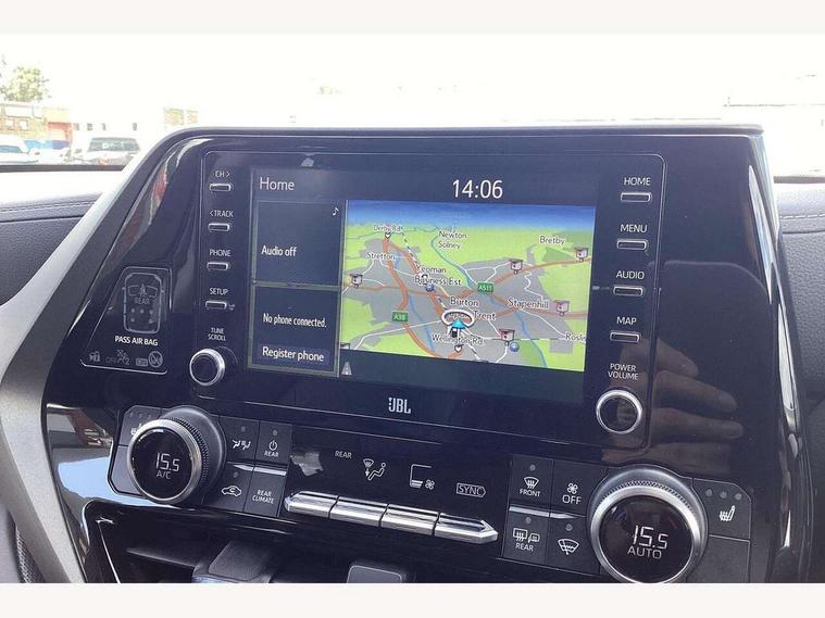 7" Multi information display screen, Blind spot monitor, Bluetooth connectivity, Dynamic guide lines on reversing camera, eCall emergency call system, Electric power steering, Emergency steering assist, Intelligent adaptive cruise control, Intelligent front parking sensors with clearance sonar and automatic braking, Intelligent rear parking sensors with clearance sonar and automatic braking, Intersection turn assist, Key reminder warning, Lane departure alert with steering control, Lane trace assist, Power boot, Rear cross traffic alert, Remote boot door release in cabin, Remote boot door release on key, Reversing camera display in audio screen, Reversing camera with washer function, Smart entry and push button start, Smartphone integration compatible with Apple CarPlay and Android Auto, Tailgate release with push button, Telephone switch on steering wheel, Trip computer, Voice recognition, Washer fluid level warning, Wireless Mobile Phone Charger, McPherson strut front suspension, Vehicle Stability Control (VSC), Audio switch on steering wheel, Aux-in connector, DAB digital audio broadcast, JBL Premium sound system with 11 speakers, Mic with (array mic), Rear passenger USB connectors x 2, Toyota touch 2 multimedia system with 8" display, Toyota touch 2 with go navigation system, USB connector x3, Body colured rear spoiler, Anti-jam protection on power windows, Auto dimming electrochrome rear view mirror, Auto folding heated mirrors with puddle lights, Auto up and down function on all power windows, Automatic headlights, Automatic high beam - AHB, Automatic wipers, Black painted upper front grille, Body coloured bumpers, Body coloured door handles, Body coloured door mirrors, Body coloured roof, Chrome door belt moulding, Chrome insert on upper front grille, Chrome roof rails, Chrome surround on upper front grille, Clear headlights design, Fitting correspondence, Front and rear power windows, Glossy black front pillar, Headlight cleaners, Heated washer nozzle on windscreen, Indicators integrated on door mirrors, LED daytime running lights, LED front fog lights, LED front light guide, LED High mounted stop light, LED rear brake lights, LED rear combination lights, Lower front grille shape, Manual headlight levelling, Noise reduction layer on front windows, Noise reduction layer on windshield, Power adjustable door mirrors, Projector Dual beam LED Lights, Rear side wing doors, Rear tailgate with fixed window, Rear window defogger, Rear window wiper, RHD aiming, Shark fin antenna, Silver rear under-run, Toyota skyview opening panoramic sunroof, Trailer Sway Control, UV-filter on driver and passenger windows, UV-filter on rear windows, Variable intermittent windscreen wipers, Windscreen wiper de-icer, 2nd row rear passenger room LED light, 2nd row rear passenger window manual sunshades, 3rd row 2-seat rear bench, 3rd row rear passenger room LED light, 5 rear headrests, 60/40 split folding 3 rear seats in 2nd row, 60/40 split folding 3rd row rear seat, Adjustable rear headrests, Adjustable speed limiter switch on steering wheel, Assist grips front, Assist grips rear, Boot underfloor storage, Central armrest, Chrome insert on front cup holders, Clean air filter, Door courtesy light, Driver and front passenger personal LED lights, Driver and front passenger Whiplash Injury Lessening seats, Front 2x12V power socket, Front footwell lights, Grey roof lining, Grey stitching on steering wheel, Heated driver and front passenger seats, Heated steering wheel, Height adjustable front head restraints, HIGHLANDER door scuff plates, Leather gear shift, Leather like front door armrests and door trim, Leather upholstery, LED boot light, LED centre room light, Light blue ambient lighting on open tray, Light blue lighting on dashboard, Light on driver sun visor, Light on passenger sun visor, Manual telescopic steering wheel, Manual tilt adjustable steering wheel, Manually adjustable lumbar support on front passenger seat, Memory function for driver seat, Mirror on driver sun visor, Mirror on passenger sun visor, Multimedia switches on steering wheel, Paddle shifts, Power adjustable lumbar support on driver seat, Power height adjustable driver seat, Power reclining driver seat, Power reclining front passenger seat, Power sliding driver seat, Power sliding front passenger seat, Rear armrest, Rear cup holders, Rear door pockets, Rear passenger air conditioning, Rear passenger air conditioning control panel, Rear passenger air vents, Rear passenger footwell heating vents, Rear passenger personal lights, Reclining 2nd row rear seats, Reclining 3rd row rear seats, Resin speaker grille, Single front passenger seat, Sliding 2nd Row rear seats, Ticket holder on driver sun visor, Toyota easy flat system, Triple zone automatic air conditioning, Voice recognition switch on steering wheel, 3x3 point rear seatbelts, Active Traction Control (TRC), Anti-lock braking system (ABS), Brake assist function, Child safety door lock, Emergency brake light signal (EBS), Front seatbelt reminder, Front ventilated disc brakes, HAC-Hill-start Assist Control, ISOFIX child restraint system, Manual child proof rear door locks, Passenger airbag on/off switch, Pre-collision system with pedestrian and cyclist detection, Pre-tensioners and force limiters, Rear seatbelt reminder, Rear ventilated disc brakes, Supplemental restraint system (SRS) airbags - 7 airbags including driver, front passenger, curtain, side and knee airbags, Tyre pressure monitoring system, Anti tamper alarm, Immobiliser, Power door locks, Speed detecting automatic door lock, Tilt detection sensors, 20" 5 triple spoke alloy wheels, Temporary spare wheel,