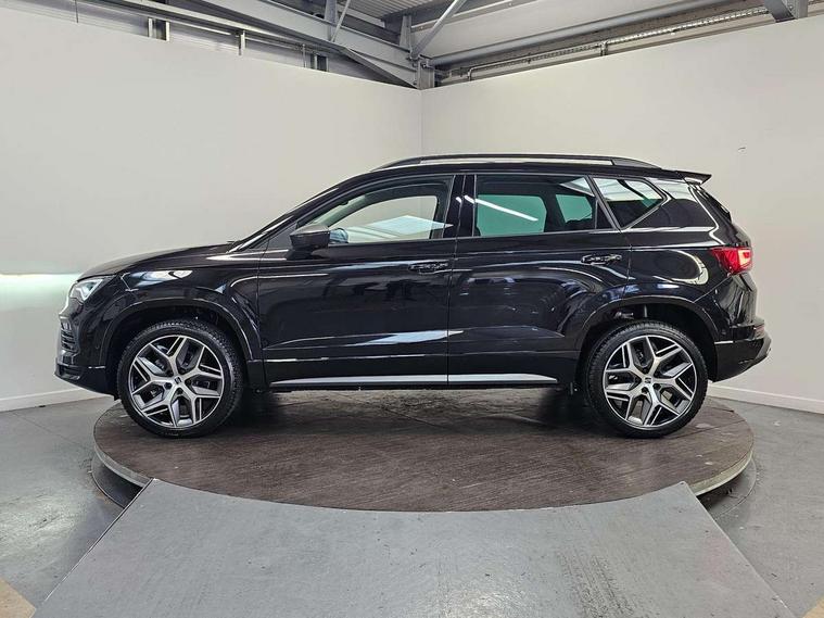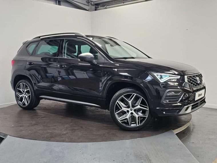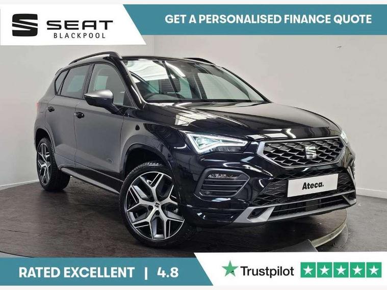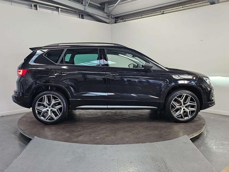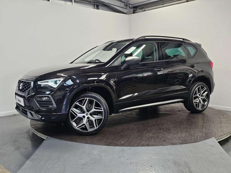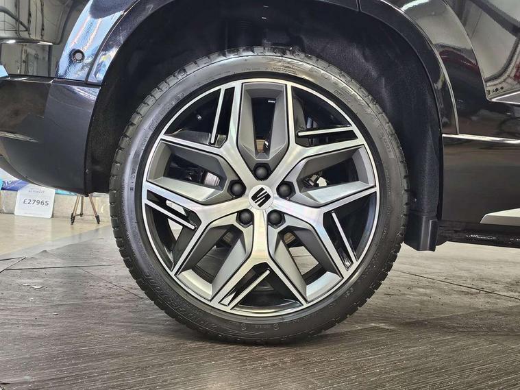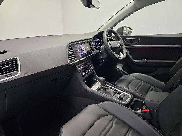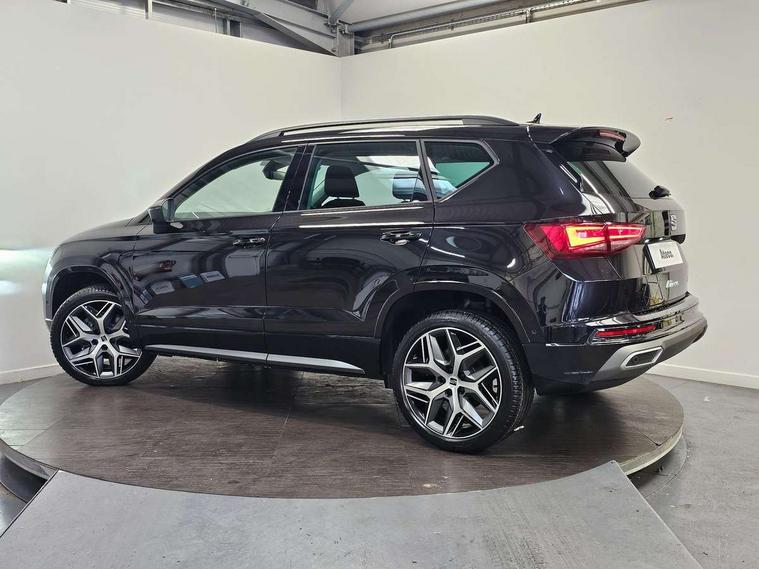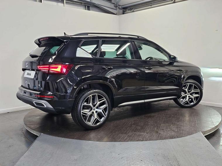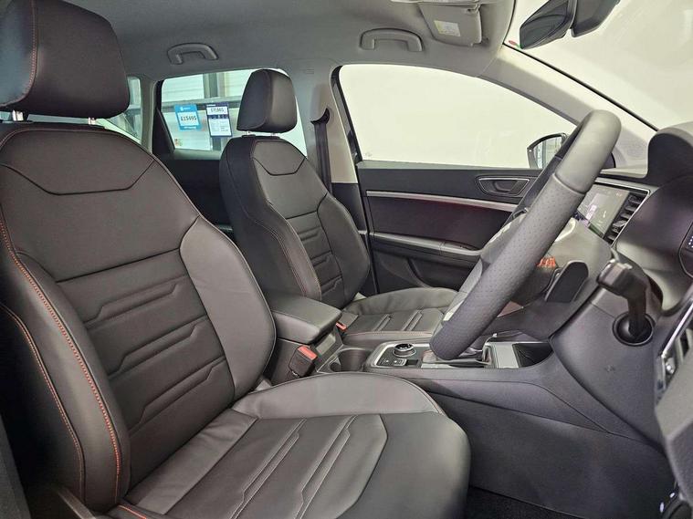 10" Digital cockpit, Cruise control system with speed limiter, E-call, Outside temperature gauge, Progressive power assisted steering, SEAT drive profile with driving experience button - Normal, Sport, Eco and Individual mode, gearshift, steering and throttle response, Self parking functionality (includes front and rear parking sensors), Start/stop system, Tailgate, Trip computer, wired and wireless full link smartphone integration, Wireless phone charger, Steering wheel mounted audio/phone controls, Black roof rails, Black side window trim, Body colour bumpers, Body coloured wheel arch surrounds, Chrome front grille frame, Dark tinted rear windows, Daytime running lights, Door mirrors with welcome light silhouette, Dynamic headlight range control with self adjusting whilst driving, Electric adjustable/heated/folding door mirrors, Front and rear electric windows, Full LED headlamps with lens and LED front fog lamps with cornering function, Illuminated aluminium front door sill, LED 3rd brake light, LED rear tail lights with dynamic indicators, Rear exhaust tailpipe, Rear fog lights, Rear side wing doors, Rear wash/wipe, Roof spoiler, Variable front intermittent wipers, 12v socket in front, 3 seat bench in 2nd row, 60/40 split folding rear seat, Aluminium pedals, Dual zone climate control, Electric adjustable driver seat with memory function, Front and rear head restraints, Front centre armrest, Front seat back storage pockets, Heated front seats, Height adjustable passenger seats with lumbar adjustment, ISOFIX points in outer rear seats with top tether anchorage points, Leather sports steering wheel and gear knob, Leather upholstery with front comfort seats, Manual lumbar support on driver seat, Rear armrest and easy back seat release mechanism from boot, Single front passenger seat, Steering wheel mounted gearshift paddles, Convenience pack - Ateca, Interior lighting pack - Ateca, Navigation system pack with DAB - Ateca, Safety and driving pack with attention and drowsiness assist - Ateca, 3x3 point rear seatbelts, ABS, Traction control system (TCS), Electronic stability control (ESC) and Electronic differential lock system (XDS), Airbags - Driver and front passenger airbag with deactivation, front side, two curtain and driver's knee airbags, Electric parking brake with auto hold function, Front and rear seatbelt reminder, Front assist with autonomous emergency braking, Hill hold control, Manual rear child locks, Single tone horn, Tiredness recognition system, Tyre pressure monitoring system, Alarm, Keyless entry, Locking wheel bolts, Remote central locking, Chrome interior detailing, 19" Exclusive machined alloy wheels with decorative inserts 36/7 in cosmo grey,