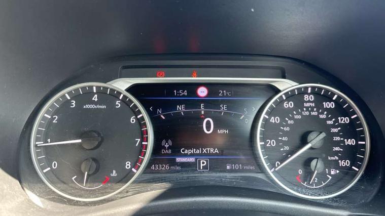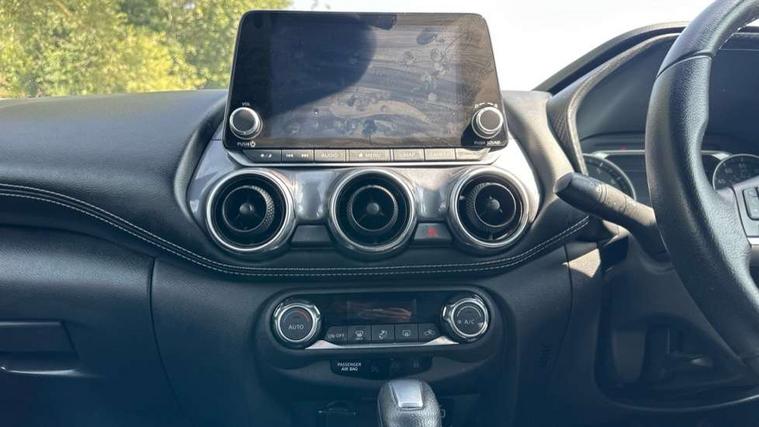 7" full colour TFT screen combimeter, Apple CarPlay and Google Android auto, Drive modes select (Eco, normal and sport), Emergency and breakdown call, Front parking sensor, Idle start/stop system, Intelligent lane intervention, Lane departure warning system, Nissan connect 8" touch screen entertainment system, Nissan connect nav with TomTom traffic, Nissan connect services and Wifi connection, Outside temperature sensor, Power Steering, Rear parking sensor, Traffic sign recognition, Trip computer, Voice recognition, Gasoline particulate filter, 6 speakers, Bluetooth system, USB, Aux-in and 12V socket, DAB Digital radio, Rear console USB port, Auto dimming interior rear view mirror, Auto headlights, Automatic hazard signal with emergency stop signal, Body colour bumpers, Body colour door handles, Electrically adjustable door mirrors with integrated indicators, Follow me home headlights, Front and rear electric window with one touch driver window, Heated and auto folding door mirrors, High beam assist, LED daytime running lights, LED headlamps, LED rear fog lamp, LED rear lamps, Rain sensor windscreen wipers, Rear privacy glass, Rear side wing doors, Rear wiper, Shark fin roof antenna in Pearl Black, Three blink turn signal, 3 height adjustable rear headrests, 3 seat bench in 2nd row, 60/40 split folding rear seat, Automatic climate control, Card holder on driver sunvisor, Cloth upholstery with black and metallic grey syntech leather inserts, Driver and passenger sliding and reclining seats, Driver side rear coat hanger, Driver/passenger sunvisors and vanity mirrors, Front and rear cabin lights, Front armrest, Front door pockets with bottle holders, Front head restraints, Front/rear passenger grab handles, Grey synthetic leather kneepad, Height adjustable driver's seat, Internal chrome door handles, Leather gearshift knob, Leather steering wheel, Luggage board, Luggage space lighting, Monoform sporty seats, Multifunction steering wheel, Rear door bottle holders, Single front passenger seat, Steering wheel mounted gearshift paddles, Telescopic steering wheel adjustment, Two cupholders in front centre console, Two rear isofix child seat anchorage points with top tether, Welcome light and console tray ambient lighting, ABS with EBD and brake assist, Active ride control, Active Trace Control, Driver and passenger airbags, Driver and passenger side airbags, Electric handbrake with auto hold function, Electronic Stability Programme (ESP), Front and rear curtain airbags, Height adjustable seatbelts, Hill start assist, Intelligent emergency braking with pedestrian and cyclist recognition, Rear door child safety locks, Seatbelt reminder for driver/front passenger and rear seats, Single tone horn, Three 3 point rear seatbelts, Traction control, Tyre pressure monitoring system, VDC Dynamic Vehicle Control, Ventilated rear brake discs, Alarm, Immobiliser, Intelligent key and start push button with walk away lock and approach unlock functions, Remote central locking,