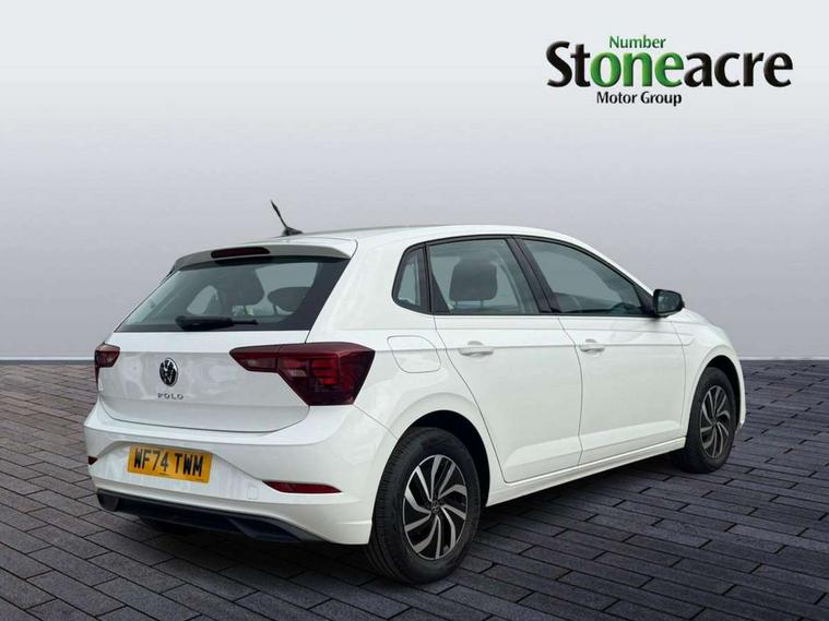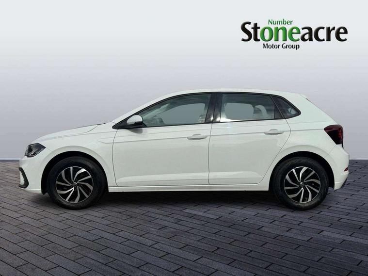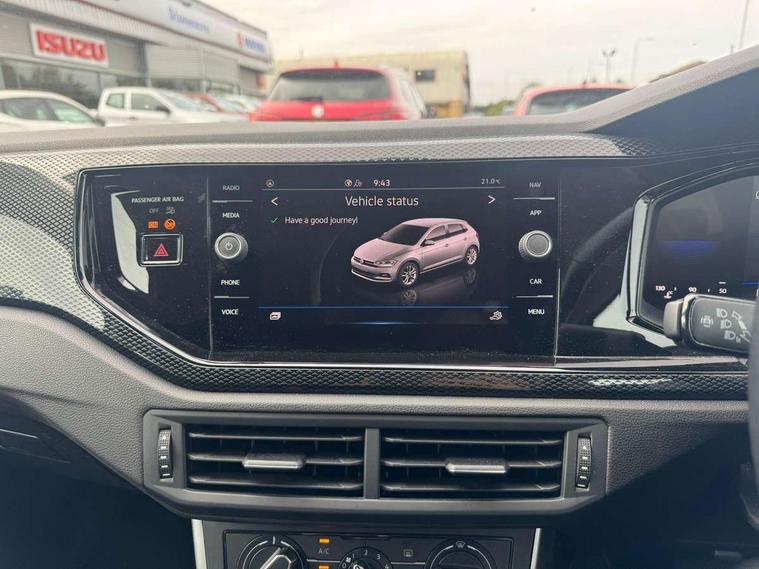 Adaptive cruise control with follow-to-stop and speed limiter, Advanced driver attention and drowsiness monitor, Bluetooth mobile phone interface, Dynamic road sign display, Emergency call service, Multifunction camera, Power assisted speed sensitive steering, Preparation for navigation system with media and internet package, Preparation for We connect and We connect plus, Speedo and rev counter, electronic odometer, trip, service interval display and exterior temperature gauge, Standard rear axle, Travel Assist - Lane keeping system and traffic jam assist, Travel assist including emergency assist, Trip computer, Warning signal and warning light for front and rear seatbelts not fastened, Washer fluid level indicator, Wireless app connect, Front wheel drive, Rear shock absorpion, Start-stop system with battery regeneration (recuperation - energy recovery during braking), DAB Digital radio, Diversity antenna for FM reception, Front and rear 6 speakers, Automatic dimming interior rear view mirror, Automatic headlight control with LED separate daytime running lights with coming/leaving home function, Body colour bumpers with chrome inserts, Body colour door handles, Body colour door mirrors, Electric front windows, Engine badge deletion, Headlight range adjustment, Heat insulating and laminated safety glass windshield, Heat insulating darkened glass in side and rear windows, LED Headlights, LED rear combination lamps, Power folding adjustable/heated exterior mirrors and front passenger exterior mirror lowering function, Rain sensor, Rear electric windows, Rear fog light, Rear side wing doors, Rear windscreen washer and wiper with interval delay, Third brake light, 12V power socket in centre console, 2 front and 2 rear reading lights with switch off delay and dimmer, 2 USB-C ports in the front, 2 USB-C charging sockets on the center console in the rear, 3 rear head restraints, 60/40 split folding rear seat and rear seat bench not split, Ceramique roof lining, Chrome plated radiator grille inserts, air vent surrounds and light switch surrounds, Door and side trim panel, Driver and front passenger seat height adjustment, Driver/passenger sunvisors with illuminated vanity mirrors, Front centre armrest, Front seat backrest storage pockets, Front standard seats, Handbrake lever handle in leather, Hartley/Thomas cloth upholstery, Headliner in recycled material, Isofix child seat preparation easy-fit (for two outer rear seats, and front passenger seat) compatible with I-size, Leather trimmed gear knob, Luggage compartment cover, Luggage compartment lighting, Removable luggage compartment floor, Single front passenger seat, Standard climatic zones, Standard pedal cluster, Three spoke leather wrapped multifunction steering wheel with shifting paddles, Light and vision pack - Polo, 3 point height adj front seatbelts + pretensioners, 3x3 point rear seatbelts, ABS, Driver and front passenger airbag with front passenger airbag deactivation, Drivers and front passengers safety optimised head restraints, ESC (Electronic stability control) + EDL (Electronic Differntial lock) and ASR (Traction control), Extended and predictive pedestrian/ cyclist protection, Front assist with autonomous emergency braking (for Adaptive Cruise Control ACC up to 130 mph), Front curtain and side airbags with center airbag, Front disc brakes, Hill hold control, Manual child lock in rear doors, Rear drum brakes, Single tone horn, Tyre pressure loss indicator, Alarm with interior protection, Anti-theft alarm system with interior monitoring, backup horn, and towing protection, Anti-theft wheel bolts, Electronic engine immobiliser, Lava stone black gloss/matt decorative inserts in dash and front door panels, Low rolling resistance tyres,