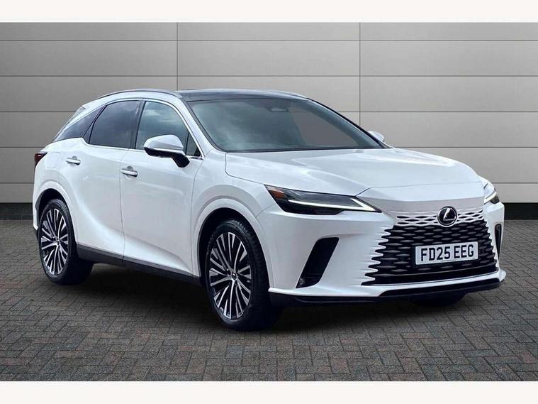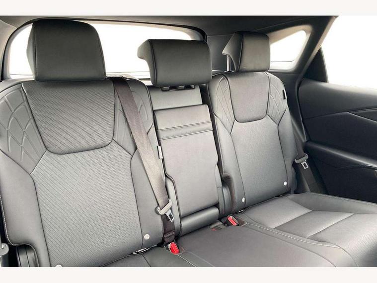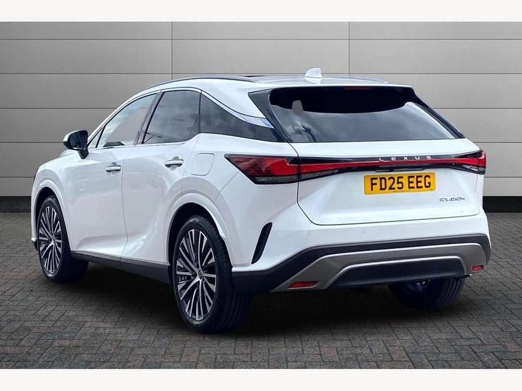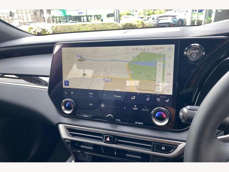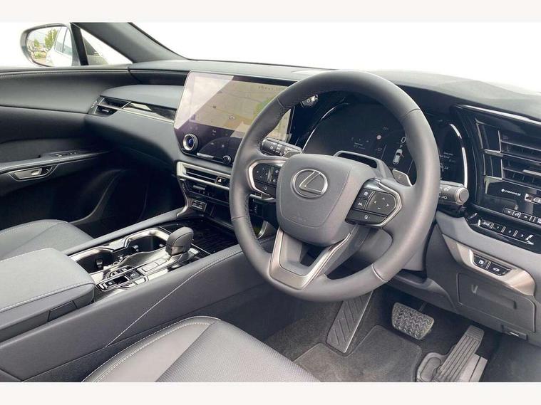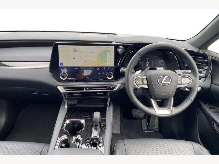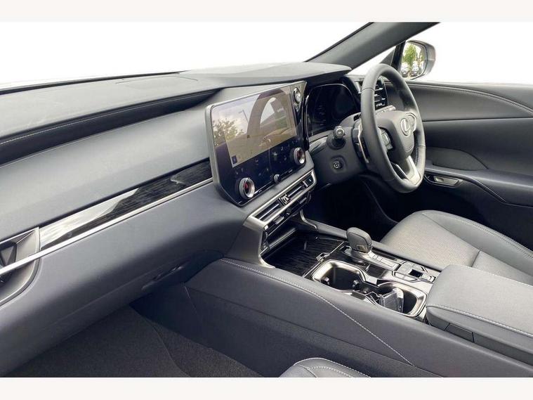 360 degree panoramic view monitor, Bluetooth mobile phone connectivity, BSM - Blind spot monitoring, Drive mode selector, Driver monitoring system, E-call, Head up Display, Intelligent clearance sonar, Lexus link connected services including over the air updates, MM21 Lexus link pro - 14" HD touchscreen with embedded and cloud based navigation, voice assistant, connected services, over the air and always online, Push button starter, Rear cross traffic alert, Speed sensitive electric power assisted steering, Ultrasonic parking sensors, Wireless Apple CarPlay and wired Android Auto, Wireless Smartphone charger, 3 pin to Type 2 10A charging cable, 6.6 kW onboard charger, E-Four Automatic transmission, Type 2 AC charging, Type 2 mode 3 32A charging cable, Vehicle Stability Control (VSC), 12 speakers audio, 5 USB ports (3 front USB C and 2 rear USB C), DAB Digital radio, 3 projector bi-beam LED headlight with auto high beam, Auto dimming rear view mirror, Auto headlights, Front and rear one touch power windows with voice command, Front and rear silver window frame mouldings, Glove and towel set, Headlight washers, Heated, auto-folding door mirrors, auto dimming with rerverse tilt, turn indicators and panoramic view sensors, L-shaped rear light bar, LED brake lights and rear lights with emergency brake signal, LED cornering headlights, LED daytime running lights, LED front and rear fog lights, LED Indicators, Power back door with kick sensor, Privacy UV glass, rear doors and tailgate, Rain sensor windscreen wipers, Rear side wing doors, Rear wash/wipe, Roof rails, Variable front intermittent wipers, 12V accessory port centre console and luggage compartment, 2 cup holders in centre console, 2 way electric lumbar support for driver and front passenger, 2 x Sunvisors with vanity mirror and lamp, 3 rear headrests, 3 seat bench in 2nd row, 40:20:40 split folding rear seats, 64 colour LED ambient interior illumination with 14 pre-set themed colour tones, 8 way electrically adjustable front seats, Charge cable bag, Driver seat memory function, Easy access driver seat, Easy access steering wheel, Front aluminium scuff plates, Front headrests, Front tray in front of centre console, Glovebox, Heated and ventilated front seats, Heated steering wheel, Leather steering wheel, Lever type shft control, Manually adjustable rear seats, Power adjustable steering wheel, Rear resin scuff plates, Single front passenger seat, Smooth leather upholstery, Textile carpet mats, Three zone climate control air conditioning system, Two way opening centre armrest with storage, 2 x Isofix child rear seat restraints, 3 point ELR front and rear seatbelts with pretensioners, ABS, Curtain shield airbags (front and rear), Driver and front passenger 2 stage airbag, Driver/front passenger side airbags, Drivers knee airbag, E-Latch with safe exit assist, EBD + Brake Assist, Electronic parking brake, Electronically controlled braking, Extended lexus safety system+ 3 - lane change assist, front cross traffic assist, Front and rear left/right force limiters and tension reducers, Front and rear left/right seatbelt reminders, Front centre airbag, Hill assist control, Lexus safety system+ 3 - dynamic radar cruise control, pre collision system day and night, lane tracing assist, road sign, Manual child lock in rear doors, Passenger airbag cut-off device, Traction control, Tyre pressure warning, 2 x remote key fobs, Customisable auto door lock, Locking wheel nuts, Motion sensor key, Smart keyless entry, Thatcham category 1 alarm + immobiliser, VIN etching, Black Inlay, 21" Alloy wheels,