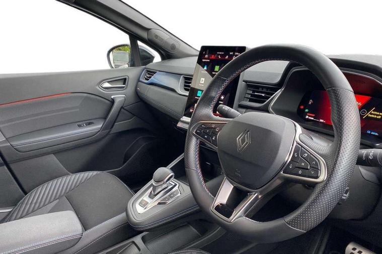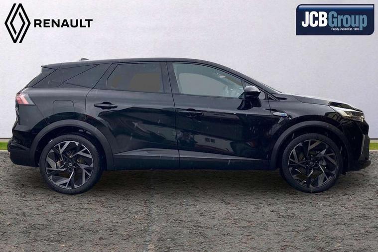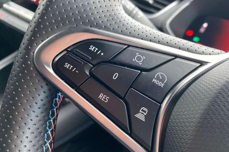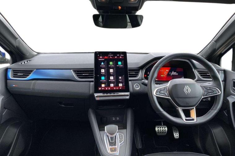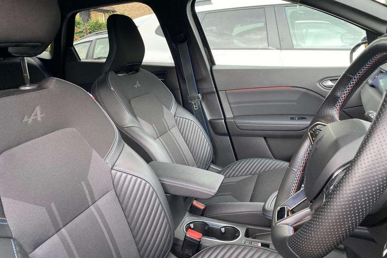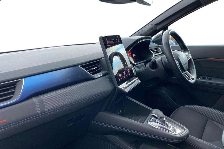 10.25" digital driver display, 10.4" OpenR link touchscreen with with built in Google Automotive Services and navigation, Adaptive cruise control with speed limiter, Blind spot warning and rear detection, Driver attention alert system, Eco mode driving function, Front, rear and side parking sensors, Front/rear detection with emergency lane keep assist incl. solid line, oncoming traffic and road edge detection, Gear change indicator, Lane centering assist, Multi Sense - 3 driving modes and up to 48 ambient lighting colours, My safety switch - ability to personalise ADAS features at press of a button, PAS, Power hands-free tailgate opening, Rear cross traffic/pedestrian alert with rear braking assitance, Rear view camera, Renault automatic emergency assist, Traffic sign recognition with overspeed prevention, Trip computer, Wifi smartphone integration compatible with Apple CarPlay and Android Auto, Wireless phone charger, 2 front and 2 rear USB-C ports, Arkamys speakers - x6 inc. 2 boomer, 2 tweeter and 2 bicone, DAB radio with Bluetooth, Automatic headlights, Automatic high / low beam, Automatic windscreen wipers with rain sensor, Dark tinted rear windows and tailgate, Electric adjustable/heated/auto folding door mirrors, Esprit alpine exterior styling, Frameless auto dimming rear view mirror, Front and rear electric windows with driver window one touch facility and anti pitch function, Front matte grey and rear skid plates, Full LED front and rear lights, Gloss black window surround, Heated rear window, LED daytime running lights, LED rear fog lights, LED third brake light, Radiator grille with 3D graphics in black upper part with grey graphics and body tone lower part, Rear side wing doors, Rear wiper, Shark fin antenna, 2 front roof LED lights and central rear rooflight with 3 reading LED lights, 3 seat bench in 2nd row, Aluminium sports pedals, Automatic air conditioning with one touch quick demist function and air quality regulator, Driver and front passenger seat with electric height adjustment, Esprit alpine interior styling, Flying console with central storage, sliding armrest and 2 rear air vents, Front and rear head restraints, Heated front seats, Heated synthetic leather steering wheel, Height and depth adjustable steering wheel, ISOFIX child seat fixing points on rear outermost seats, Modular boot floor, Rear seats - 1/3:2/3 foldable sliding bench, Recycled fabric upholstery, Single front passenger seat, Sunvisor with mirror and light, 3x3 point rear seatbelts, Abs with emergency brake assist, Active emergency braking system - Urban and pedestrian/cyclist, Distance warning alert, Driver and front passenger and 3 rear passengers seatbelt reminder, Driver and front passenger, side, head and curtain airbags, Driver height adjustable seat belt, Electronic parking brake with auto hold function, Front passenger airbag deactivation, Hill start assist, Occupant safe exit, Rear window and door child locking function, Tyre pressure warning light, Central door locking, Hands free keycard with Keyless access and start, Brushed blue decorative upper strip, Lower textile strip on dashboard with red, white and blue flag, 19" Esprit alpine elixir alloys wheels,