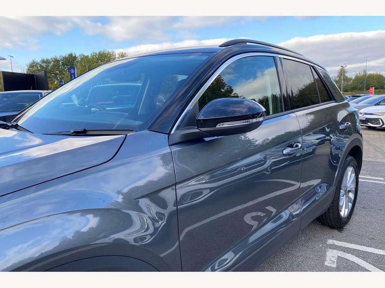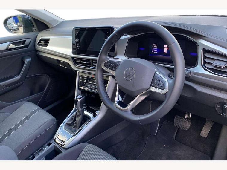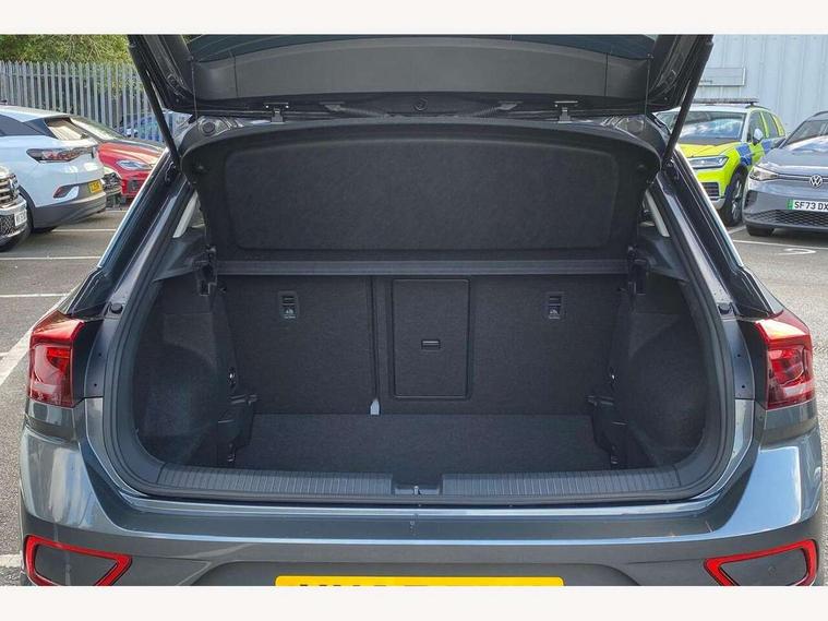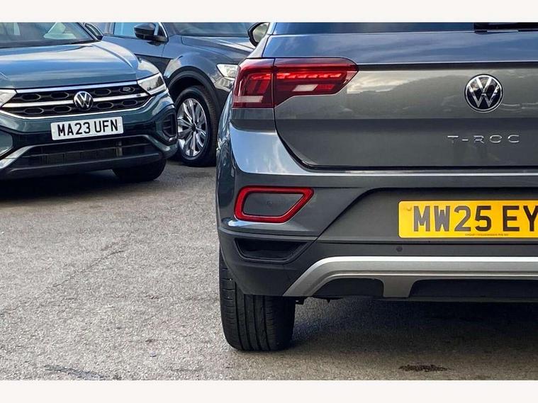 Advanced driver attention and drowsiness monitor, Dynamic road sign display, Emergency call service, Lane keeping system Lane Assist, Mobile phone interface, Modified key software - reduce switch off time for key status change to Long no motion, Online services, Park assist including front and rear parking sensors, Power assisted speed sensitive steering, Rear view camera, Service interval indicator, Tailgate/trunk lid release from outside, Think blue trainer driver tips and journey analysis, Warning sound and light for front seatbelts unfastened, Wireless app connect, Battery regeneration during braking, Front shock absorption, Rear shock absorption chassis with increased ride height, Start/stop function with battery regeneration, DAB Digital radio, Diversity antenna for FM reception, Music playback - MP3, WMA and AAC files, Premium USB cable in choice of either Apple or Android smartphone compatibility, SD card slot, Simultaneous pairing of 2 compatible mobile devices, Title and cover art display, We Connect and We Connect Plus functionality, Auto dimming interior rear view mirror, Automatic hazard lights activation under emergency braking, Automatic headlight control with LED separate daytime running lights with coming/leaving home function, Black roof rails, Body coloured bumpers and radiator grille with chrome trim and front fog lamps with chrome bezel, Body coloured exterior mirror housings and door handles, Electrically adjustable and heated door mirrors, Extended roof spoiler, Exterior mirrors aspherical on driver side, convex on front passenger side, External USB type C socket and charging sockets, Front windscreen wiper with intermittent wipe and 4 position delay, Heated rear window, LED 3rd brake light, LED rear combination lamps, LED rear number plate lights, Power windows with comfort operation and circuit breaker, Privacy glass for rear side windows and rear window, Rain sensor, Rear exhaust tailpipe, Rear fog light on one side and reversing lights on both sides, Rear side wing doors, Rear wash/wipe with intermittent wipe setting, Remote electrically foldable door mirrors, puddle lights and reverse activated passenger's door mirror, 12V power socket in centre console, 3 rear head restraints, 3 seat bench in 2nd row, 4 load lashing points in luggage compartment, Air care climatronic air conditoning system with active combination filter and 2-zone temperature control, Black stitching for floor mats, Ceramique roof liner, Cloth upholstery, Door and side trim panel in cloth, Drawer under drivers seat, Driver/front passenger seat height adjustment, Front centre armrest, Front comfort sports seats, Front cupholders x 2, Front reading light, Front seat back storage pockets, Glove compartment door with light, Instrument lighting, white adjustable panel illumination, Interior ambient lighting and surround lighting, Interior light delay, Isofix child seat preparation, Leather gearshift handle, Load-through provision with cup holder when folded down ('Unsplit rear seat bench, split folding backrest, with centre armrest), Luggage compartment lighting, Lumbar support for driver's and front passengers seat, Non-folding front passenger seat backrest, Single front passenger seat, Storage compartment in left and right luggage area, Storage compartment in rear doors, Storage compartments in driver and front passenger doors, Sunvisors with illuminated vanity mirrors, Variable boot floor, height adjustable and removable, Driver assistance pack without proactive passenger protection - T-Roc Life/Match, 3 point height adj front seatbelts + pretensioners, 3 point seatbelts in outer rear with ECE label, ABS, Child locks on rear doors, City emergency braking and pedestrian monitoring, Driver and front passenger airbag with front passenger airbag deactivation, Driver and front passenger safety-optimised head restraints, Drivers seatbelt reminder, Electronic parking brake, Electronic Stability Control (ESC) inc EDL (Electronic Differential Lock) and ASR (Traction Control), Front and rear passengers curtain airbag system including front side airbags, Front disc brakes, Hill start assist, Predictive pedestrian protection, Rear disc brakes, Two tone horn, Tyre pressure loss indicator, Volkswagen roadside assistance, Alarm with interior protection, Keyless locking and starting system keyless access with safelock, Pewter matt decorative inserts for intrument panel, centre console and door panels at the front, Trims for alloy wheels,