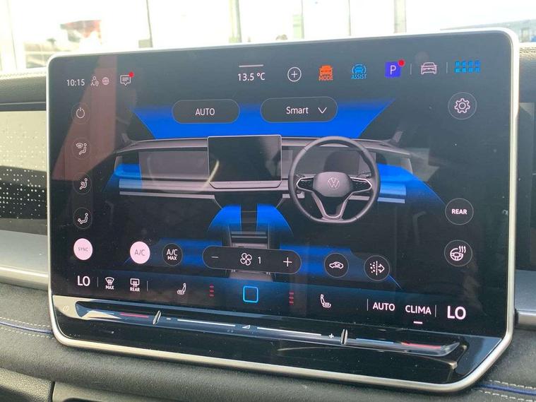 Adaptive cruise control (ACC), Digital Cockpit Pro - 10.25" high resolution dash display screen with customisable menus and information, Driver alert system, Driver attention monitoring system, Dynamic road sign display, E-Sim card for online connectivity, eCall emergency call system, Lane change system, Side assist, Rear traffic alert and Exit warning system, Multifunction front facing camera, Oncoming vehicle braking when turning including swerve support, Start/stop system with regenerative braking, Voice activation spoken voice commands for telephone and navigation system, Warning signal and warning light for front and rear seatbelts not fastened, Wireless App-Connect, Front wheel drive, Digital radio reception (DAB), Diversity antenna for FM reception, Air intake with Chrome trim, Auto dimming interior rear view mirror, Automatic headlight control system, Body colour door handles, Chrome moldings on the side windows, Coming/leaving home lighting function, Dynamic headlight range control with dynamic cornering light, Exterior mirrors convex on the left and aspherical on the right, Heat insulating glass in side and rear windows, Illuminated Volkswagen logo rear with animation, Laminated safety glass winshield, heat insulating, LED 3rd brake light, LED separate signature day time running light, Puddle lights, Rain sensor windscreen wipers, Rear fog light on one side, reversing light on both sides, Rear side wing doors, Rear wiper, Reverse activated passenger's door mirror, Surround lighting with welcome light, Volkswagen logo in front, illuminated lighting animation with wake up/goodbye scenario and illuminated door handles, 10 colour interior ambient lighting, 12V outlet in center console rear and in luggage compartment, 3 rear headrests, 3 rear seat bench in 2nd row, backrest split folding with centre armrest and 2 seats in 3rd row of seats, Black roof lining, Brushed stainless steel pedals, Carpet mats, front and rear, Centre console with illuminated storage compartment with sliding cover and two drinks holders, Chrome elements on the mirror switch and power window switches and door pulls, Door and side trim panel insert in Art velour, Flat luggage compartment floor, Front centre armrest, Front scuff plates in alumium, ISOFIX anchors for child seats on outer rear seats and front passenger seat compatible with i-Size, Mechanical rear seat release, Power adjustable lumbar support in front, Single front passenger seat, Sports comfort seats in front, Sun visors with illuminated vanity mirrors, 3 Point seat belts in front with pretensioners, 3 point seatbelts in outer rear with ECE label, Autonomous emergency braking front assist with pedestrian and cyclist monitoring, Driver and front passenger airbag with front passenger airbag deactivation, Electronic parking brake with auto hold, First aid kit with warning triangle and safety vest, Front and rear curtain airbags, Front and rear side airbags, Front centre airbag, Front disc brakes, Hill start assist, Rear disc brakes, Two tone horn, Decorative material set R-Line, Interior door handle in matte chrome,