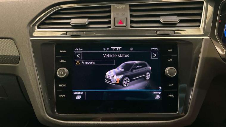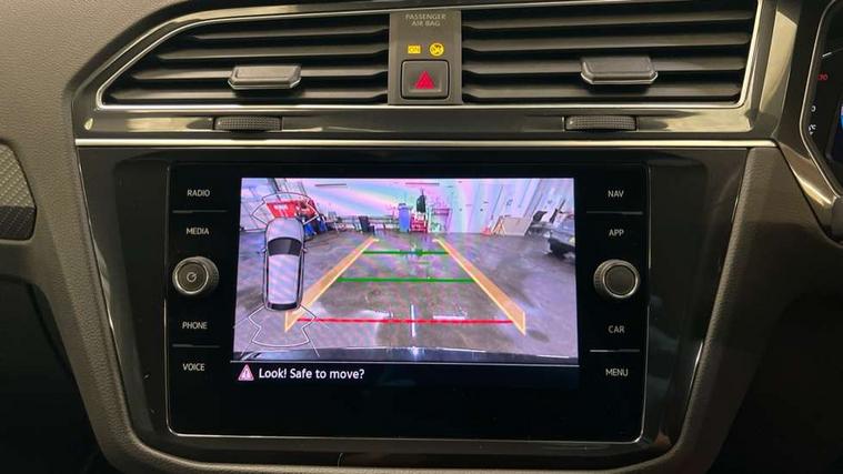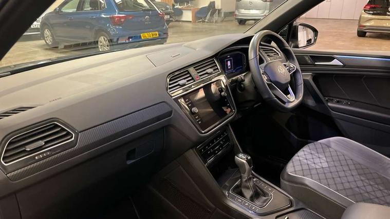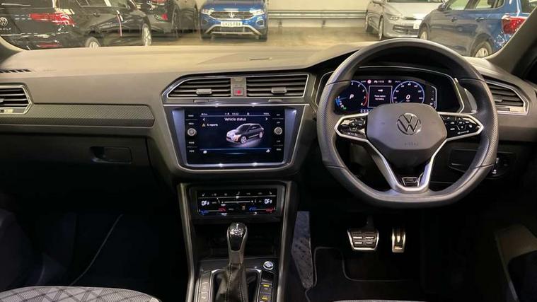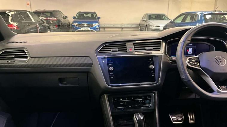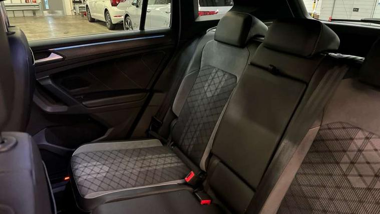 Adaptive cruise control ACC stop and go including speed limiter, App-Connect incl. App-Connect Wireless for Apple CarPlay and Android Auto, Bluetooth phone integration system, Digital Cockpit Pro - Active info display, Distance control assist, Driver alert system, Driver profile selection, Dynamic road sign display, eCall emergency call system, Electromechanical speed sensitive power steering, Engine start/stop button, Lane keeping system Lane Assist, Lights on warning, Multifunction front facing camera, Outside temperature display, Premium multifunction display with multi colour display, Remote control boot opening, Rev counter, Revision / skills operating concept travel assistant, Service interval indicator, Speed limit display, Start/stop system with regenerative braking, Trip computer, Warning sound and light for doors and tailgate open, Battery regeneration during braking, XDS electronic differential lock for improved traction and handling, 2 USB-C ports in the front, 1 USB-C charging socket on the center console in the rear, Diversity antenna for FM reception, Radio, SD card slot, Simultaneous pairing of 2 compatible mobile devices, SMS functionality - read, compose and send SMS messages using touch-screen display, Title and cover art display, Auto dimming interior rear view mirror, Automatic headlight control system, Black roof rails, Body colour door handles, Body coloured bumpers in R Line style, Body coloured door mirrors with integrated indicators, Chrome moldings on the side windows, Coming/leaving home lighting function, Dynamic headlight range control, Front and rear electric windows, Heated rear window, High level 3rd brake light, Laminated safety glass windshield, heat and sound insulating, LED rear number plate lights, License plate carrier in front and rear, Poor weather light and cornering light, Privacy glass for rear side windows and rear window, R Line body kit, R Line side sills, Rain sensor windscreen wipers, Rear exhaust tailpipe, Rear fog lamp, Rear spoiler in R style, Rear windscreen washer and wiper with interval delay, Side and rear windows in heat insulating glass, Third brake light, Trailer Stability Programme, Unique R Line badging, Windscreen wipers/ intermittent wipe + 4 position delay, 12V outlet in center console rear and in luggage compartment, 2 cup holders in front, 2 LED front reading lights, 2 LED rear reading lights, 3 rear headrests, 4 load lashing points, 40:20:40 split folding rear seats, Air Care Climatronic 3 zone automatic climate control with enhanced air filter and controls in the rear, Backrest release for left front seat, Black headlining, Brushed stainless steel pedals and footrest, Carpet mats in front and rear with decorative stitching in Gray, Climate control unit rear with touch function, Door and side trim panel in foam film, insert in leatherette, Front centre armrest, Front footwell illumination, Front seats head restraints (x-adjustment), Height adjustable front seats, Height/reach adjust steering wheel, Instrument lighting white adjustable panel illumination, Interior light with delay, Isofix Preparation 2 Rear child seats, Leather gear knob, Lockable cooled glovebox, Luggage compartment lighting, Luggage net, Rear bench seat asymetrically split folding, longitudinally movable and folding with load-through hatch and center armrest, Remote unlocking for rear seat backrest, Removable luggage cover, Safety optimised front head restraints, Sliding/reclining rear seats, Standard rear seat release, Storage compartment in driver's door, Storage compartment in passenger's door, Storage compartment in rear doors, Storage compartments in luggage area left and right, Storage tray on dashboard, Sun visors with illuminated vanity mirrors, Top front comfort seats, Variable boot floor, height adjustable and removable, Ambience pack - Tiguan R Line, Driver assistance pack plus - Tiguan DSG, 3 point seat belt for centre rear seats, 3 point seat belts with seat belt pretensioners for the outer rear seats, Active bonnet, Curtain airbags for front and rear passengers, Driver/Front Passenger airbags, Drivers knee airbag, Electronic parking brake with auto hold, Electronic Stability Control with driver steering recommendation, ABS, ASR, EDL, EDTC and trailer stabilization, Front assist with autonomous emergency braking (for Adaptive Cruise Control ACC up to 130 mph), Front disc brakes, Front passenger airbag deactivation, Front side airbags, Height adjustable front 3 point seatbelts + pretensioners, Hill hold control, Pedestrian monitoring system, Power assisted brakes, Proactive passenger protection system in combination with front assist, Rear disc brakes, Rigid safety cell with front and rear crumple zones, Two tone horn, Warning sound and light for front seat belts if unfastened, Anti theft alarm system with interior monitoring, backup horn and towing protection, Anti theft wheel bolts, Electronic engine immobiliser, 20" Misano black with diamond turned surface alloy wheels with Airstop tyres, Tool kit,