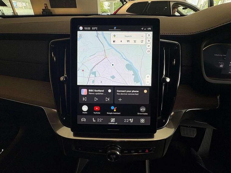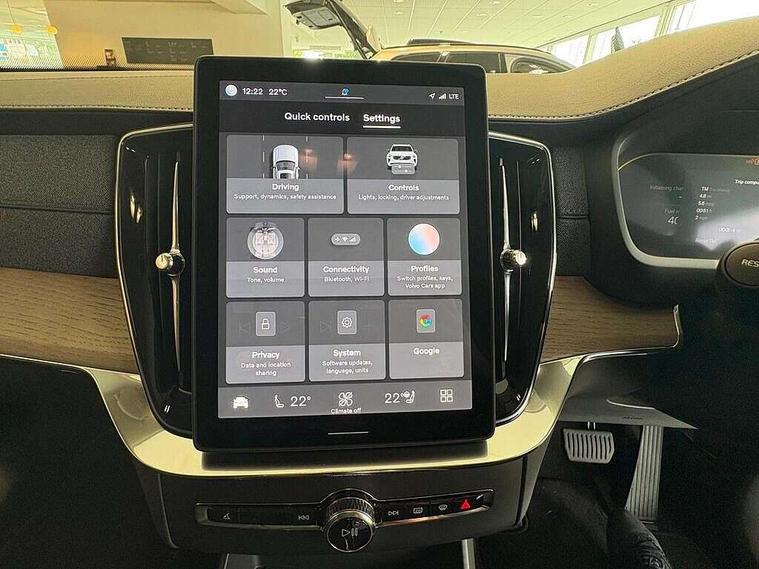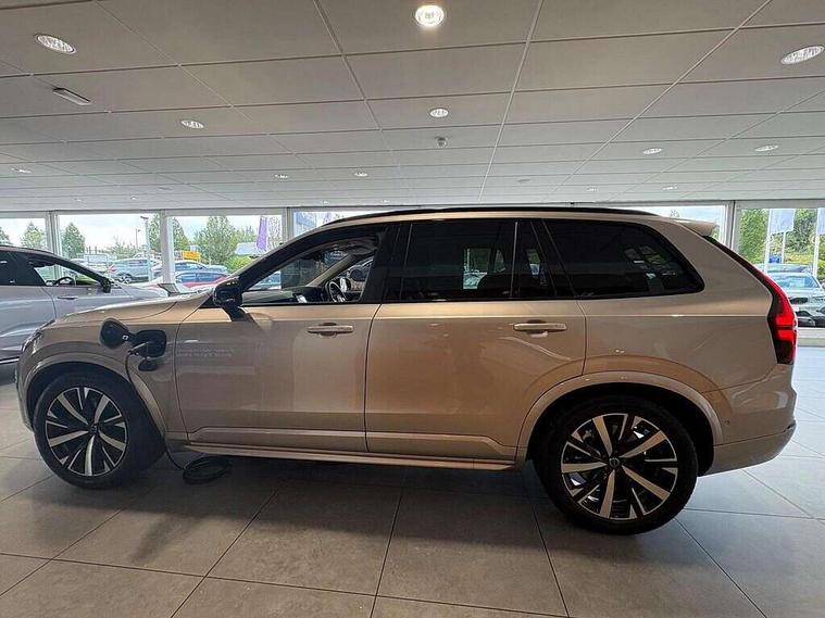 11.2" centre console touch screen, 12.3" Progressive Driver Display, 360 degree surround view parking camera with side proximity sensors, Adjustable steering wheel force, Apple carplay (wired), Bluetooth handsfree system, Drive mode settings, Driver alert control with lane keeping aid, Driver assistance (pilot assist and adaptive cruise control), Driver awareness - Blind spot information system with steer assist, cross traffic alert with autobrake and rear collision warning and mitigation, Driver monitoring system, Emergency call service, Front and rear park assist, Google Automotive Services - Navigation with Voice recoginition and google assistant, Handsfree power tailgate opening and closing, Intelligent speed assistance, Oncoming Lane Mitigation, PAS, Power operated tailgate, Service interval indicator, Speed sensitive steering, Trip computer, Volvo on call, Wireless/Inductive Mobile Phone Charging, 6m 3 phase 16amp Type 2 / mode 3 charge cable, 8 speed automatic transmission with start/stop + manual change functions, Active four C chassis - four corner adaptive dampers with electronic air suspension, Electric rear axle drive, Lithium-ion battery, On board charger - 6.4 kW 2 phase/3.7kW single phase, Recharging port located in nearside front wing, DAB Radio (Digital Audio Broadcasting), Low speed exterior sound speaker, Premium Sound by Harman Kardon, dirac unison, dolby pro logic II surround sound, 13 speakers/600W output and fresh air subwoofer, Steering wheel remote infotainment controls, Adaptive brake lights with high level LED brake lights, Auto dimming interior + exterior mirrors, Auto folding and heated power door mirrors, Automatic headlight levelling system, Automatic matrix LED headlights with Adaptive shadow technology and Active high beam, incorporating Day running lights, Body colour bumpers, Front and rear power windows, Headlight cleaning system, Heated front windscreen, High gloss black door mirrors and window surround, High gloss black front and rear bumper deco, High gloss black front grille and deco, Home safe and approach lighting, Integrated roof rails in high gloss black, Power glass tilt and slide panoramic sunroof with sun curtain, Puddle lights, Rain sensor with automatic windscreen wiper activation, Rear side wing doors, Rear wash/wipe with intermittent wipe setting, Roof antenna, Roof spoiler, Visible VIN plate, 12V socket in luggage compartment, 2nd Row centre armrest with and cupholders, 3 Spoke tailored sport steering wheel with chrome trim, 4 zone electronic climate control with Clean zone air quality system + pollen filter, A-pillar parking ticket holder, Air conditioning for 3rd row of seats, Air purifier PM2.5, Ambient door and instrument panel lighting, B Pillar ventilation, Bright metal luggage scuff plate, Centre console cupholders and storage, Floor mats, Front and rear courtesy lights, Front and rear door pocket illumination, Front footwell and side step illumination, Front headrests, Front reading lights, Front seat cushion extensions, Front tunnel storage illumination, Glovebox compartment light, Heated front seats, Heated rear seats, Heated steering wheel, Height/reach adjustable steering column, Illuminated front and rear aluminium tread plates, Illuminated luggage compartment, Illuminated tailgate, Illuminated vanity mirrors + ticket holder, Inner door release handle illumination, Isofix outer rear child seat preparation in 2nd row, Load cover, Load protection net, Lockable glovebox compartment, Luggage compartment divider with grocery bag holder, Nordico quilted upholstery, Outboard armrest with cupholder and storage for third row passengers, Power driver seat with multi directional lumbar support and memory for seat and exterior mirrors, Power folding 2nd row headrests, Power passenger seat with multi directional lumbar support and memory, Rear footwell and side step illumination, Rear headrests, Rear reading lights, Second row integrated child seat for centre seat, Single front passenger seat, Textile headlining, Three 2nd row individual folding passenger seats with fore/aft adjustment, Two 3rd row individual folding passenger seats, Underfloor luggage compartment storage, 7 three point seatbelts, City safety with steering support includes pedestrian, cyclist detection, front collision warning with full auto brake and rear auto brake, Driver and passenger airbags, Drivers knee airbag, First aid kit, Front seats SIPS airbags, Hill descent control - off drive mode, Hill start assist, IC (Inflatable Curtains) - Full Length, Passenger airbag cut-off switch, Power child locks on rear doors, Power parking brake with auto hold function, Road sign information display, Run off Road Protection, Seatbelt reminder and pretensioners for all seats, SIPS (Side Impact Protection System), Slippery road and hazard light alert, Stability and Traction Control with Spin control, Engine Drag Control and Corner Traction Control, Tyre pressure monitoring system, Vehicle deceleration control with Anti-lock Brake System, Electronic Brake Distribution and Emergency Brake Assist, Warning triangle, WHIPS whiplash protection system - front, 2x Key integrated remote control central locking + deadlocking system and auto open/close windows, Anti-theft alarm including immobiliser/volume sensor + level sensor, Keyless drive includes keyless entry and keyless start, Locking wheel nuts, Tailored instrument panel and door tops, Tyre sealant kit and compressor,