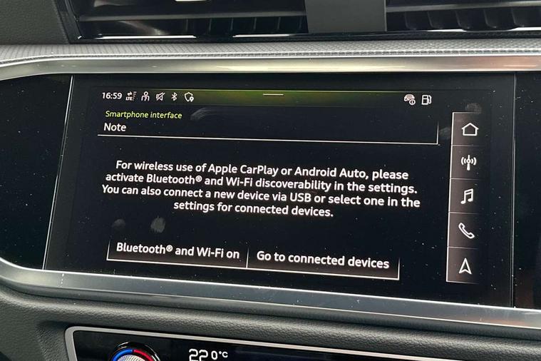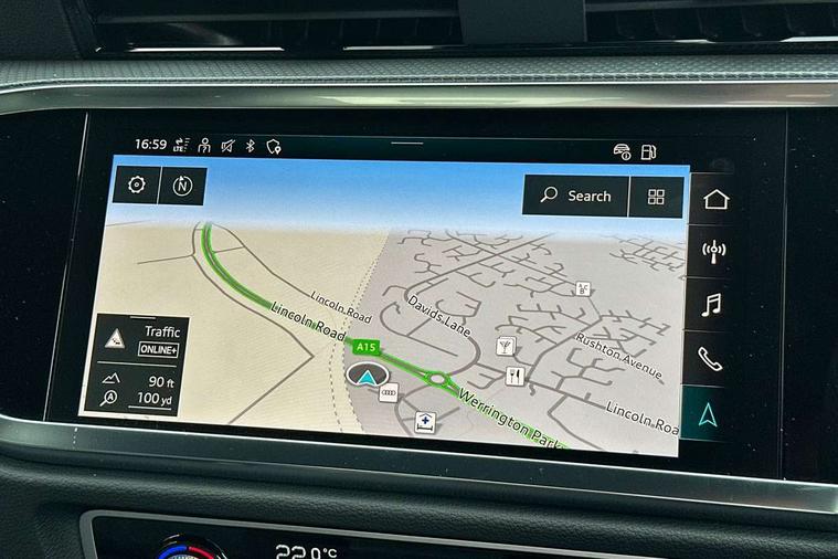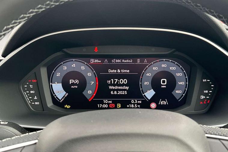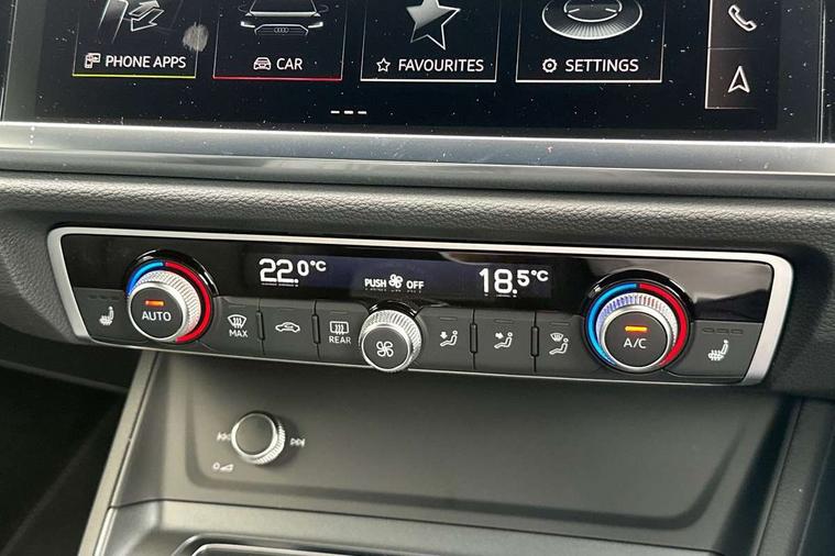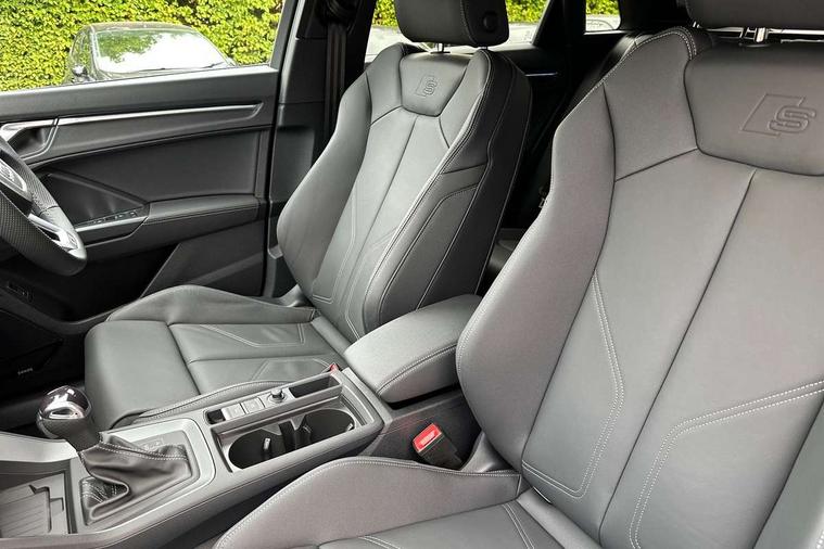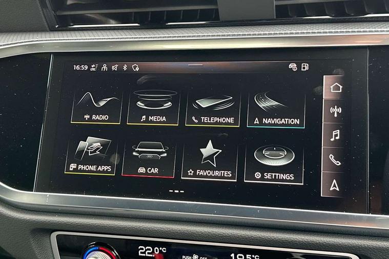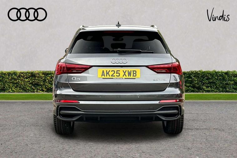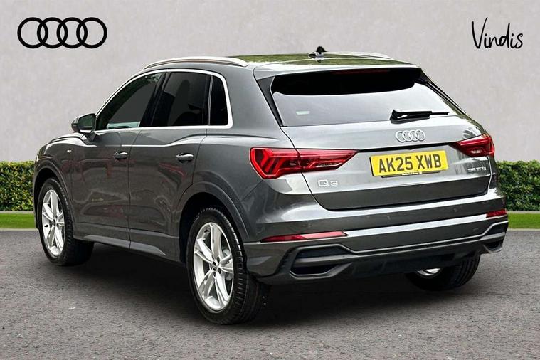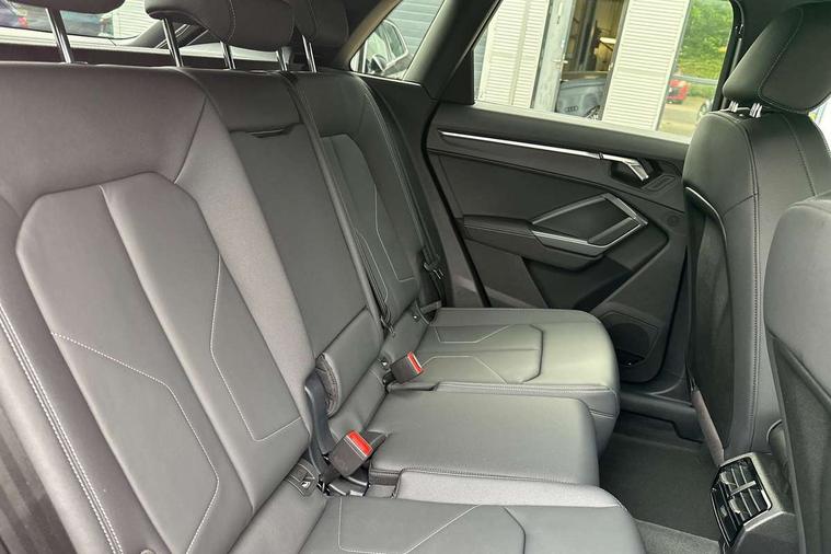 Amazon alexa Integration, Audi connect safety and service, Audi drive select, Audi lane departure warning, Audi Virtual Cockpit - 10.25" display, Bluetooth interface, Camera based traffic sign recognition, Distraction and Fatigue warning, Legal emergency call, MMI Navigation Plus with high resolution 10.1 inch touchscreen colour display, Power operated tailgate, Progressive steering, Service interval indicator, Smartphone interface includes wireless Apple carplay/Android Auto, Start stop system with recuperation, Voice control system with natural language interaction, Sports suspension, 2 USB-C ports with charge and data functions, 6 passive loudspeakers, DAB digital radio module, Acoustic windscreen, Aluminium roof rails, Aluminium window trim, Anthracite black radiator grille, Auto dimming door mirrors, Auto dimming frameless rear view mirror, Body colour front spoiler blade, Electrically folding, adjustable and heated door mirrors with integrated LED side indicators and kerb view function for passenger side, Front and rear electric windows, Front fog lights, Front side air inlets in matt platinum grey, Grille vertical bars in aluminium silver/Matt, High gloss black finish B and C pillars, LED Dynamic rear indicators, LED headlights with LED daytime running lights, LED rear lights, LED third brake light, Privacy glass dark tinted rear and rear-side windows (from B-pillar backwards), Rain and light sensors, Rear diffuser grille in grained matt black, Rear diffuser strip in matt anthracite black, Rear side wing doors, Rear wiper, S line badges on front wings, S Line front and rear bumpers and side skirts, Side skirt insert in matt Platinium grey, Variable front intermittent wipers, 12V socket in rear centre console, 3 seat bench in 2nd row, 3 spoke leather multifunction steering wheel features S badging and grips in perforated leather with contrast stitching, 40:20:40 folding with manual adjustment for 60:40 forwards/backwards position and backrest angle, Adjustable rear seat bench/backrest with centre armrest and cupholder, Black carpet mats, Black cloth headlining, Dual zone electronic climate control, Electric lumbar support, Front and rear black floor mats with contrast stitching in rock grey, Front and rear headrests, Front centre armrest, Height and reach adjustable steering wheel, Horizontal trim strip in matt platinum grey, Illuminated door sill trims with S logo, ISOFIX child seat mounting for front passenger with airbag deactivation and outer rear seat including top tether attachment point for outer rear seats, Luggage compartment sill protection in stainless steel, Manual front seats with height adjustment, Perforated leather gearknob, Single front passenger seat, Stainless steel pedals, Twin leather upholstery with front sport seats + S embossing, Non smoking pack - Q3, 3x3 point rear seatbelts, 6 airbags - Driver, front passenger, curtain and side windows, Audi pre-sense front with pedestrain and cyclist recognition, Electrically operated child locks on rear doors, Electromechanical parking brake, Electronic stabilisation control including ABS, ASR and EDL, Front seatbelt reminder, Hill descent control, Hill hold assist, Pre sense basic, Seatbelt monitoring, Tyre pressure warning, Warning triangle and first aid kit, Anti theft wheel bolts, Immobiliser, Remote central locking, Thatcham approved category 1 anti theft alarm, Aluminium look interior elements, Dark matt brushed aluminium inlay, Detail dashboard around MMI touch colour display in glass look, black with surround in aluminium look, Leatherette door armrest,