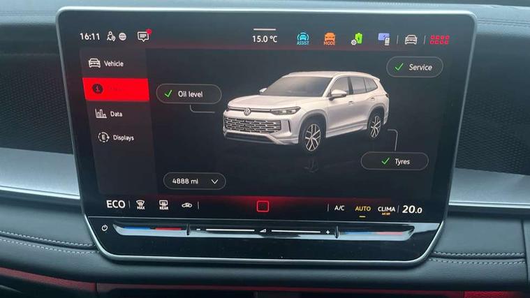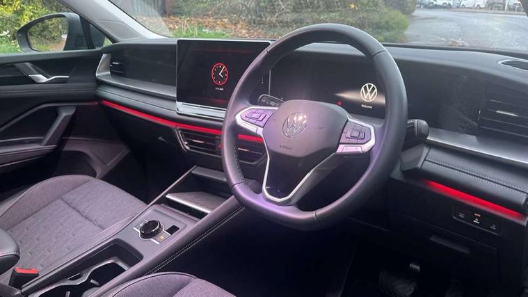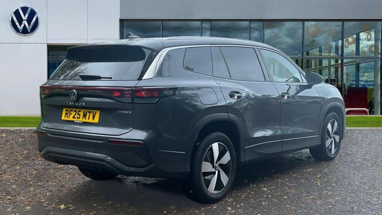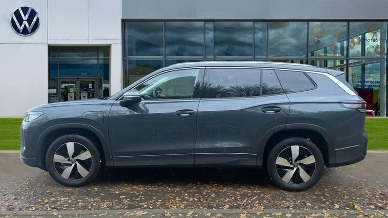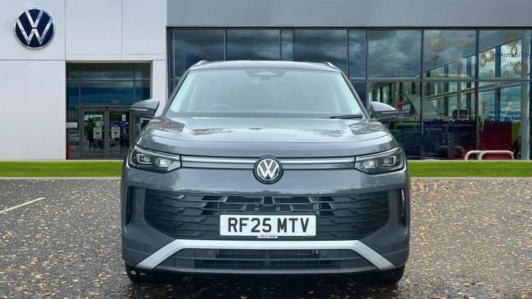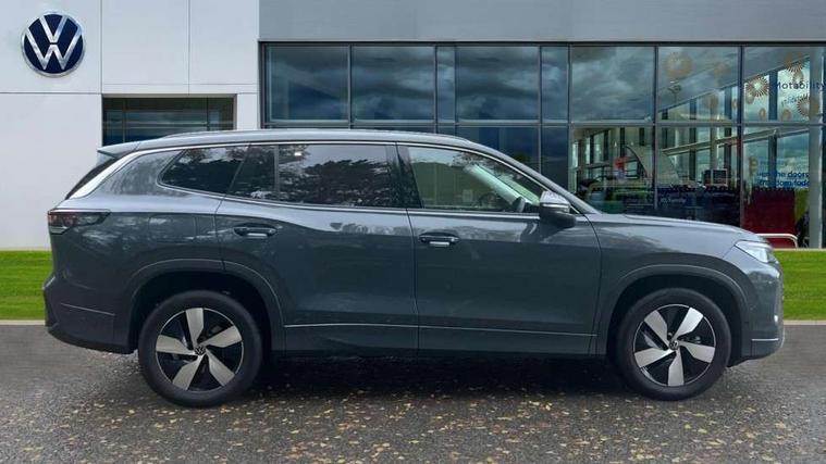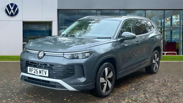 Adaptive cruise control (ACC), Digital Cockpit Pro - 10.25" high resolution dash display screen with customisable menus and information, Driver alert system, Driver attention monitoring system, Dynamic road sign display, E-Sim card for online connectivity, eCall emergency call system, Lane change system, Side assist, Rear traffic alert and Exit warning system, Multifunction front facing camera, Oncoming vehicle braking when turning including swerve support, Power assisted steering with speed sensitive, Start/stop system with regenerative braking, Voice activation spoken voice commands for telephone and navigation system, Warning signal and warning light for front and rear seatbelts not fastened, Wireless App-Connect, Adaptive chassis control DCC pro includes driving mode selection, Charging cable Mode 2 Type 2 / G (10A), Charging cable Mode 3 Type 2 / 3 (16A), Front shock absorption G08, Front wheel drive, Rear shock absorption, Digital radio reception (DAB), Diversity antenna for FM reception, Auto dimming interior rear view mirror, Automatic headlight control system, Body colour door handles, Body-coloured exterior mirror housings, Chrome moldings on the side windows, Comfort bumpers, Coming/leaving home lighting function, Exterior mirrors convex on the left and aspherical on the right, Heat insulating glass in side and rear windows, Laminated safety glass winshield, heat insulating, LED 3rd brake light, Puddle lights, Rain sensor windscreen wipers, Rear fog light on one side, reversing light on both sides, Rear side wing doors, Rear wiper, Reverse activated passenger's door mirror, Surround lighting with welcome light, Tilting and sliding panoramic sunroof with rear panoramic sunroof, 12V outlet in center console rear and in luggage compartment, 3 rear headrests, 3 rear seat bench in 2nd row, split folding, longitudinally movable and folding with load-through hatch, Carpet mats, front and rear, Centre console with illuminated storage compartment with sliding cover and two drinks holders, Door and side trim panel with leatherette insert, Flat luggage compartment floor, Front centre armrest, ISOFIX anchors for child seats on outer rear seats and front passenger seat compatible with i-Size, Mechanical rear seat release, Power adjustable lumbar support in front, Single front passenger seat, Sun visors with illuminated vanity mirrors, Comfort package with park assist pro - Tayron, 3 Point seat belts in front with pretensioners, 3 point seatbelts in outer rear with ECE label, Autonomous emergency braking front assist with pedestrian and cyclist monitoring, Driver and front passenger airbag with front passenger airbag deactivation, Electronic parking brake with auto hold, First aid kit with warning triangle and safety vest, Front and rear curtain airbags, Front and rear side airbags, Front centre airbag, Front disc brakes, Hill start assist, Rear disc brakes, Two tone horn, Decorative material set, Tool kit for tyre mobility set, Tyre mobility kit including compressor and sealing foam. In lieu of spare wheel,