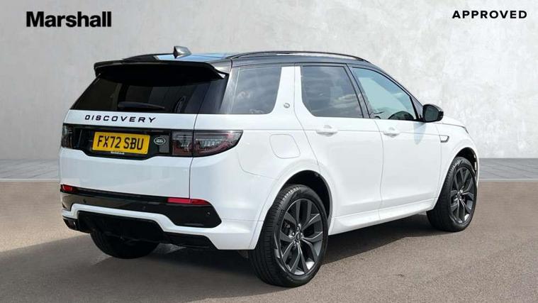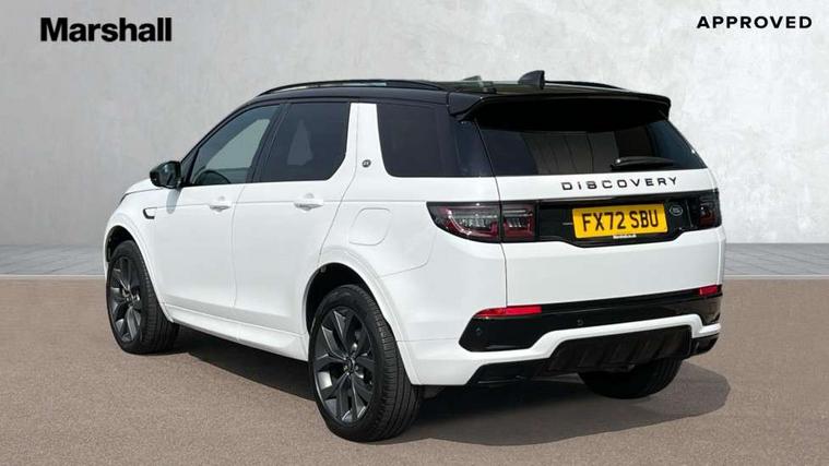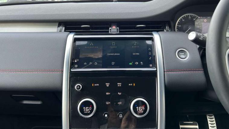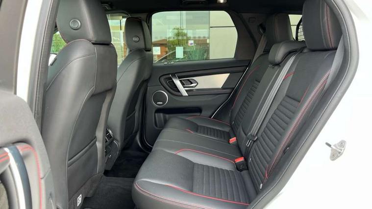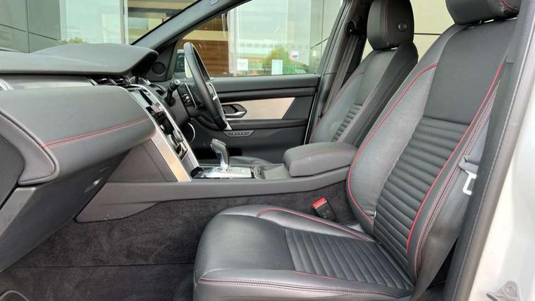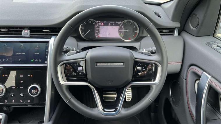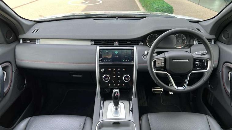 10" touch screen, Adaptive cruise control, Android Auto, Apple CarPlay, Blind spot assist, Clear exit monitor, Driver condition monitor, eCall emergency call system, Front and rear parking aid, InControl remote premium, Lane keep assist, Locking fuel flap, PAS, Pivi Pro connected navigation system with upgraded Infotainment, Powered tailgate/boot lid, Push button start, Rear collision monitor, Rear traffic monitor, Service interval indicator, Traffic sign recognition with adaptive speed limiter, Trip computer, Wade Sensing, 7 kW onboard charger, All terrain progress control, Coil suspension system, Dynamic stability control, Home charging cable, Public charging cable, Terrain Response 2, Bluetooth connectivity including audio streaming, Digital Audio Broadcast radio-DAB, Steering wheel mounted audio controls, 3rd brake light, Automatic headlight levelling, Automatic headlights, Electric front/rear windows, Electric heated/power fold door mirrors with approach lights and auto dimming driver side, Fixed panoramic sunroof with powered sunblind, Front and rear recovery eyes, Heated rear window, Heated windscreen including heated washer jets, Privacy glass, R Dynamic badge, Rain sensing windscreen wipers, Rear fog lights, Rear side wing doors, Rear wing door, Rear wiper, 5 seats, Bright metal pedals, Centre console with armrest, Footwell lights, Front and rear grab handles, Front passenger isofix child seat attachment, Loadspace cover, Loadspace light, Overhead lighting console, Overhead stowage for sunglasses, Rear headrests, Satin chrome gearshift paddles, Sunvisors with illuminated vanity mirrors, Tilt/reach adjustable steering wheel, Black exterior pack - Discovery sport R-Dynamic SE/HSE, Online pack with data plan - Discovery, 3 point seatbelts on all seats, ABS, Brake hold function, Child locks on rear doors, Collision mitigation braking system, Cornering brake control (CBC), Driver/Front Passenger airbags, Drivers knee airbag, Electronic brake force distribution, Electronic parking brake, Emergency brake assist, ESP + traction control, Hill descent control, Hill launch assist, Pedestrian airbag system, Rear seat ISOFIX, Roll stability control, Side and curtain airbags for front and 2nd row seats, Trailer stability control, Tyre pressure monitoring system, Battery Back Up System (BBUS) with tilt sensor, Global lock and unlock switch on driver door, Intrusion sensor, Keyless entry, Locking wheel nuts, Centre stack rails in noble chrome,