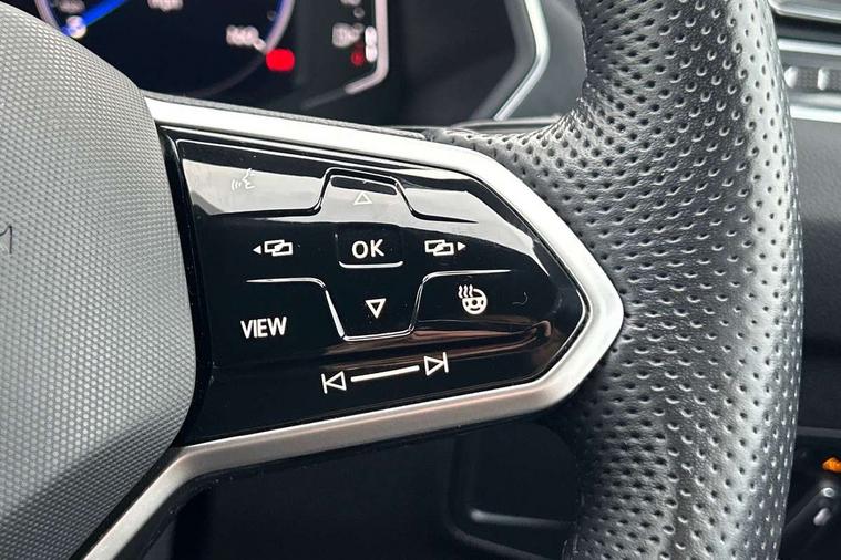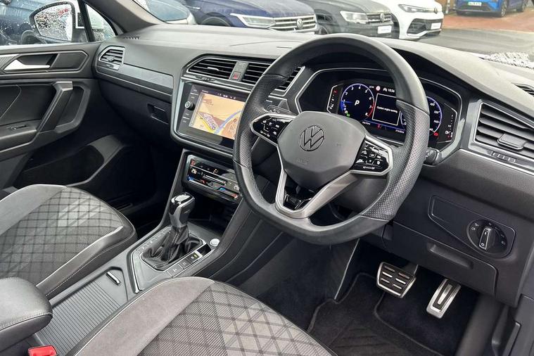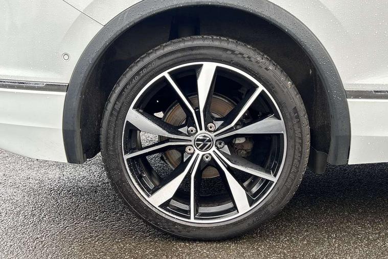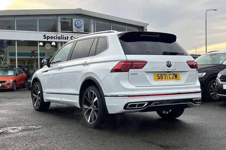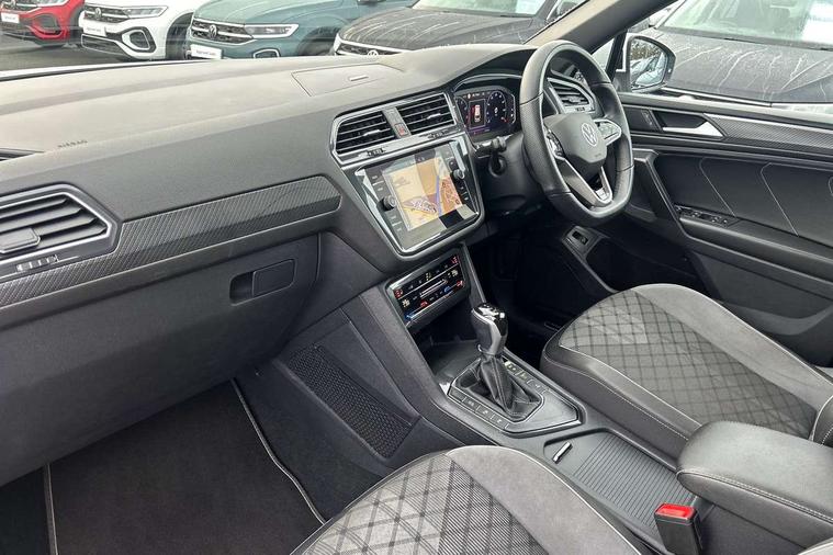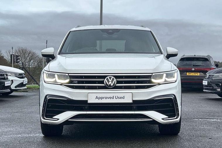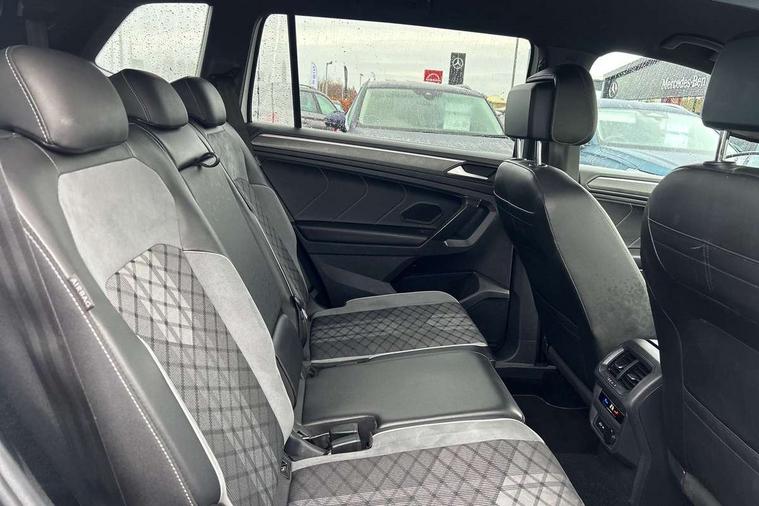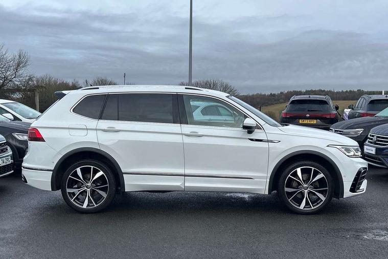 Adaptive cruise control, App-Connect, Digital cockpit pro, Driver alert system, Driver profile selection, Dynamic road sign display, eCall emergency call service, Electric boot lid, Lane change system side assist and rear traffic alert, Lane keeping system Lane Assist, Mobile phone interface comfort with inductive charging feature, Multifunction front facing camera, Power assisted speed sensitive steering, Speedo and rev counter, electronic odometer, trip, service interval display and exterior temperature gauge, Front wheel drive, Start-stop system with battery regeneration (recuperation - energy recovery during braking), 2 USB-C ports in the front, 1 USB-C charging socket on the center console in the rear, DAB Digital radio, Diversity antenna for FM reception, Radio, Auto dimming interior rear view mirror, Automatic headlight control system, Body coloured comfort bumpers, Chrome mouldings on side window, Coming/leaving home lighting function, Exterior badge deletion, Exterior mirror housings painted in silver, Heated windscreen washer jets, IQ light adv HBC, dyn light assist LED matrix headlamps, DH range, dark red LED rear combo light, poor weather, CL, LED headlamp with LED DRL and DCL - PXC, Privacy glass, Rain sensor, Rear fog light, Rear side wing doors, Rear wiper, Silver roof rails, Third brake light, Tilting and sliding panoramic sunroof, 12-volt outlet in centre console rear and luggage compartment, 12V socket in centre console, 3 head restraints in rear, 3 individual folding 2nd row seats, 3rd row 2 individual seats, Air Care Climatronic 3 zone automatic climate control with enhanced air filter and controls in the rear, Door and side trim panel, Drawers under front seats, Driver and front passenger seat height adjustment, Foldable front passenger seat backrest, Front + rear carpet mats, Front centre armrest, Front footwell illumination, Heated front seats, Illuminated scuff plates, ISOFIX anchorage points for mounting 2 child seats on rear seats and i-Size child seats, Leather gearshift handle, Leather-wrapped heated multi-function steering wheel with paddle shift, LED interior light with switch off delay/dimmer and 2 front/rear LED reading lights, Sun visors with illuminated vanity mirrors, Ambience pack - Tiguan Allspace, Easy open and close pack with safelock - Tiguan Allspace, Park assist pack - Tiguan Allspace, 3 point seat belt for centre rear seat, 3 rear three point seatbelts, ABS+EBD+Brake assist, Driver and front passenger safety-optimised head restraints, Driver's and front passenger's airbag with front passenger's airbag deactivation switch, Electronic parking brake, Electronic Stability Control (ESC) inc EDL (Electronic Differential Lock) and ASR (Traction Control), Height adjustable front 3 point seatbelts + pretensioners, Manual rear child locks, Pedestrian monitoring, PreCrash preventive occupant protection Front and rear, Rear disc brakes, Side airbag in front and rear with curtain airbag, Two tone horn, Warning buzzer for seatbelts if unfastened, Anti theft alarm system with interior monitoring, backup horn and towing protection, Anti-theft wheel bolts, Electronic steering lock, Remote central locking with 2 remote folding keys, Chequered flag tinanium decorative inserts,