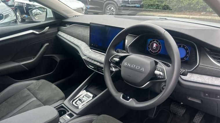 1x USB Typc C port in rear view mirror, 4x USB Type C ports - 2x in front centre console and 2x in rear (45W), Drive mode selection, Driver fatigue sensor, eCall emergency system, Electro-mechanical power steering, Front assist system, Traffic jam assist, Traffic sign recognition, Turn Assist, Virtual Cockpit - 10.25" digital display, Voice control system, Wireless charging (15W) with cooling function, Wireless SmartLink for Apple CarPlay and Android Auto, 13" touchscreen display with navigation, DAB Digital radio, Aero front windscreen wipers with intermittent function, Auto dimming rear view mirror, Body colour bumpers, Body colour door mirrors and handles, Chrome grille surround, Chrome roof rails, Chrome strip in lower front bumper, Chrome window surrounds, Electric front and rear windows, Heated rear windscreen, High level third brake light, Ice scraper in fuel cap, LED daytime running lights, LED Headlights, Logo projection in front doors, Rain and light sensors, Rear fog light on one side, Rear privacy glass, Rear side wing doors, Rear spoiler, Rear window wiper, 12 volt socket in boot, 3 rear headrests, 3 seat bench in 2nd row, 4 foldable roof handles, Front head restraints, Heated front seats, Illuminated glovebox, Interior door handles in dark chrome, Jumbo Box storage, Luggage compartment lighting x2 lights, Mechanical rear seat release from boot, Single front passenger seat, Steering wheel in black leather with black stitching, Storage compartments in left and right of boot, Sun visors with mirrors, Sunglasses storage, Ticket holder, Umbrella in door panel, Unsplit rear bench seat, split folding backrest with centre armrest with cupholder, Comfort package - Octavia Estate, Simply clever package premium - Octavia, 3x3 point rear seat belts, Alarm with interior monitoring, tilt sensor and back up horn, Curtain airbags and front side airbags, Driver and front passenger airbags, Drivers knee airbag, Electronic parking brake, ESC including ABS, EBV, MSR, ASR, EDS, HBA, DSR, Front central airbag, Hill hold assist, ISOFIX on front passenger seat and outer rear seats, Passenger airbag deactivate switch, Three point seat belts in front and rear, Two tone horn, Tyre pressure monitor, Visual and acoustic seat belt reminder, Warning reflectors in front door, Anti-theft wheel bolts, Keyless start/stop, Remote central locking, Chrome air vent surrounds,