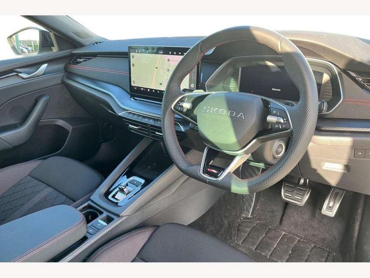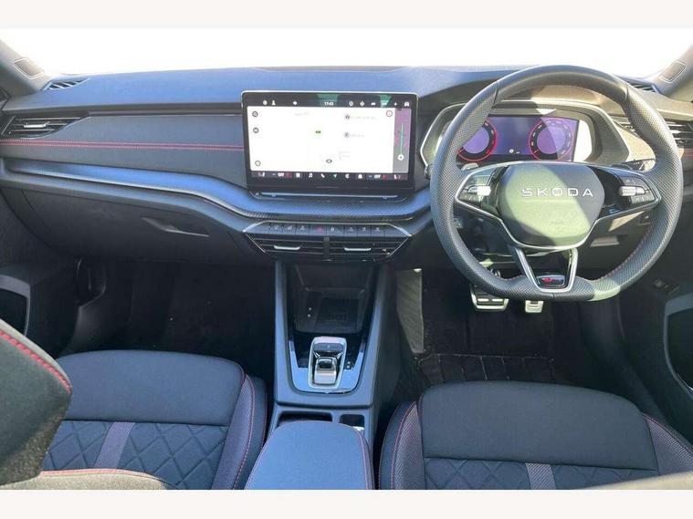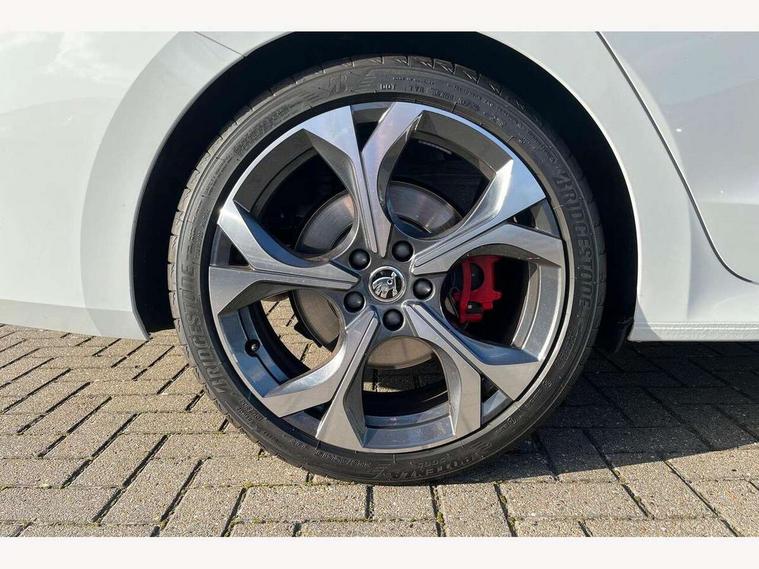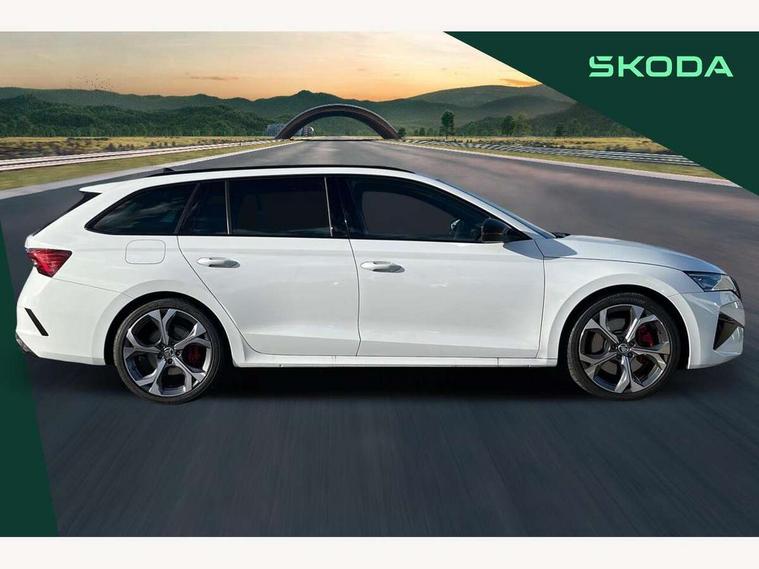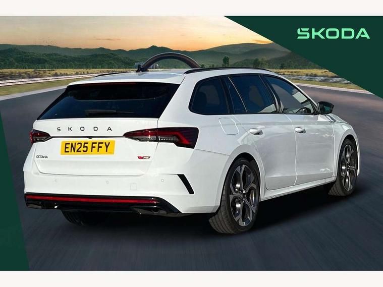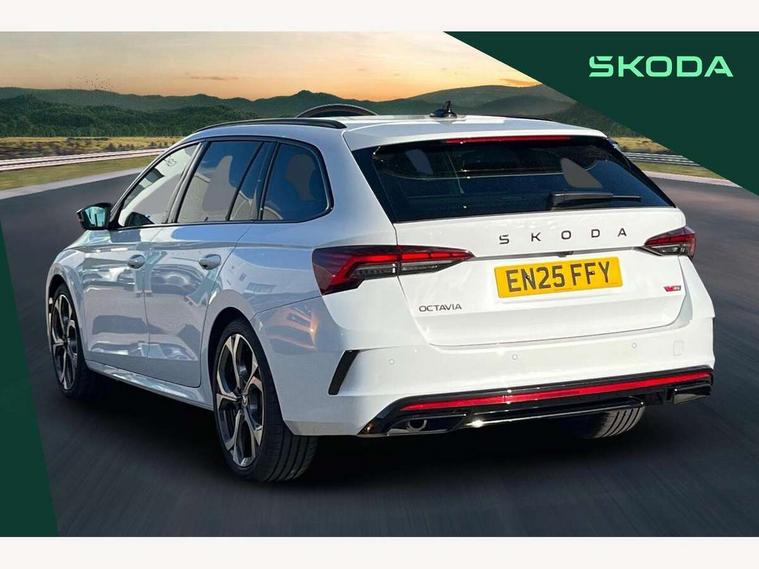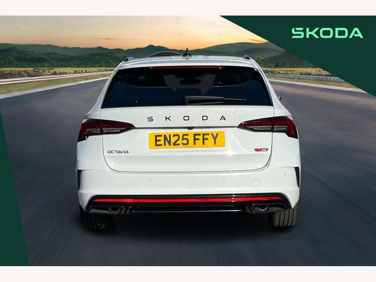 1x USB Typc C port in rear view mirror, 4x USB Type C ports - 2x in front centre console and 2x in rear (45W), Drive mode selection, Driver fatigue sensor, eCall emergency system, Electronic engine sound, Front assist system, Progressive dynamic steering, Traffic sign recognition, Turn Assist, Virtual Cockpit - 10.25" digital display, Voice control system, Wireless charging (15W) with cooling function, Wireless SmartLink for Apple CarPlay and Android Auto, Electronically controlled limited slip differential, vRS suspension, 13" touchscreen display with navigation, DAB Digital radio, Aero front windscreen wipers with intermittent function, Auto dimming rear view mirror, Black sport exhaust pipes, Body colour bumpers, Body colour door handles, Bumpers with rear red reflector strip, Electric front and rear windows, Exterior gloss black sports styling including front grille, window surrounds, door mirrors and badging, Gloss black diffuser, Gloss black roof rails, Gloss black spoiler, Heated rear windscreen, High beam control, High level third brake light, Ice scraper in fuel cap, LED daytime running lights, Logo projection in front doors, Rain and light sensors, Rear fog light on one side and reversing lights on both sides, Rear privacy glass, Rear side wing doors, Rear window wiper, Unique vRS bumpers and exterior styling, 12 volt socket in boot, 2x umbrella in door, 3 rear headrests, 3 seat bench in 2nd row, 4 foldable roof handles, Aluminium pedals, Front head restraints, Front sport seats, Heated front seats, Illuminated glovebox, Interior door handles in dark chrome, Jumbo Box storage, Luggage compartment lighting x2 lights, Mechanical rear seat release from boot, Single front passenger seat, Steering wheel in black leather with black stitching, Storage compartments in left and right of boot, Sun visors with mirrors, Sunglasses storage, Three spoke leather sports multifunction steering wheel with paddles, Ticket holder, Unsplit rear bench seat, split folding backrest with centre armrest with cupholder, Waste bin in door panel, Comfort package - Octavia Estate, Family package - Octavia, Light and view package plus - Octavia, vRS Design Selection pack - Octavia, 3x3 point rear seat belts, Alarm with interior monitoring, tilt sensor and back up horn, Curtain airbags and front side airbags, Driver and front passenger airbags, Drivers knee airbag, Electronic parking brake, ESC including ABS, EBV, MSR, ASR, EDS, HBA, DSR, Front central airbag, Hill hold assist, ISOFIX on front passenger seat and outer rear seats, Passenger airbag deactivate switch, Red brake calipers, Three point seat belts in front and rear, Two tone horn, Tyre pressure monitor, Visual and acoustic seat belt reminder, Warning reflectors in front door, Anti-theft wheel bolts, Keyless entry and start/stop, Remote central locking, Gloss black air vent surrounds, 19" Elias anthracite alloy wheels,