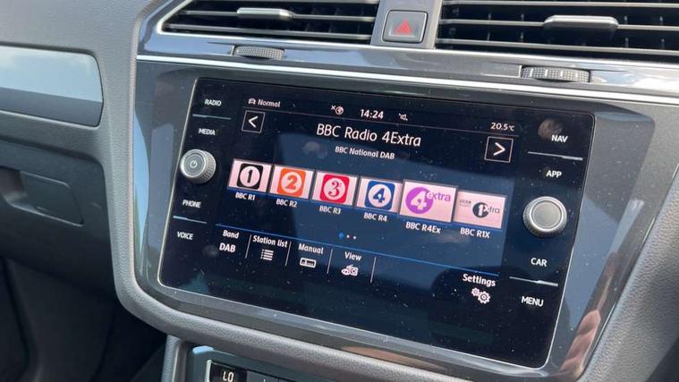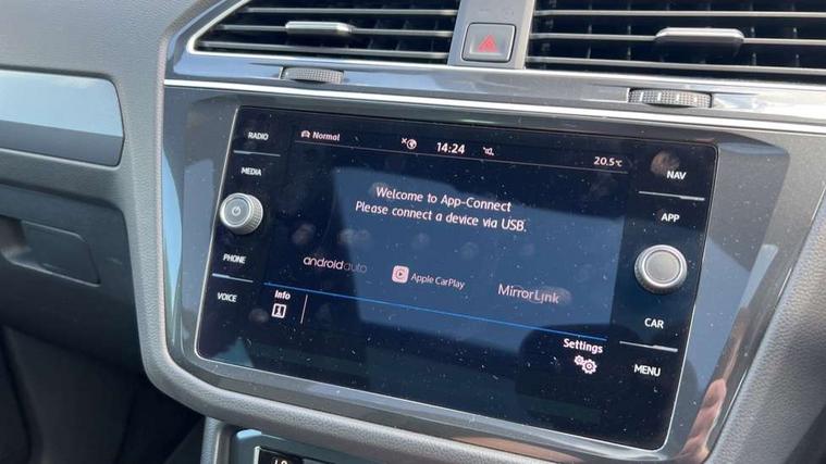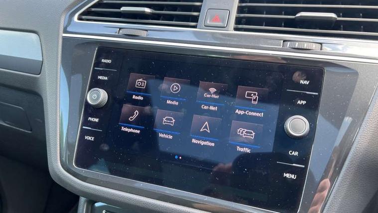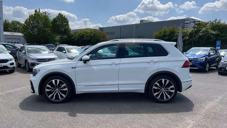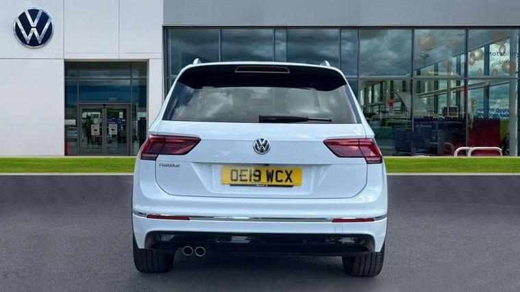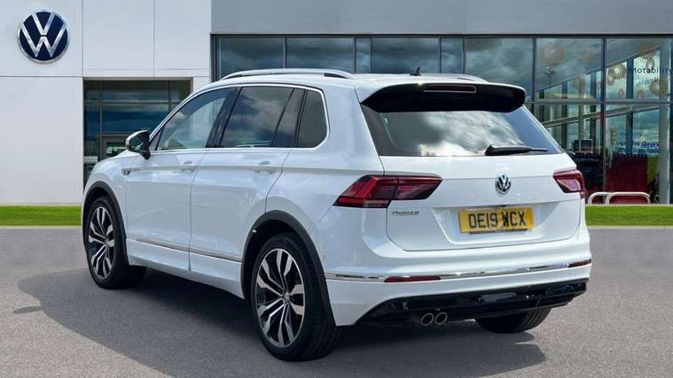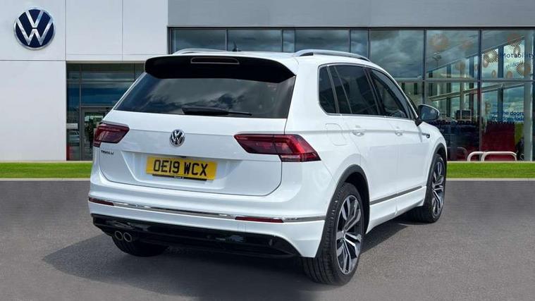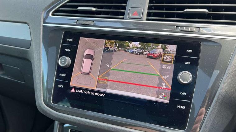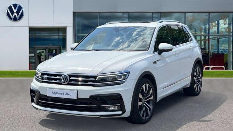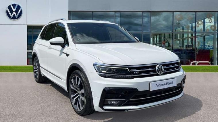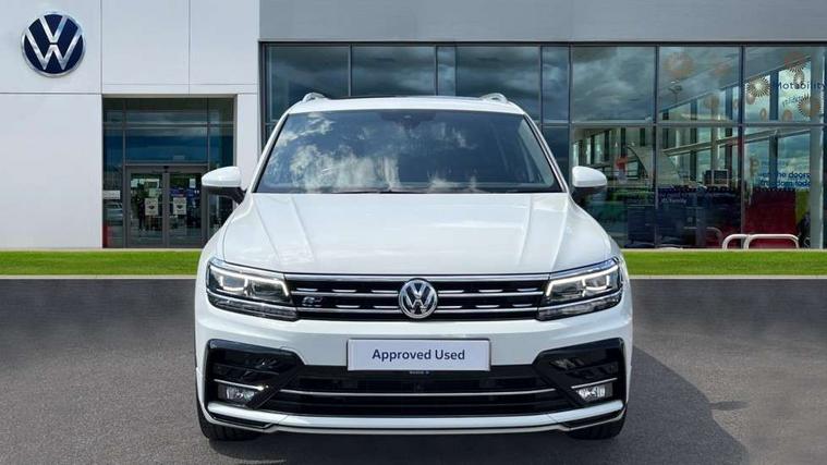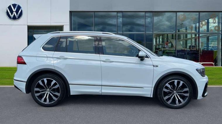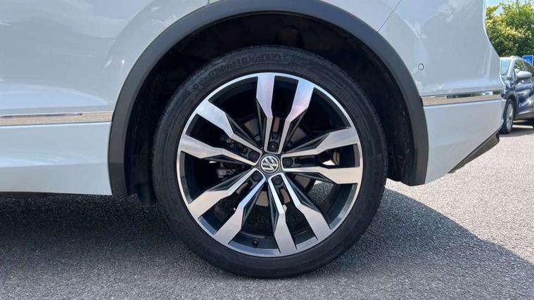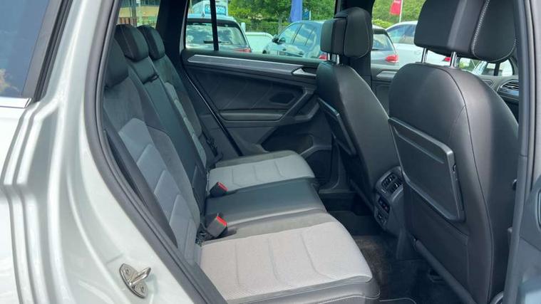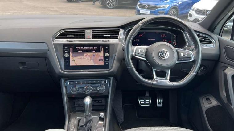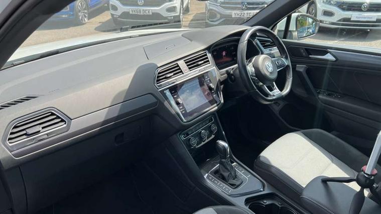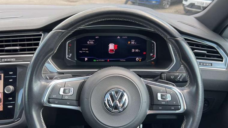 App-Connect, Active information display, Adaptive cruise control, Bluetooth phone integration system, Distance control assist, Driver profile selection, Fatigue detection system, Front assist, radar sensor controlled distance monitor, city emergency braking + predictive pedestrian protection, Instrument cluster, Lane assist, Low washer fluid warning light, Multifunction colour display, Outside temperature display, Progressive power assisted steering, Service interval indicator, Speed limiter, Warning lights, XDS electronic differential lock, 2x USB sockets in front, DAB Digital radio, MP3 compatible single CD player, SD card slot, 3D effect LED rear lights, Auto dimming interior mirror, Automatic activation of hazard warning lights, Body colour door handles, Body colour door mirrors, Body colour rear spoiler, Body colour side skirt, Body coloured bumpers, Chrome side window surrounds, Chrome trimmed radiator grille, Coming/leaving home lighting function, Dusk sensor + auto driving lights, Electric folding door mirrors, Electric heated + adjustable door mirrors, Electric panoramic sunroof with sunblind, Front and rear electric windows, Heated rear window, LED headlights with dynamic light assist daytime running lights and cornering front fog lights, LED rear lights, Piano black rear diffuser, R Line body kit, R Line side sills, Rain sensor windscreen wipers, Rear windscreen washer and wiper with interval delay, Side skirts and rear bumper with chrome insert, Silver roof rails, Silver under body guard, Tinted windows (B pillar backwards), Windscreen wipers/ intermittent wipe + 4 position delay, 12V Accessory socket in centre console, 3 rear headrests, 3 zone climate control, 4 load lashing points, 40:20:40 split folding rear seats, Bag hook in luggage compartment, Black headlining, Driver + front passenger lumbar support, Foldable passenger seatback, Front + rear carpet mats, Front centre armrest with 12v socket, Front centre armrest with storage + rear 2 air vents + cupholders, Front seatback folding tables, Height/reach adjust steering wheel, Illuminated driver/passenger vanity mirrors, Illuminated scuff plates, Instrument lighting white adjustable panel illumination, Interior light with delay, Isofix Preparation 2 Rear child seats, Leather gear knob, Leather multifunction steering wheel with tiptronic control, Load through provision with 2 cupholders when folded, Lockable cooled glovebox, Luggage compartment lighting, Luggage compartment side storage, Map pockets on front seats, Passenger seat height adjuster, Rear cupholders, Removable luggage cover, Sliding/reclining rear seats, Stainless steel pedals, Storage compartment in driver's door, Storage compartment in passenger's door, Storage compartment in rear doors, Storage tray on dashboard, Sunglasses storage, Unique R Line door sill protectors, Variable boot floor, Ambient lighting pack - Tiguan, 3 rear 3 point seatbelts, ABS+EBD+Brake assist, Active bonnet, Active pedestrian safety system, Curtain airbags, Driver/Front Passenger airbags, Driver/Passenger whiplash optimised head restraints, Drivers knee airbag, DTC - Drag torque control, Electronic parking brake with auto hold, ESP with EDL + ASR, First aid kit, Front and rear brake disc, Front assist including city emergency braking, Front side airbags, Front ventilated brake discs, Head airbag system, Height adjustable front 3 point seatbelts + pretensioners, Hill hold control, Passenger airbag deactivate switch, Passenger knee airbag, Pre crash system, Rear side airbags, Seatbelt warning lamp and buzzer, Two tone horn, Warning triangle, Alarm with interior protection, Electronic engine immobiliser, Remote central locking with 2 remote folding keys, Aluminium decorative inserts, Chrome door trim inserts, 20" Suzuka alloy wheels + anti theft wheel bolts, Steel space saver spare wheel,