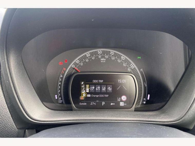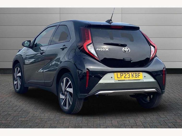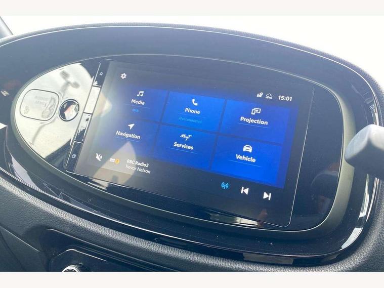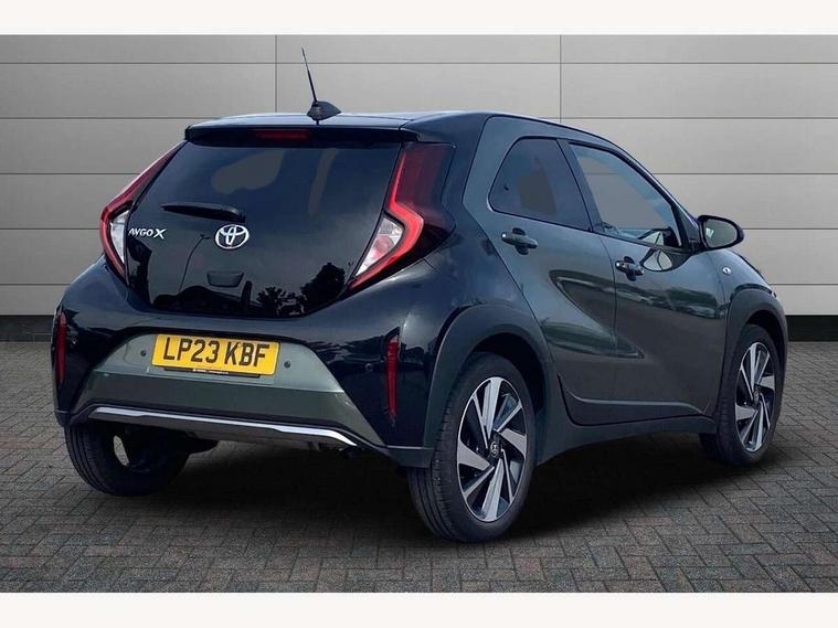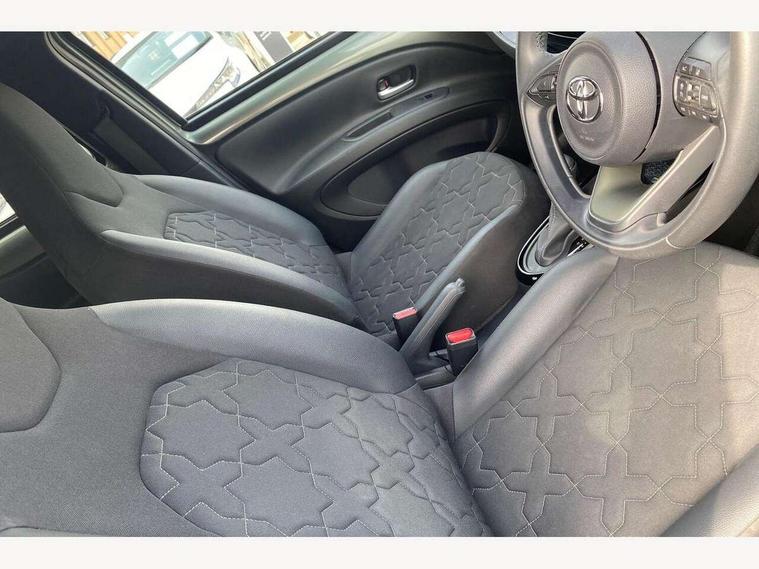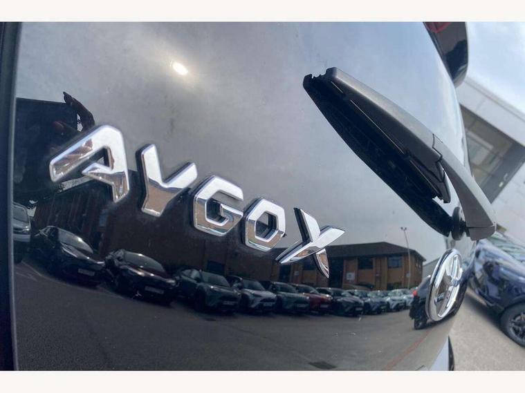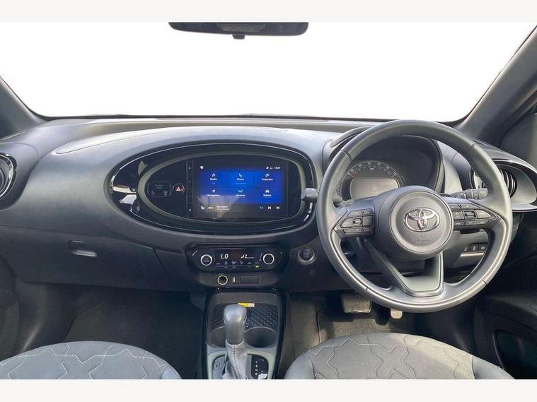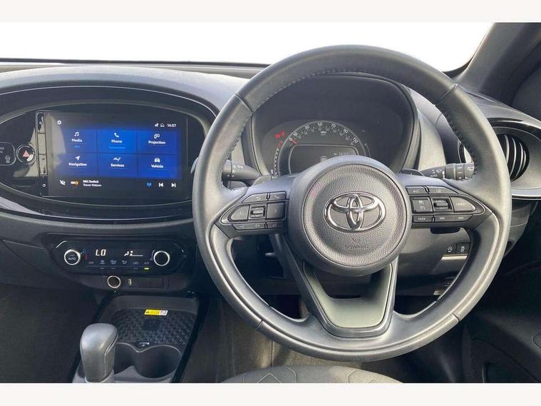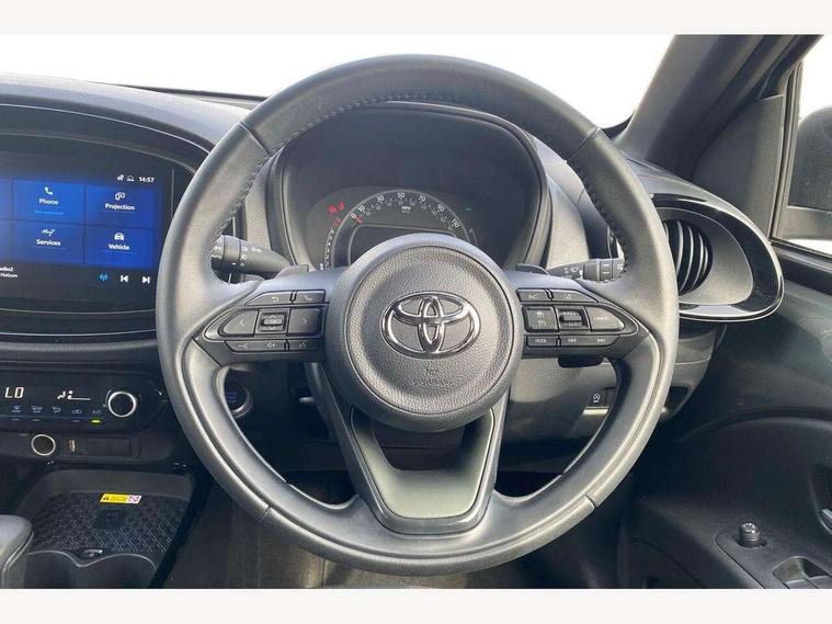 4.2" TFT colour screen, Adjustable speed limiter, Analogue speedometer, Bluetooth connectivity, Digital tachograph, Driver attention alert system, eCall emergency call system, ECO-driving indicator, Electric power steering, Front and rear parking sensors with auto brake, Intersection turn assist, Key reminder warning, Noise reduction kit, Pre collision system with emergency steering assist, Remote boot door release on key, Reversing camera with static guide lines, Smart entry and push button start, Speed limit display, Start and stop, Wireless charger, Wireless Smartphone Integration includes Apple CarPlay and Android auto, Vehicle Stability Control (VSC), 4 speakers, 9" HD multimedia display touch screen with Toyota smart connect, DAB digital audio broadcast, USB connector, Auto headlights, Auto wipers, Automatic headlights cut-off, Automatic high beam On/Off switch, Bicycle towing hook, Black fog light surrounds, Black side protection mouldings, Black wheel arch mouldings, Body colour door handles, Body coloured front bumper, Boot door scuff plate, Eclipse black rear bumper, Electric heated door mirrors, Follow me home headlights, Front and rear underruns in silver, Front fog lights, Front power windows, Gloss black door mirrors, Gloss black upper front grille, Headlight cut-off reminder, LED daytime running lights guide, LED front light guide, LED High mounted stop lamp, LED projector headlights, Manual day/night rear view mirror, Manual headlight levelling, Pagoda roof, Power adjustable door mirrors, Power back door, Privacy glass, Rain sensor, Rear combination lights LED bulb type, Rear side wing doors, Rear windscreen defogger, Rear windscreen wiper, Remote hazard lights system, Short antenna, Variable intermittent windscreen wipers, 12v power outlet - front, 2 seat bench in 2nd row, 3 spoke leather steering wheel, 50/50 split folding rear seat, Adhesive roof headlining, Adjustable speed limiter switch on steering wheel, Audio and telephone switches on steering wheel, Auto air conditioning, Black roof lining, Body colour satin anodised insert on steering wheel, Boot light, Centre room light, Chrome interior door handles, Chrome surround on air conditioning buttons, Clean air filter, Console box storage, Floor mats, Front and rear cup holders, Front head rest deco art, Front head restraints, Gear shift indicator, Height adjustable driver seat, Intelligent adaptive cruise control switch on steering wheel, ISOFIX child restraint system on rear seats, Lane departure alert switch on steering wheel, Leather gearshift knob, Light blue ambient lighting in centre console, Manual tilt steering wheel, Manually reclining and sliding driver seat, Manually reclining and sliding front passenger seat, Multimedia switches on steering wheel, Paddle shift levers on steering wheel, Partial synthetic leather upholstery, Pollen filter, Rear door pockets, Rear head restraints, Remote air-conditioning system, Satin silver insert on gear shift knob, Single compartment glovebox with lights, Single front passenger seat, Soft tonneau cover, Sun visors with mirror on driver and passenger side, Voice recognition switch on steering wheel, Toyota safety sense pack - Aygo X, Anti lock braking system + Electronic brake force distribution, Child safety door lock, Emergency brake light signal (EBS), Hill start assist control (HAC), Passenger airbag on/off switch, Seat belt reminder for front and rear seats, Supplement restraints system (SRS) - 6 airbags, Traction control, Tyre pressure warning system, Immobiliser, Remote power door locks, Black wheel centre caps, Tyre repair kit,
