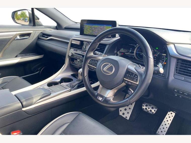 12.3" Touchscreen display and remote touch interface, 5 Driving modes EV/Normal/Eco/Sport/Sport+, Analogue clock with GPS function, Apple car play/Android Auto, Bluetooth mobile phone connectivity, Electric power steering, F SPORT combination meter, Front and rear parking sensors with intelligent clearance sonar, Hands free power boot lid operation with kick sensor, Lane change flasher function, Lexus link connected services with available optional wifi, Lexus Premium Navigation with full European map capability, street view and connected services, Multi-information display 4-inch TFT, Push button starter, Reversing camera with back guide lines, Wireless Smartphone charger, Adaptive variable suspension, E-Four Automatic transmission, F SPORT specific suspension tuning, Front and rear performance dampers, Vehicle Dynamics Integrated Management (VDIM), Vehicle Stability Control (VSC), 12 speakers Pioneer audio, AUX socket with VTR compatibility, DAB Digital radio, DVD, Front and rear USB ports, 3 eye LED headlights with adaptive high beam system with bladescan, Auto dimming rear view mirror, F SPORT exterior styling consists of Mesh front grille, front and rear bumper, badging, black outside mirror covers, Front and rear electric windows, Headlight washers, Heated, auto-folding door mirrors, auto dimming with rerverse tilt and memory, LED brake lights and rear lights with emergency brake signal, LED cornering headlights, LED daytime running lights, LED front and rear sequential indicators, LED front fog lights, Privacy glass, rear doors and tailgate, Puddle lights, Rain sensor windscreen wipers, Rear side wing doors, Rear wash/wipe, Roof rails, 2 map pockets in the rear, 2 way electric lumbar support, 2 way manually adjustable front headrests, 2 way manually adjustable rear headrests, 2 x fixed shopping bag hooks in boot, 2 x Sunvisors with vanity mirror and lamp, 3 seat bench in 2nd row, 3 x 12V power sockets, 4 x tie down hooks in the boot, 40:20:40 split folding rear seats, 60/40 split folding rear seat with 40/20/40 folding ability, 8 way electrically adjustable front seats, Active sound control, Card holder installed in driver and passengers sun visors, Centre and rear armrest with 2 cupholders, Centre armrest with storage box, Climate concierge, Drilled F SPORT aluminium sports pedals, Driver seat memory function, Driver's seat easy access auto retraction function, Dual zone climate control air conditioning system with S flow and Nanoe technology, Electrically adjustable F SPORT leather steering wheel with paddle shifts and auto retraction function, Electrically adjustable steering column, F SPORT leather gearlever, F SPORT seats - Leather upholstery, Glasses holder in roof lighting panel, Heated front seats, Heated steering wheel, Illuminated entry system, Isofix standard child seat restraint mounting, LED interior illumination, Rear armrest with storage, Rear door sunshades, Self charging hybrid, Single front passenger seat, Sliding/reclining rear seats, Small compartment to right of steering wheel, Textile carpet mats, Unique LED illumination instrumnet panel, Ventilated front seats, 3 point ELR front and rear seatbelts with pretensioners, ABS, Curtain airbags, Driver and front passenger 2 stage airbag, Driver/front passenger side airbags, Drivers knee airbag, EBD + Brake Assist, Electronic parking brake, Electronically controlled braking, Front passenger seat cushion airbag, Hill assist control, Lexus safety system - dynamic radar cruise control, pre collision system day and night, lane tracing assist, road sign, automatic high beam, OTA, Passenger airbag cut-off device, Rear passenger side airbags, Traction control, Tyre pressure warning, WIL whiplash protection front seats, Anti theft system with alarm, intrusion sensor, tilt sensor, glass breakage sensor and engine immobiliser, Locking wheel nuts, Security window etching, Smart keyless entry, Two motion door lock with double lock, Aluminium inlays, 20" F SPORT alloy wheels, Temporary spare wheel,