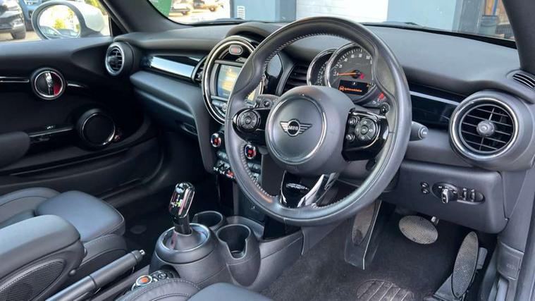 Automatic start/stop function with brake energy recuperation, Compatible mobile phone bluetooth with audio streaming, Electro-mechanical speed dependant steering assistance, Instrument cluster, Mini E-call, MINI TeleServices, On board computer, Rear park distance control, Service interval indicator, Double Vanos system, Fully variable valve control, High precision injection, Performance Control, Steptronic sport transmission with double clutch and steering wheel paddles, 6.5" touchscreen with LED ring, FM tuner and DAB digital radio, Automatic headlight activation switch, Bonnet scoop, Chrome plated fuel cap, Dynamic brake lights, Electric windows, Fully electric black softtop with integrated sunroof functionality, Heated rear window, Heated windscreen washer jets, LED headlight with closed ring and daytime driving lights, Metal door sill strips with Cooper S imprint, Model logo Cooper S on right of tailgate, Radiator grille bars, tailgate handle, lower front grille grating, rear central fog light in chrome, Rain sensor window wipers, Rear fog lights, Rear LED lights with union jack design, Side scuttle panel with integrated indicator, Sun/heat protection glass, Two central exhaust tailpipes with chrome finisher, White indicator lenses, 12V Accessory socket in centre console, 4 lashing eyes in luggage compartment, 50/50 split folding rear seats, Air vents, gear lever base, speakers in doors, door handles in chrome, Chrome interior highlights, Cupholders, Easy Load boot handles, Front and rear head restraints, Front and rear isofix with front passenger airbag deactivation, Front seatback storage pockets, Glove compartment, Height and length steering column adjustment, Interior lighting with 12 basic colours selectable via toggle switch in roof, Leather gearshift lever and handbrake gaiters, LED reading lights, vanity mirror lights, front foot well light and spotlight on front seats, Manual air conditioning, Mechanical seat adjustment, driver seat height adjust, forward/back and front seats backrest, Mini logo projection on floor from drivers exterior mirror, MINI Yours fine walk nappa leather steering wheel with contrast stitching in silver and MINI Yours badge, Multifunction steering wheel, Storage compartments in doors, Sunvisors with vanity mirrors, 3 point seatbelts on all four seats, 6 Airbags - front, side and seat belt tensioners, Active rollover protection, Anti-lock braking system (ABS), DSC - Dynamic Stability Control, Front and rear disc brakes, Hill start assist, Two tone horn, Tyre pressure monitoring system, Alarm system with tilt sensor, monitoring doors, bonnet interior and tailgate, Electronic vehicle immobiliser, Keyless Go, Chrome line interior, Tool kit,