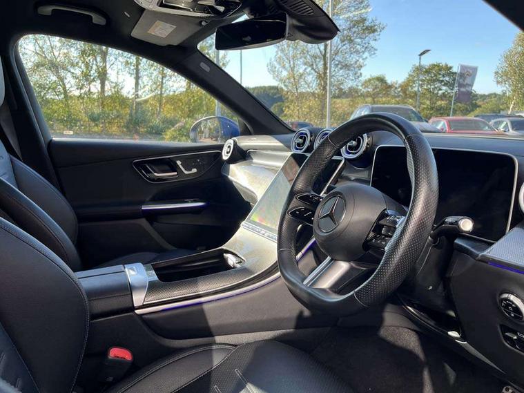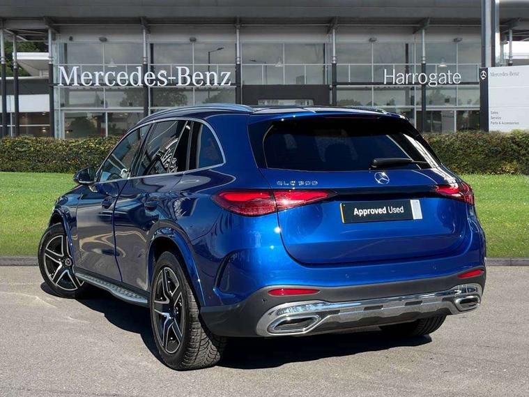 11.9" high resolution multimedia colour display, 12.3" Digital individually configurable instrument display, Acoustic presence indicator, Active lane keeping assist, Attention assist, Blind spot assist, Bluetooth interface for hands free telephone, Collision prevention assist plus, Cruise control with speedtronic variable speed limiter, Direct steer speed sensitive steering, DYNAMIC SELECT with a choice of driving modes (ECO, Comfort, Sport, Sport+ and Individual), Easy pack automatic powered tailgate, eCall emergency call system, ECO start/stop function, Fingerprint scanner, Fluorescent jacket for driver, Hard disc navigation, Instrument display in miles with English lettering, MBUX navigation premium, MBUX voice control activated by keywords "Hey Mercedes", Mercedes me connect, Outside temperature display, Remote boot release, Remote services, Service indicator (ASSYST), Smartphone integration, Speed limit assist, Status display for rear seat belts in instrument cluster, Traffic sign assist, Trip computer, Wireless charging, 48V Mild hybrid technology, 4MATIC permanent four wheel drive, 62 litre fuel tank, 9G TRONIC plus automatic transmission, Petrol Particulate Filter (PPF), Sport suspension, DAB digital radio tuner, MBUX extended functions, Mercedes benz sound system, Pre installation for Mercedes Benz Link, Adaptive brake lights, Adaptive high beam assist, Aluminium look running boards with rubber studs, Aluminium roof rails, AMG bodystyling front apron, rear apron and side skirts, AMG Line exterior, Auto headlights, Body colour bumpers, Body colour door mirrors, Electrically adjustable door mirrors, Front and rear electric windows, Headlight washers, Heat insulating dark tinted glass, Heated rear window, High level LED brake light, LED high performance headlamps with integrated LED daytime running lights, LED indicator lights, LED rear fog lights, LED tail lamp, Radiator grille with Mercedes Benz pattern and integreated Mercedes star and louvre in dark grey matt with chrome inlay and black frame, Rain sensor windscreen wipers, Range adjustable headlights, Rear side wing doors, Rear wiper, Two chrome plated tailpipe trim elements, Variable front intermittent wipers, Welcome and follow-me home light functionality, Wider wheel arch for AMG wheels, 3 seat bench in 2nd row, 40:20:40 split folding rear seats, Ambient lighting premium, AMG line interior, Artico man-made leather upholstery, Audio and onboard settings control on multifunction steering wheel, Automatic child seat recognition sensor, Black fabric roof lining, Black floor mats with AMG lettering, Double cup holder in centre console, Easy-pack removable load compartment cover, Electrically height/reach adjustable steering column, Front centre armrest with stowage compartment, Front head restraints, Galvanised steering wheel gearshift paddles, Heated front seats, Illuminated door sill panels with Mercedes Benz lettering, Illuminated glove compartment, Instrument panel and beltlines in ARTICO manmade leather in nappa look, Multifunction sports steering wheel in nappa leather, Rear centre headrest, Rear head restraints, Rear top tether child seat ISOFIX attachment, Single front passenger seat, Sports pedals with stainless steel surfaces and rubber studs, Sports seats, Sun visors, THERMATIC 2 zone automatic climate control, Anti theft protection package - GLC, Boot comfort package - GLC, Exterior chrome package - GLC, Interior chrome package - GLC, Interior lighting pack - GLC, Memory pack - GLC, Mirror pack - GLC, Parking package with reversing camera - GLC, Seat comfort package - GLC, Stowage space package - GLC, USB Package - GLC, 3 rear 3 point seatbelts, Active braking assist, Anti-lock braking system (ABS), ASR traction control, Automatic front passenger airbag deactivation, Black seat belts, Brake calipers with Mercedes-Benz lettering + perforated brake discs, Braking system with larger brake discs on the front axle, Child proof door locks, Dual-stage airbags - driver and front passenger, driver knee bag and window bags for driver, front passenger and rear passengers, Electronic parking brake, Electronic stability programme (ESP) with curve dynamic assist and cross wind assist, Front and rear seatbelt reminder, Front passenger seat occupancy sensor, Front seatbelt pretensioners, Hill start assist, Tyre pressure monitoring system, Warning triangle and first aid kit, Automatic door locking, Guard 360 degree vehicle protection plus, Interior protection/immobiliser, Keyless Go starting function, Remote central locking, Centre console in metal structure finish, Metal structure trim, 19" AMG 5 spoke aerodynamically optimised light alloy wheels in painted black with high sheen finish, Summer tyres, TIREFIT with tyre inflation compressor,