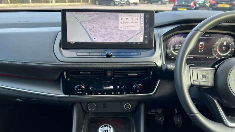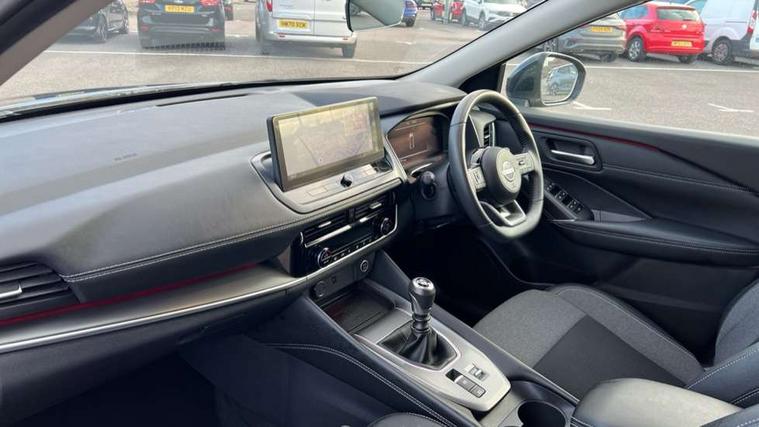 2 front USB-C ports, 2 rear USB-C ports, 360 degree Intelligent around view monitor with moving object detection, Blind spot intervention, Blind spot warning, Drive assist, Drive assist custom mode, Drive modes (sport, normal, eco), Driver drowsiness and attention warning, Electric speed sensitive power steering, Emergency and breakdown call, Emergency lane keep assist, Emergency Stop Signal (ESS), Engine start/stop button, Event data recorder, Front and rear parking sensors, Full Digital 12.3" TFT Digital Combimeter, Google virtual personal assistance, Idle stop/start system, In-car WIFI hotspot, Intelligent Cruise control (ICC), Intelligent forward collision warning, Intelligent speed assist, Lane departure warning system, Nissan connect 12.3 inch touchscreen infotainment system, Nissan connect navigation with google maps, Nissan connect services 2.0 (Google Automotive System), Outside temperature sensor, Rear cross traffic alert, Reversing detection, Wireless Apple CarPlay/Android Auto, Wireless charging pad, Limited slip differential, 6 speakers, AM/FM audio system with DAB, Bluetooth audio streaming, Auto rear wiper when reversing, Body colour mirror caps, Body coloured door handles, Bodyside mouldings, Chrome side window finisher, Electric auto folding door mirrors, Electrically adjustable and heated door mirrors with LED turn indicator, Follow me home headlights, High beam assist, Intelligent auto headlights, LED 3rd brake light, LED daytime running lights, LED Headlights, LED rear lights, One touch front and rear electric windows with remote opening and closing, One touch passenger window, Partially body coloured bumpers, Rear privacy glass, Rear roof spoiler, Rear side wing doors, Rear styling plate, Shark fin antenna, Splash free rain sensing wipers, Super UV and infrared cut glass, Three blink turn signal, 3 bench rear seats in 2nd row, 3 rear headrests, 60/40 split folding rear seat bench, Chrome interior door handles, Cloth upholstery, Dark headlining, Driver seat back pocket, Dual zone automatic climate control with pollen filter, Front door with bottle holders, Height adjustable front headrests, Leather shift knob, Luggage board system, Luggage space lighting, Multifunction steering wheel, Passenger seat back pocket, Rear door bottle holders, RGB ambient light (Full area coverage), Single front passenger seat, Smooth leather steering wheel, Tilt/telescopic adjustable steering wheel, Two rear isofix child seat anchorage points with top tether, 3x3 point rear seatbelt pretensioners + load limiters, Autonomous emergency braking, Child locks on rear doors, Curtain and front side, far side airbags, Driver and passenger airbags, Driver, passenger and 2nd row rear seat belt reminder, Electric handbrake with auto hold function, Front seatbelt pretensioners + load limiters, Height adjustable front seatbelts, Hill start assist, intelligent front emergency braking, Rear automatic braking, Tyre pressure monitoring system, Vehicle dynamic control, Engine immobiliser, Intelligent key with walk away lock and approach unlock functions, Remote central door locking with deadlocking, Thatcham alarm, 18" Diamond cut alloy wheels, Tyre puncture repair kit,