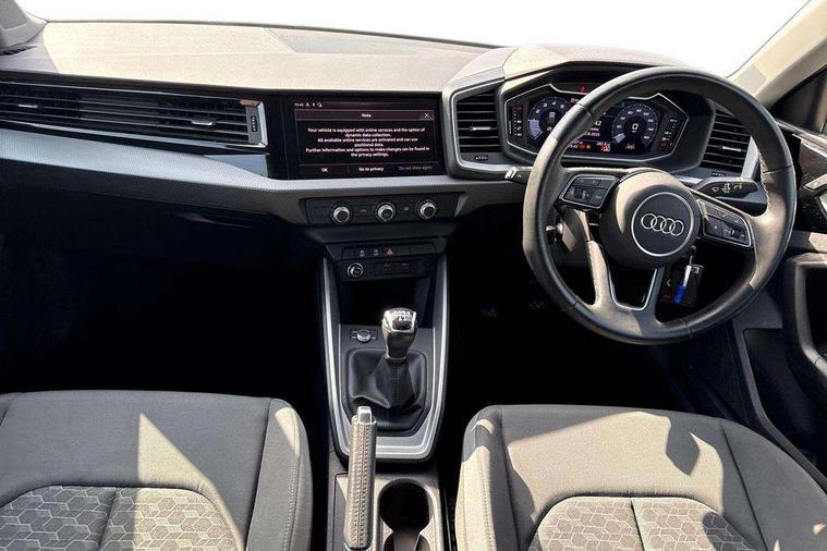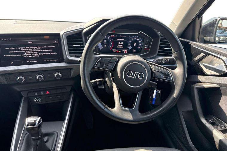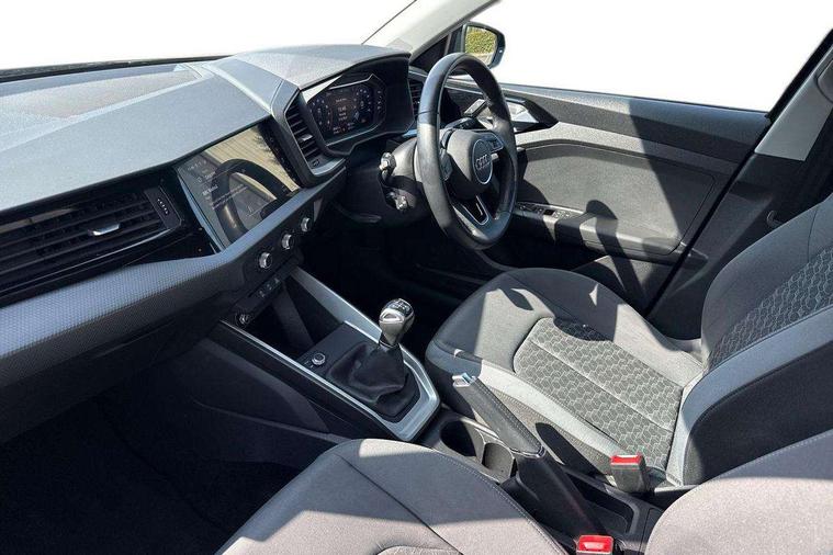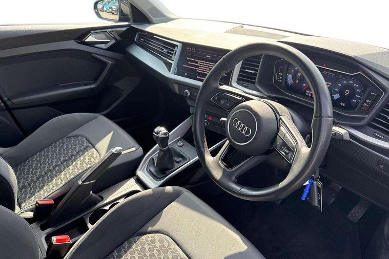 10.25" Digital instrument cluster display classis style instrument dials + speed, odometer, time, outside temperature, telephone menu + fuel level warning, Audi smartphone interface with connect compatible smartphone via USB directly MMI display + Nav, music, third party apps controlled via MMI controller, Automatic start/stop system, Bluetooth interface, Cruise control, Driver's information system, Electromechanical power steering, Emergency e-call, Lane departure warning system, Rear parking sensor, Service interval indicator, Speed limiter, Voice control system, Washer fluid level indicator, Dynamic suspension, 2 x USB type C connection points, 6 passive loudspeakers, DAB Digital radio, MMI radio plus with 10.1" colour MMI display screen and MMI touch, Auto dimming rear view mirror, Body coloured bumpers, Body coloured door mirrors, Electric front and rear windows, Electrically adjustable, heated, folding door mirrors with integrated LED side indicator, Front side air inlets in grained matt black and C frame in anthracite black, Heat insulating glass windscreen and side windows, Heated rear windscreen, High level LED brake light, LED headlights with LED rear lights + dynamic rear indicators + headlight adjustment and high beam, turning light + LED daytime running lights, Radiator grille and rear diffuser in matt anthracite black, Radiator protective grille frame in matt aluminium silver, Rain and light sensors, Rear fog lights, Rear side wing doors, Rear wiper, Side front spoiler lips in grained matt black, 12V socket in centre console with two cup holders, 3 rear seats with headrests, 3 seat bench in 2nd row, 3 spoke leather multifunction plus steering wheel, 40:60 Split folding rear seat or folded fully, Black front and rear floor mats, Door sill trims with aluminium inlay, Driver and passenger seat with manual height adjust with forward and backwards adjustment, Front head restraints, Front passenger seat, Grey cloth headlining, Height and reach adjustable steering wheel, ISOFIX child seat mounting for front passenger and outer rear seats including top tether attachment point of outer rear seats, Leather gear knob with aluminium trim, Leather handbrake grip, Luggage compartment light with front and rear reading lights, Manual air conditioning, Manually adjustable lumbar support in front seats, Novum cloth upholstery with front sport seats, Luggage compartment pack - A1, 3x3 point rear seatbelts, Audi pre-sense front with pedestrain and cyclist recognition, Brake assist function, Driver and front passenger airbag with front side and head airbags, Electronic Stability Control including ABS, EBD, ASR and EDL, Front passenger airbag deactivation switch, Hill hold assist, Manual rear child locks, Seatbelt height adjustment for front seats, Seatbelt monitoring, Tyre pressure warning light, Warning triangle and first aid kit, Anti theft alarm, Anti theft wheel bolts and loose wheel warning, Immobiliser, Remote central locking with 2 foldaway keys, Aluminium trim for control switches, air vents and digital instrument cluster, Black dashboard, Silver grey accent areas including air vents, door handle recesses and centre console in diamond paint finish, Slate grey inlays polygon structure in fine paint finish,