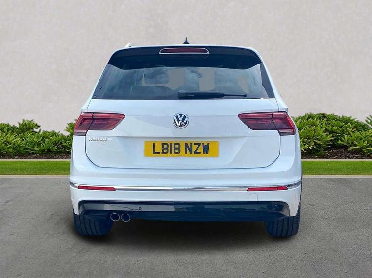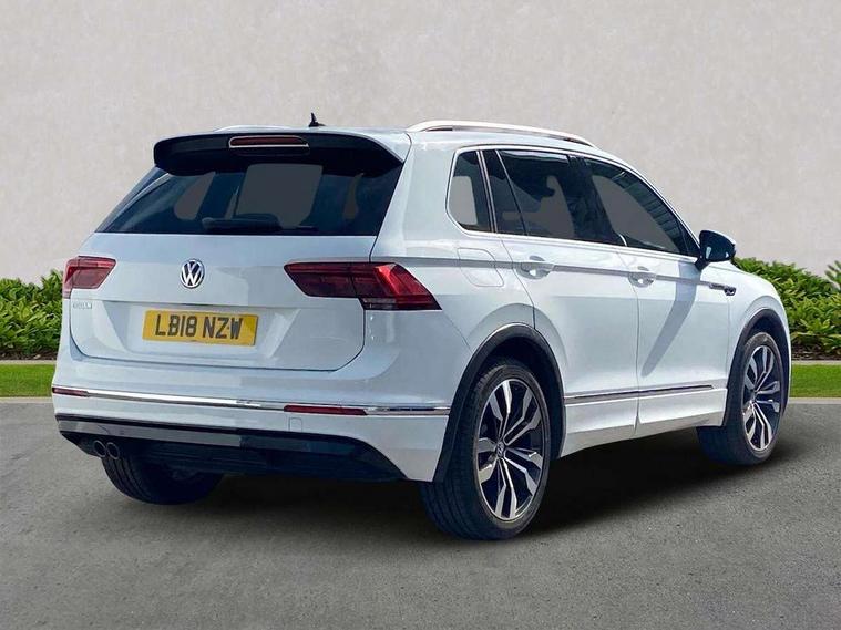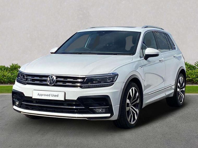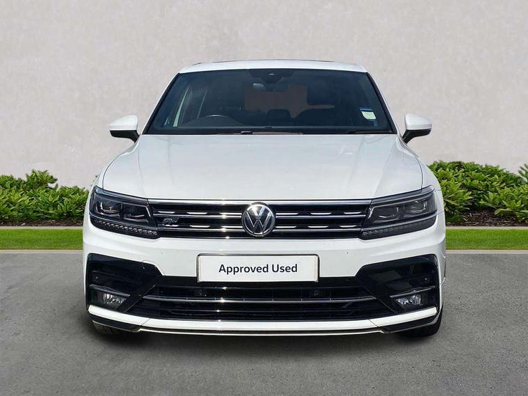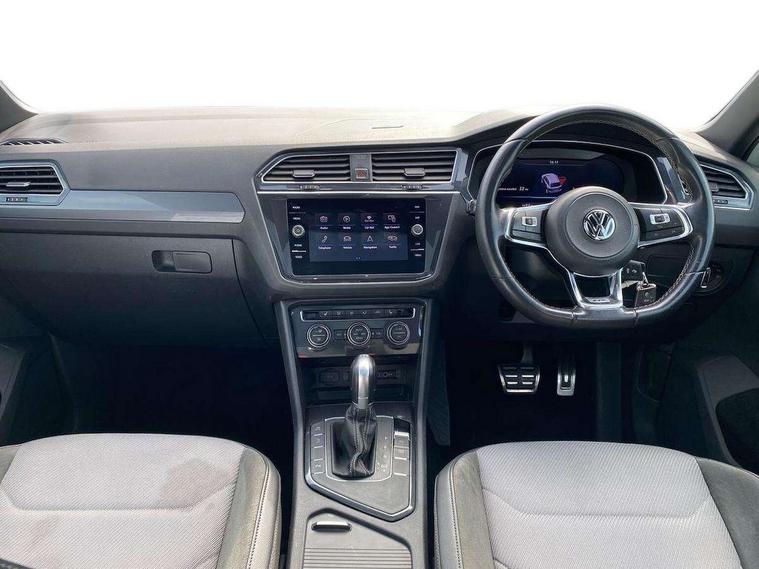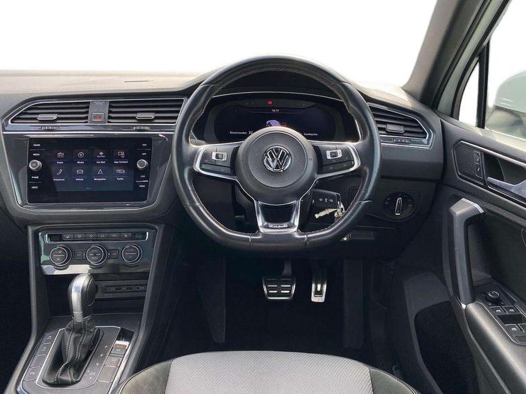 Active information display, Adaptive cruise control, App-Connect, Bluetooth phone integration system, Distance control assist, Driver profile selection, Fatigue detection system, Instrument cluster, Lane assist, Low washer fluid warning light, Outside temperature display, Progressive power assisted steering, Service interval indicator, Speed limiter, Warning lights, Diesel particulate filter, XDS electronic differential lock, 2x USB sockets in front, Aux-in socket, DAB Digital radio, MP3 compatible single CD player, SD card slot, Auto dimming interior mirror, Automatic activation of hazard warning lights, Body colour door handles, Body colour door mirrors, Body colour rear spoiler, Body colour side skirt, Body coloured bumpers, Chrome side window surrounds, Chrome trimmed radiator grille, Coming/leaving home lighting function, Dusk sensor + auto driving lights, Electric folding door mirrors, Electric heated + adjustable door mirrors, Electric panoramic sunroof with sunblind, Front and rear electric windows, Heated rear window, LED headlights with dynamic light assist daytime running lights and cornering front fog lights, LED rear lights, Piano black rear diffuser, R Line body kit, Rain sensor windscreen wipers, Rear windscreen washer and wiper with interval delay, Silver roof rails, Silver under body guard, Tinted windows (B pillar backwards), Windscreen wipers/ intermittent wipe + 4 position delay, 12V Accessory socket in centre console, 3 rear headrests, 3 zone climate control, 4 load lashing points, 40:20:40 split folding rear seats, Bag hook in luggage compartment, Black headlining, Driver + front passenger lumbar support, Foldable passenger seatback, Front + rear carpet mats, Front centre armrest with 12v socket, Front centre armrest with storage + rear 2 air vents + cupholders, Front seatback folding tables, Height/reach adjust steering wheel, Illuminated driver/passenger vanity mirrors, Illuminated scuff plates, Interior light with delay, Isofix Preparation 2 Rear child seats, Leather gear knob, Leather multifunction steering wheel with paddle shift, Load through provision with 2 cupholders when folded, Lockable cooled glovebox, Luggage compartment lighting, Luggage compartment side storage, Map pockets on front seats, Passenger seat height adjuster, Rear cupholders, Removable luggage cover, Sliding/reclining rear seats, Stainless steel pedals, Storage compartment in driver's door, Storage compartment in passenger's door, Storage compartment in rear doors, Storage tray on dashboard, Sunglasses storage, Variable boot floor, Ambient lighting pack - Tiguan, 3 rear 3 point seatbelts, ABS+EBD+Brake assist, Active bonnet, Active pedestrian safety system, Curtain airbags, Driver/Front Passenger airbags, Driver/Passenger whiplash optimised head restraints, Drivers knee airbag, DTC - Drag torque control, Electronic parking brake with auto hold, ESP with EDL + ASR, First aid kit, Front assist including city emergency braking, Front side airbags, Head airbag system, Height adjustable front 3 point seatbelts + pretensioners, Hill hold control, Passenger airbag deactivate switch, Passenger knee airbag, Pre crash system, Rear side airbags, Seatbelt warning lamp and buzzer, Two tone horn, Warning triangle, Alarm with interior protection, Electronic engine immobiliser, Remote central locking with 2 remote folding keys, Aluminium decorative inserts, Chrome door trim inserts, 20" Suzuka alloy wheels + anti theft wheel bolts, Steel space saver spare wheel,