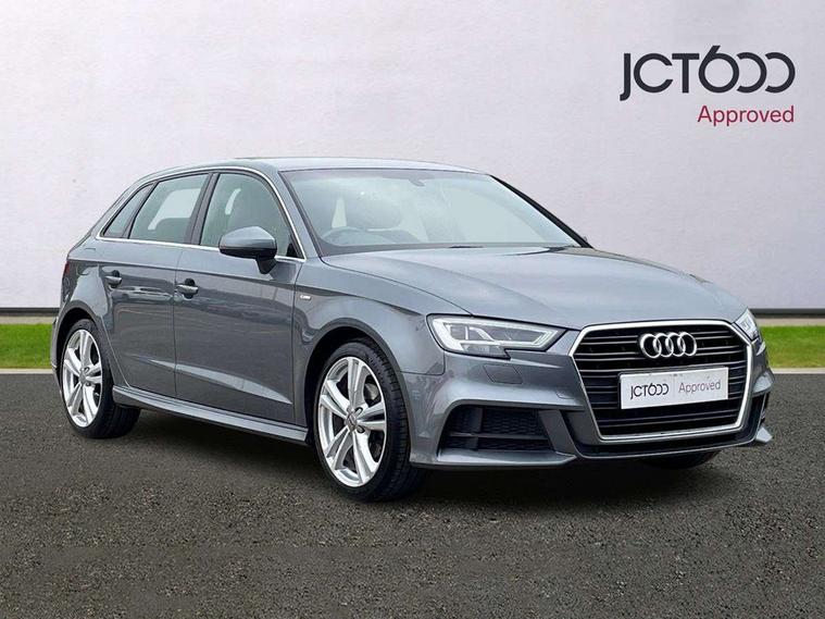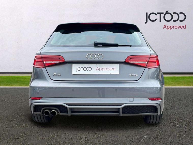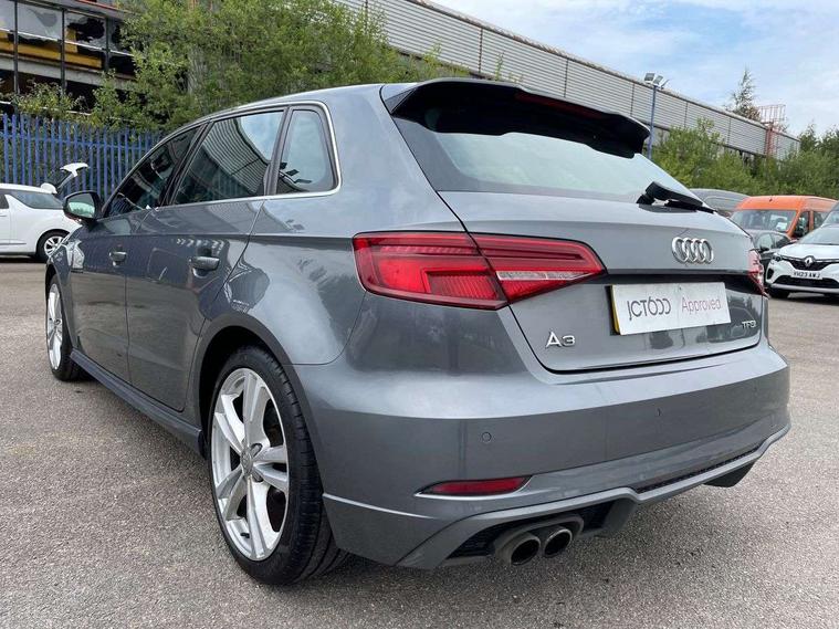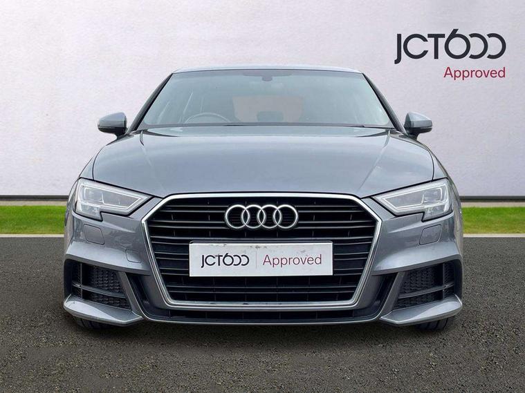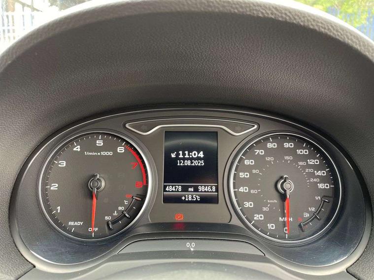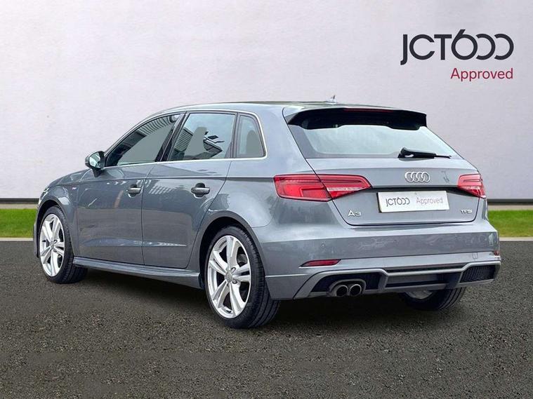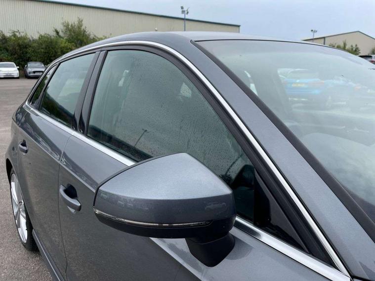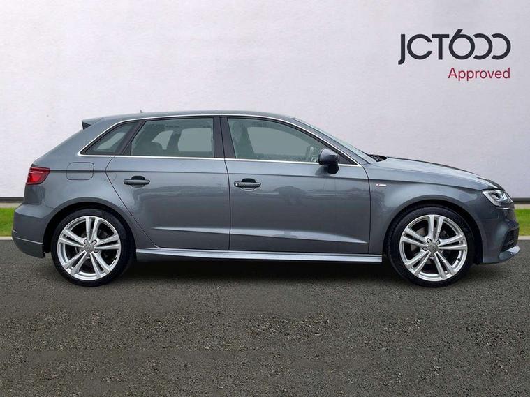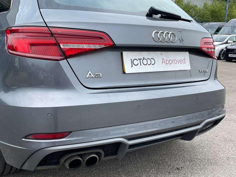 Audi connect, Audi drive select, Audi smartphone interface, Colour driver's information system display, Electro-mechanical PAS, HDD satellite navigation system radio single CD/DVD player MMI control system, Mobile telephone preparation - bluetooth interface, Service interval indicator, Speed limit display, Voice control system, 2 USB ports, Audi music interface, Auxiliary input socket, CD player, DAB Digital radio, MMI radio plus with 7" colour MMI screen and MMI controller, Aluminium window trim, Auto dimming rear view mirror with light and rain sensors, Body colour bumpers, Body colour door mirrors with integral indicators, Body colour roof spoiler, Chrome exhaust tailpipes, Electric front windows, Electric operated/heated door mirrors, Electric rear windows, Heated windscreen washer jets, LED daytime running lights, Matt black radiator grille, Rear wiper, S Line body styling, Sport specific side air inlet grille and diffuser insert, 3 adjustable rear headrests, 3 spoke flat bottomed multi-function leather steering wheel, 4 lashing points to secure luggage, Adjustable front armrest, Black cloth headlining, Dual zone electronic climate control, Front and rear interior lights with delay, Front passenger seat isofix location point, Front sports seats, Front/rear floor mats, Height/depth adjustable steering column, Illuminated glovebox, ISOFIX child seat preparation+airbag deactivation, Jack and tool kit, Stainless steel pedals, Storage compartment in centre console, Storage compartment under front seats, Storage compartments in doors, LED interior light pack - A3/RS3, Non smoking pack - A3, Storage and luggage pack - A3/RS3, 3 point seatbelts on all seats, ABS/EBD, Active bonnet, Active front headrests, ASR, Curtain airbags, Driver and passenger side airbags, Driver/Front Passenger airbags, Drivers knee airbag, EDL, Electromechanical parking brake, ESC - Electronic Stability Control + traction control, Front passenger airbag deactivation, Manual rear child locks, Multi-Collision braking, Seatbelt warning, Tyre pressure warning, Warning triangle and first aid kit, Anti theft alarm, Anti-theft wheel bolts, Remote control central locking, Thatcham category 1 alarm + immobiliser, Aluminium air vent surrounds, Aluminium trim elements, Matt brushed aluminium inlays, Space saver spare wheel,