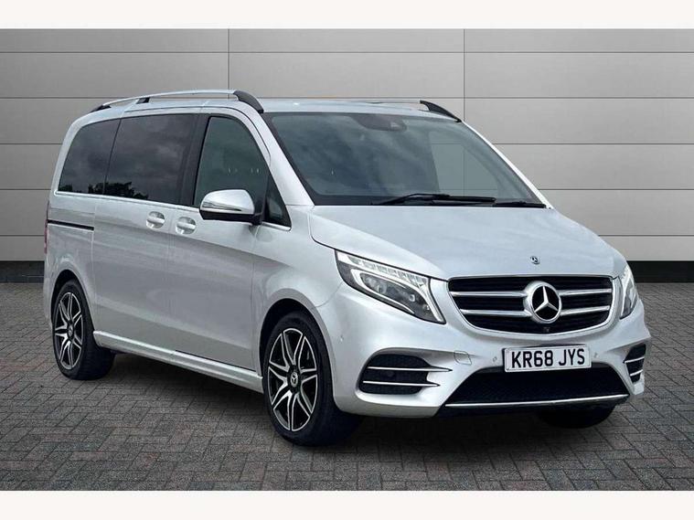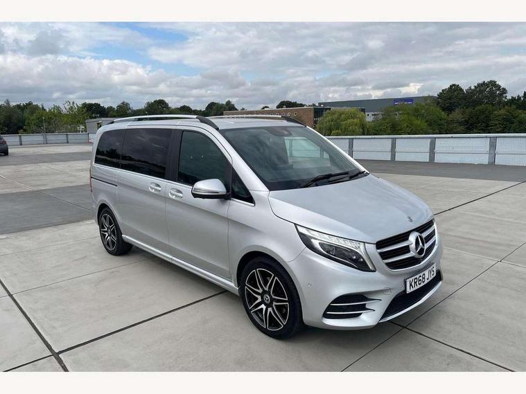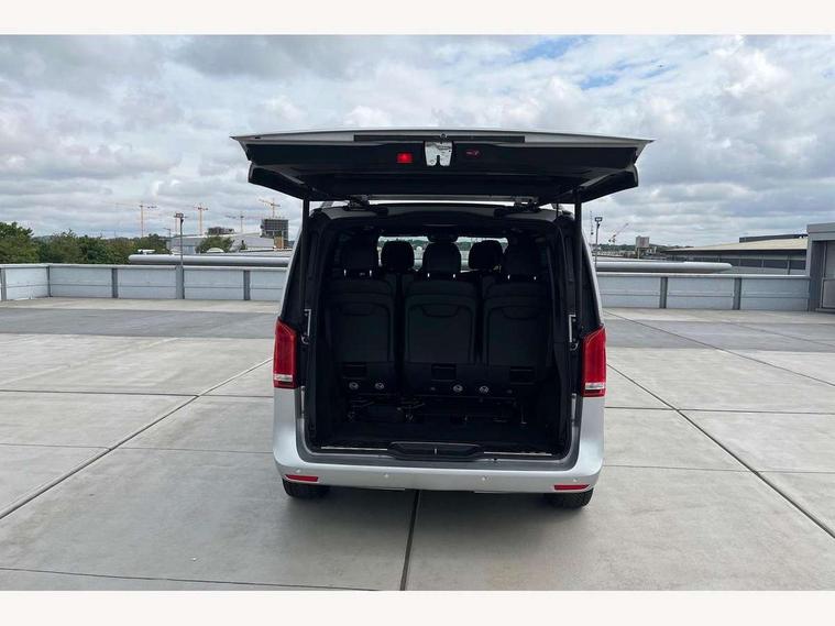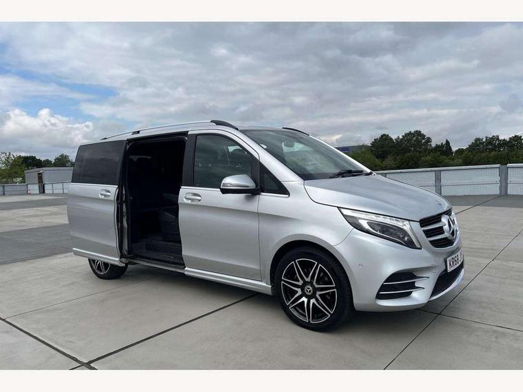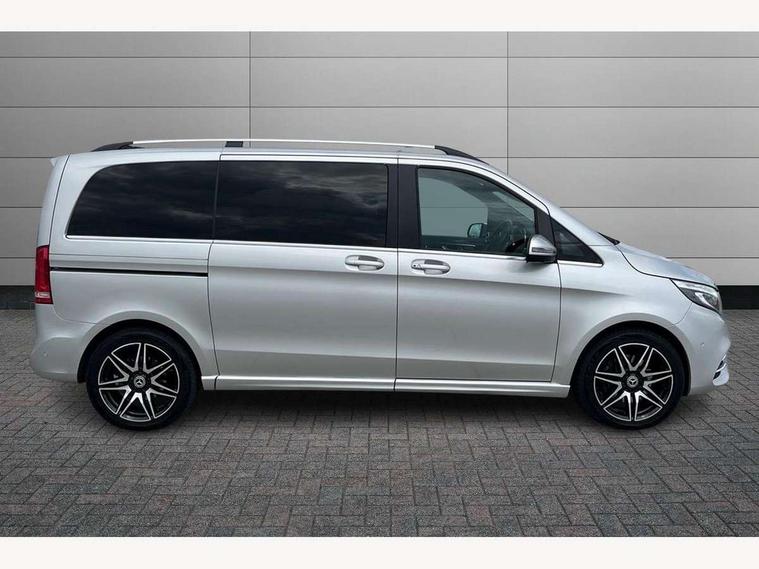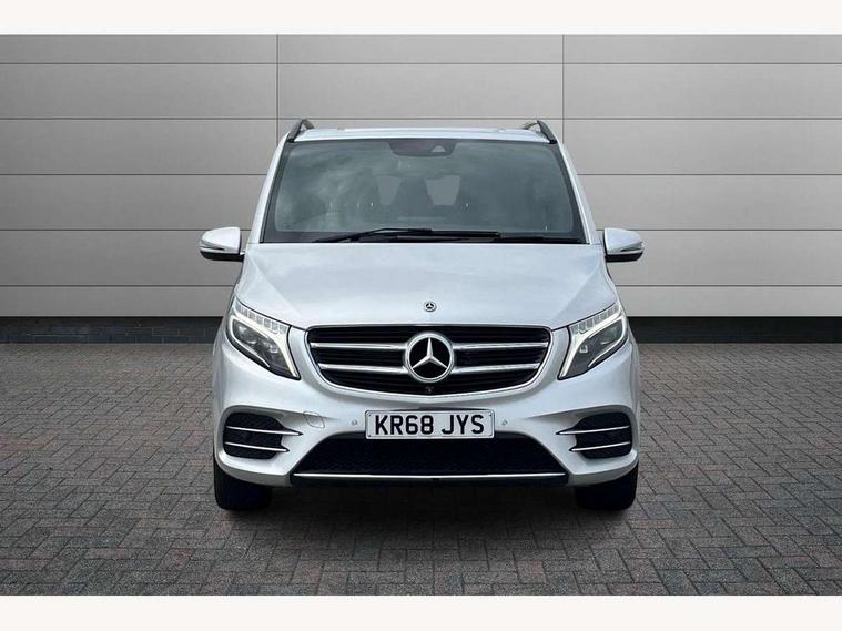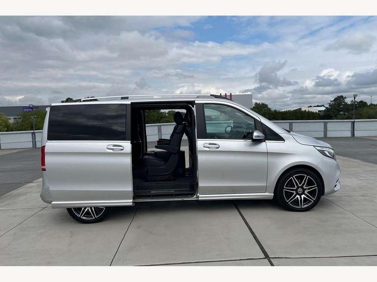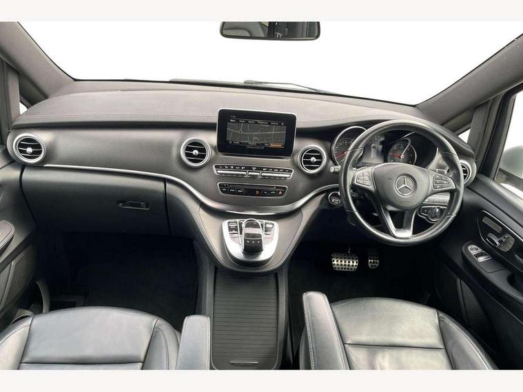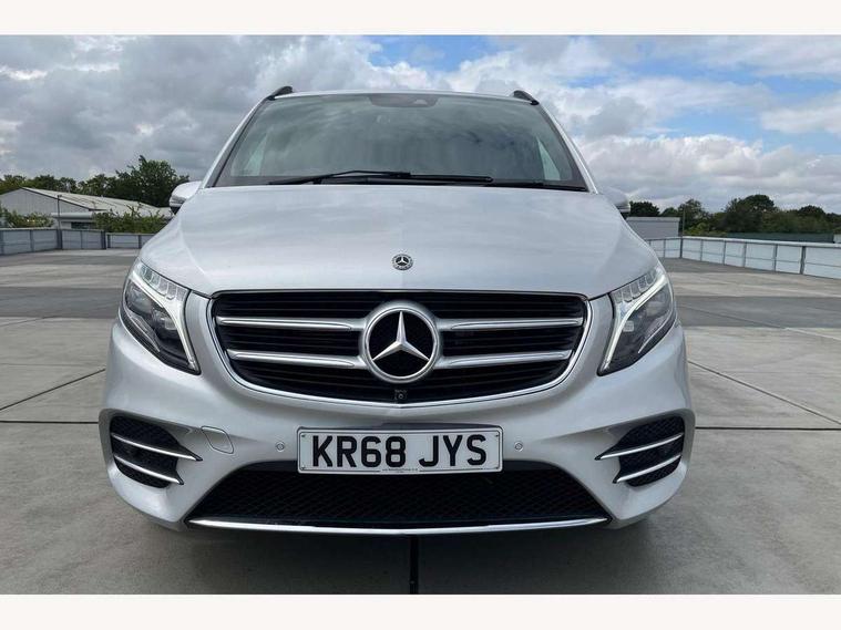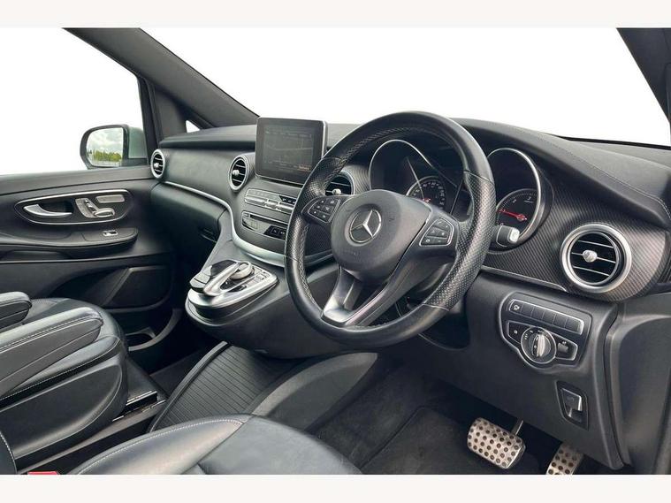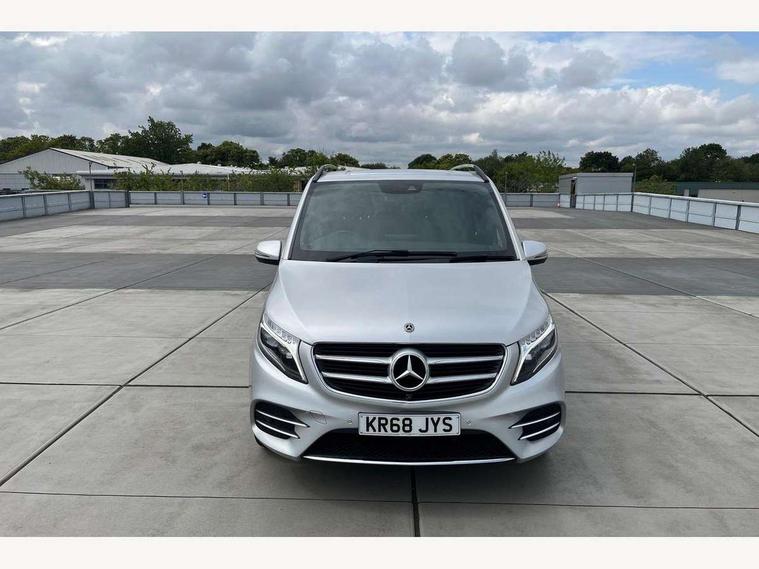 Active parking assist and reversing camera, Agility select with a choice of driving modes (Comfort, ECO, Sport, Individual), Attention assist, Brake wear warning display, Collision prevention assist, Easy-pack tailgate - Powered opening/closing automatically, ECO start/stop function, High resolution 7 inch multimedia colour display, Instrument cluster with 5.5 inch colour display trip computer, Mercedes me connect including emergency call system, accident recovery, breakdown and maintenance management, Outside temperature gauge, Service indicator (ASSYST), Side wind assist system, Speed sensitive steering, Status display for rear seat belts in instrument cluster, 25 litres large AdBlue tank, Agility control comfort suspension, Diesel particulate filter, Audio 20 CD with touch pad + media interface for iPod/iPhone + Bluetooth interface with handsfree function, DAB Digital radio, Integrated radio aerial, Two USB ports and one SD Card slot in centre console, Adaptive brake lights, AMG bodystyling front apron and rear spoiler, AMG bodystyling side skirts, Anodised roof rails, Automatic headlamp activation, Black tinted rear windows, Body colour bumpers, Body colour door mirrors, Chrome boot sill trim strip, Electric folding door mirrors + auto dimming rear view + drivers exterior door mirror, Electric front windows, one touch / obstruction sensor, Electric sliding door in both side, Heated door mirrors, Heated windscreen washers, Illuminated front door sill panels with Mercedes-Benz lettering, LED intelligent light system including integral LED daytime running lamps, LED tail lamps/brake lamps and indicators, Metallic paint, Privacy glass, Radiator grille with integral star and two louvres in matt iridium silver, Rain sensitive windscreen wipers, Rear spoiler, Split tailgate in opening rear window with chrome handle, Tailgate wash/wipe, 12V Accessory socket in centre console, 12V socket in boot/load compartment and rear passenger compartment, 2 Isofix seat anchors, 2nd/3rd row height adjustable head restraints, 3 colours ambient lighting, 3 spoke nappa leather steering wheel, Adjustable front seat head restraints, AMG sport pedals, Brushed stainless steel sports pedals with rubber studs, Carpet floor covering in passenger compartment, Driver + front passenger lumbar support, Driver/front passenger seat height adjustment, Electric air heater system - 1.2 kW output, Footwell lighting with reading light and illuminated handle in rear compartment, Front centre armrest, Height/reach adjustable steering column, Illuminated rear door handles, Load compartment divider with two folding boxes, Lockable glovebox, Luxury centre console with retractable cover + two cup holder + 12V socket + multimedia box, Multifunction steering wheel with audio controls and onboard settings, Nappa leather upholstery, Seat occupancy sensor for front passenger seat, Stowage nets behind individual seats, Sunvisors with illuminated vanity mirrors, Thermatic 3 zone automatic climate control, Three stage heated front seats, 7 Seat pack - V Class, Anti theft protection pack - V Class, 3 point seatbelts on all seats, Adaptive brake system with HOLD function and brake drying in the wet, Airbags - sidebag for driver and front passenger with combined thorax/pelvis bag, Airbags - windowbag for driver and front passenger, Anti-lock braking system (ABS), Child proof door locks, Electronic parking brake, Electronic Stability Programme, Hill start assist, Perforated front brake discs and brake calipers with Mercedes-Benz lettering, Rear seatbelt warning indicator, Tyre pressure monitoring system, Warning triangle and first aid kit, Central locking with interior switch, Chrome surround electric key, Carbon trim, Chrome air vent surrounds, Dashboard upper section in artico man-made leather, 19" AMG 7 twin spoke alloy wheels,