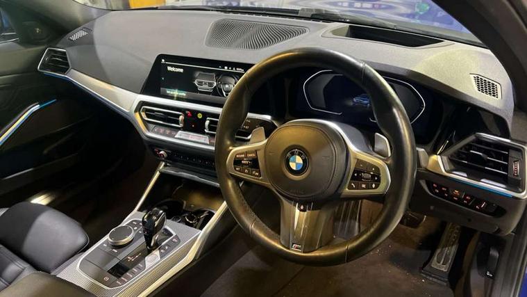 Active guard plus, Attentiveness assist, Auto start-stop, Bluetooth hands free facility with USB audio interface with audio streaming, BMW iDrive controller on centre console, BMW Live Cockpit Professional Nav with 12.3" instrument display + 10.25" display, Intelligent Voice Assist, BMW OS 7, HDD, 2USB, 4G LTE connect, BMW service history, BMW Teleservices, Brake pad wear indicator in front and rear, Check Control warning system for monitoring of lights and door/luggage compartment open warning, Condition based service, Cruise control with brake function + speed limiter, Electric power steering with Servotronic steering optimised at all speed ranges, Instrument cluster with speedometer with mph readout, tachometer, fuel gauge and oil temperature gauge, Integrated owners handbook, Oil sensor for level and grade, warning by check control system, On board computer - average speed+fuel consumption, service interval, clock/date, odometer/trip meter, outside temperature display and ice warning, Optimum shift indicator, Personal Profile - automatic lock when driving away selectable, Balanced 50/50 weight distribution, Battery cut-out switch, Charging cable - Mode 2, Drive performance control - ECO PRO, comfort and sport modes, Petrol Particulate Filter, Stroke dependent dampers, DAB tuner, Electronic service booklet, Stereo speaker system with 2 mid range speakers in the front door trims and rear parcel shelf + 2 central bass speakers underneath the front seats, Acoustic glazing, Active airstream chrome frame kidney grille with 8 high gloss black vertical slats, Automatic headlight beam throw control with load dependent regulating reaction, dynamic compensation of braking dive and acceleration squat, Black roof mouldings, Body colour door handles, Body colour front and rear bumpers, Body colour fuel filler flap, Body colour mirror caps with bottom segment in matt black, Dynamic brake lights, Electric windows - front and rear, with open/close fingertip control, anti-trap facility and comfort closing, Exhaust tailpipe - split left and right, Exterior mirrors - electrically folding with anti-dazzle, Fading support, Front and rear bumper system with replaceable deformation elements, Front black door sill finishers with BMW designation, Green tinted heat protection glazing, High gloss shadow line exterior trim, Interior rear view electrochromatic mirror with automatic anti dazzle function, LED daytime running lights, LED front fog lights, Lightweight engineering, M designation on front side panels, left and right, Matt black exterior B pillar, Model designation on right side of tailgate, Rain sensor with automatic headlight activation, Shark fin antenna, Two part LED tailights in L-shape with components in smoked glass, brake light, LED turn indicator and rear fog light, Visible VIN plate, Welcome lights in interior and door handle area, Windscreen wipers with integrated washing jets, 12V power socket in front storage compartment, 2 front cupholder in centre console with clamping elements and matt black inlay, 3 rear seats with non folding headrests with 3 point seat belts, 3 zone automatic air conditioning, 4 pieces lashing eyelets in luggage compartment, 40:20:40 split folding rear seat with loading system, Ambient lighting with welcome carpet light, Anthracite headlining, Armrest integrated in front and rear door trim + front centre console armrest, Backrest width adjustment, Centred top Luggage compartment lights, Four grab handles integrated in roof lining, Front and rear door exit lighting (left / right), Front and rear door pockets, Front and rear reading lights, Front and rear velour floor mats, Front head restraints, Front sport seats, Heated front seats, Height adjustable mechanically and infinitely variable steering column, Illuminated armrest storage compartment, Illuminated glove compartment with separate small compartment, Interior lighting - front centre over interior mirror with soft light, rear centre and front and rear footwell lighting, M sport leather steering wheel, Make-up mirror lights, Rear centre armrest with 2 cupholders, Rear centre console with storage compartment and ventilation grille, Sunvisors with vanity mirrors and ticket pocket, Toolkit located in luggage compartment, Connected pack professional - 3 Series Saloon/Touring, M sport exterior styling pack - 3 Series Saloon/Touring, 2 tone horn, BMW emergency call, Brake energy regeneration, Braking pre-tensioning, Child proof locking system in rear door, Child seat ISOFIX attachment rear outer seats, Coasting in idle in ECO PRO mode, Crash sensor activating of airbags, Unlocking doors, hazard warning lights, fuel cut off, interior lighting+activation of safety battery terminal clamp, Driver and front passenger side airbags, integrated in the door side seat backrest bolsters for all seat variants, Driver/Front Passenger airbags, Dry braking, Dynamic brake control, Dynamic stability control + (DSC+) - Anti-lock Braking System (ABS) with brake assist and cornering brake control + Automatic Stability Control (ASC), Dynamic Traction Control - DTC, Electric parking brake including automatic hold function and automatic release of the parking brake when driving off, Electronic differential lock control (EDLC), Front passenger manual airbag deactivation, Head airbags for all 4 outer seats, Hill start assist, Seat belt security check for driver and front passenger, Side impact protection, Three 3 point seat belts on all seats including front belt stopper, pyrotechnic belt tensioners and belt force limiters, Tyre pressure monitoring with three level warning strategy, Ventilated front and rear disc brakes, Warning triangle and first aid kit, Alarm system (Thatcham 1) with remote control and electronic engine immobiliser, Central locking switch for all doors, fuel filler cap and luggage compartment, Remote control with integrated key one button open/close vehicle and windows, sole opening of the luggage compartment lid and panic mo