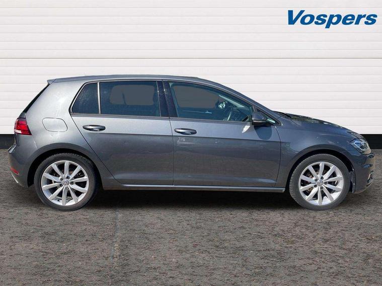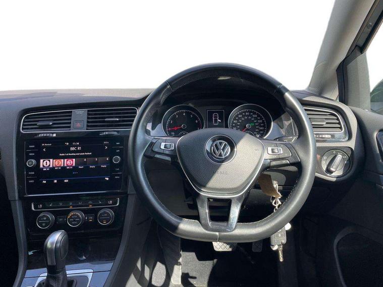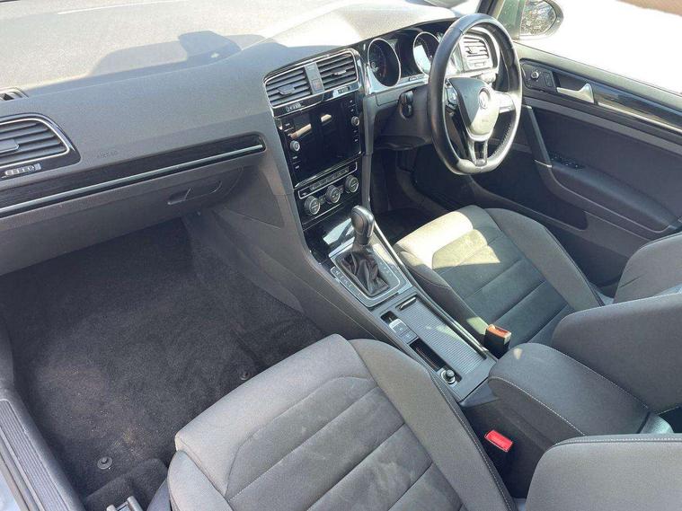 'Lights On' Reminder warning buzzer, ACC - Adaptive cruise control with front assist, forward collision warning, distance monitoring, city emergency brake and speed limiter, Bluetooth telephone and audio connection for compatible devices, Brake pad wear indicator warning light, Driver alert system, Driving Mode Selection with four preset modes - Eco, normal, sport or individual modes, Multifunction computer with visual gear change recommendation for fuel consumption, Power assisted speed sensitive electro-mechanical steering, Push tank flap, Speed limit display, Speedo, rev counter, electronic odometer, trip, service interval display, exterior temperature and fuel gauge, Stop/start system, Think blue trainer driver tips and journey analysis, Warning buzzer and light for front seatbelts unfastened, Battery regeneration during braking, XDS electronic differential lock, Composition media system, DAB Digital radio receiver, Driver Personalisation profile selection, MP3/WMA compatability, Multi device interface (MDI) via USB connection, Premium USB cable in choice of either Apple or Android smartphone compatibility, SMS Functionality, Title and cover art display, USB and SD card connectivity, Volkswagen media control, Black front air intake and radiator grille with chrome insert, Black rear diffuser, Body colour bumpers, Body colour door handles, Body colour door mirrors with integrated indicators, Chrome trimmed front air intake surrounds, Dusk sensor + automatic driving lights, Electric front windows, Electric rear windows, Electrically adjustable and heated door mirrors, Fully galvanised body, Heated rear windscreen, High level 3rd brake light incorporating LED Technology, LED front fog lights with static cornering light function, Range adjustable headlights via infotainment system with LED daytime running lights, Rear fog lamp, Rear number plate lights incorporating LED technology, Rear tinted glass 65% light absorbing from B pillar backwards, Rear window aerial, Rear window wash/wipe with intermittent wipe, Reflectors in all doors, Tailgate with integrated rear roof spoiler, Windscreen wipers/ intermittent wipe + 4 position delay, 12V socket in luggage compartment, 3 rear headrests, 4 load lashing points in luggage compartment, 60/40 split folding rear seat backrest, Bag hook in luggage compartment x 2, Climate control - 2 zone electronic air conditioning with automatic air recirculation and allergy filter, Cooled glovebox, Cover for storage compartment in centre, Dust/pollen filter, Front + rear carpet mats, Front centre armrest with storage compartment and two rear air vents, Front seat back storage pockets, Grab handles front x 2, rear x 2 with integrated coat hooks, Height and reach adjustable steering wheel, Illuminated vanity mirrors, Instrument lighting white adjustable panel illumination, Interior light delay, Isofix preparation for 2 rear child seats, Load through provision with rear centre armrest and cupholders x2, Luggage compartment lighting, Overhead storage box, Pearl grey headlining, Storage box in luggage compartment, Storage compartment in roof console with cover, Storage compartments in centre console, Storage compartments in front doors, Storage compartments in rear doors, Stowable luggage compartment cover, Sun visors, Variable boot floor, height adjustable and removable, Ambient lighting pack - Golf, Convenience Pack - Golf, Mirror pack - Golf, Winter pack - Golf, 3 rear three point seatbelts, Airbags - Driver's and front passenger's, curtain airbag, Driver's knee, front side impact and passenger's airbag deactivation switch, Anti-lock Braking System (ABS) with Hydraulic Brake Assist (HBA), Automatic post collision braking system, Child locks on rear doors, Driver/Passenger optimised head restraints, Electronic parking brake with auto hold, Electronic stability control (ESC) including Electronic differential lock (EDL) and ASR (Traction control) with deactivation via infotainment system, Front ventilated disc brakes and rear disc brakes, Pre crash preventive occupant protection, Three point height adjustable front seatbelts with tensioners, Tyre pressure loss indicator, Alarm with interior protection and deactivation via infotainment system, Electronic engine immobiliser, Chrome plated air vent surround, Chrome plated electric mirror adjustment switch surround, Chrome-plated light switch surround, Piano black decorative inserts in centre console, Tumbler decorative inserts, Steel space saver spare wheel,