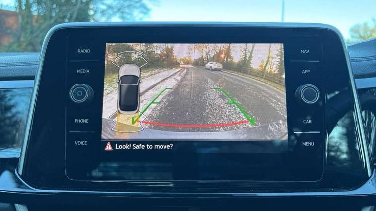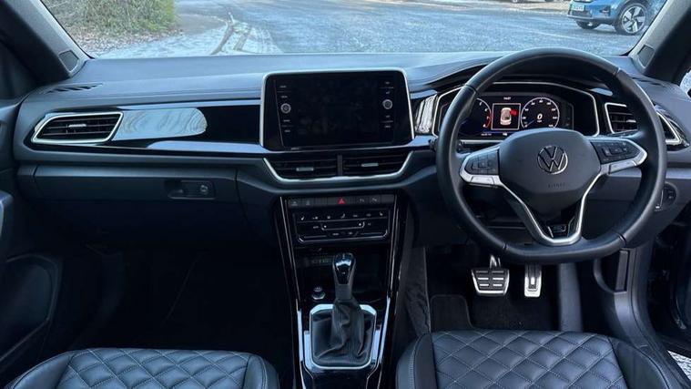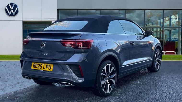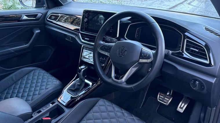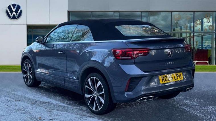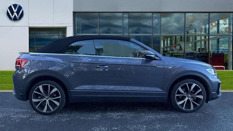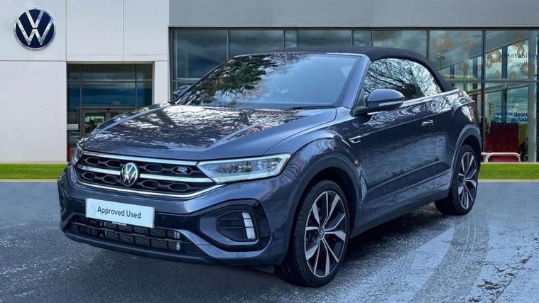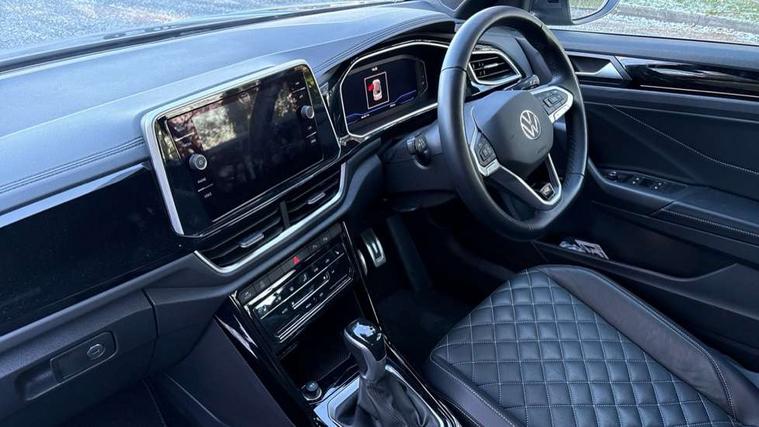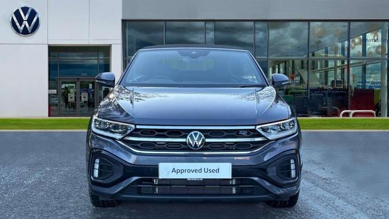 Adaptive cruise control and speed limiter, Advanced driver attention and drowsiness monitor, Brake pad wear indicator, Car information display, Digital Cockpit Pro with 10.25" Display, Driver tips and journey analysis, Dynamic road sign display, Emergency call service, Modified key software - reduce switch off time for key status change to Long no motion, Multifunction computer with visual gear change recommendation for fuel consumption, Multifunction front facing camera, Online services, Park assist including front and rear parking sensors, Speedo and rev counter, electronic odometer, trip, service interval display and exterior temperature gauge, Start/stop system with brake energy recovery, Tailgate/trunk lid release from outside, Warning sound and light for front seatbelts unfastened, Wireless App-Connect for apple Carplay and android Auto, Digital radio reception (DAB), Diversity antenna for FM reception, Mobile phone interface with inductive charging feature, Music playback - MP3, WMA and AAC files, SMS functionality - read, compose and send SMS messages using touch-screen display, Title and cover art display, USB-C Interface and USB charging socket, We Connect and We Connect Plus functionality, Ambient lighting with logo projection, Auto dimming interior rear view mirror, Automatic hazard lights activation under emergency braking, Automatic headlight control with LED separate daytime running lights with coming/leaving home function, Black roof, Body colour door handles, Body colour rear boot spoiler, Chrome effect left and right trapezoid exhaust tailpipe fascia surround, Chrome trim on upper and lower radiator grille, Dark red rear combination lamps in LED technology, Dusk sensor, Exterior mirrors aspherical on driver side, convex on front passenger side, Heat insulating glass windscreen, LED 3rd brake light, LED rear number plate lights, Power operated canvas convertible top, Power windows with comfort operation and circuit breaker, R-Line design body coloured bumpers, Rain sensor, Rear boot, Rear exhaust tailpipe, Rear fog light on one side and reversing lights on both sides, Remote electrically foldable door mirrors, puddle lights and reverse activated passenger door mirror, Volkswagen roundel, Windscreen wiper with intermittent wipe light, Without exterior ambient lighting, 12V socket in centre console storage area, 2 LED front reading lights, 2 seat bench in 2nd row, 50:50 Split folding rear seat backrests with fixed rear seat bench, Air care climatronic air conditoning system with active combination filter and 2-zone temperature control, Black door lower parts with chrome trim, Chrome plated surround to light, mirror and window switch, Door and side trim panel with leatherette insert, Easy entry backrest release, Front and rear carpet mats with black stitching, Front centre armrest, Front cupholders x 2, Front door pockets, Front seat back storage pockets, Front sports comfort seats with manual height adjustment, Heated leather wrapped multi function sports steering wheel with tiptronic, Height/reach adjust steering wheel, Inserts of front seats and outer rear seats in ArtVelours titan black, Instrument lighting, white adjustable panel illumination, Interior light delay, Interior light in footwell, Interior lighting with switch off delay and contact switches on all doors, Interior white ambient lighting and surround lighting, Isofix child seat preparation, Lockable glove compartment with light, Luggage compartment lighting, Power adjustable lumbar support in front, Rear head restraints, Single front passenger seat, Stainless steel pedals, Sun visors with illuminated vanity mirrors, Unique R Line door sill protectors, Driver assistance pack without proactive passenger protection - T-Roc Cabriolet DSG, 2 x 3-point seatbelts/outer rear seats with ECE label, Driver and front passenger airbag with front passenger airbag deactivation, Driver and front passenger safety-optimised head restraints, Drivers seatbelt reminder, Electronic parking brake, Electronic Stability Control (ESC) including ABS, ASR and EDL, Front and rear disc brakes, Front assist with autonomous emergency braking, Pedestrian monitoring, Predictive pedestrian protection, Rigid safety cell with front and rear crumple zones, Side airbag/thorax airbag system, for front passengers, Three point height adjust front seatbelts + pretensioners, Two tone horn, Tyre pressure loss indicator, Volkswagen roadside assistance, Anti-theft alarm system with interior protection and central locking system with SAFELOCK, radio remote control and 2 remote control folding keys, Electronic engine immobiliser, Trims for alloy wheels,