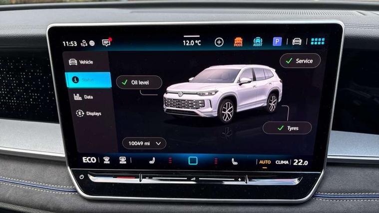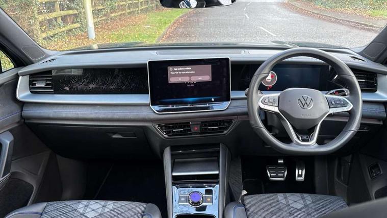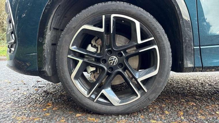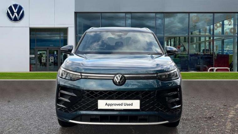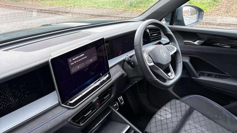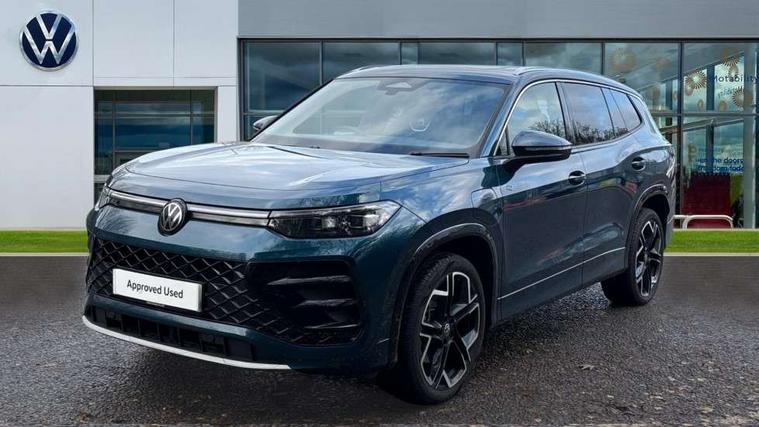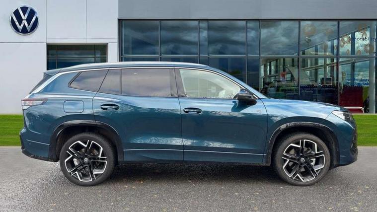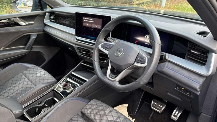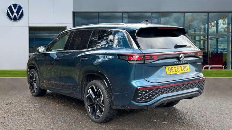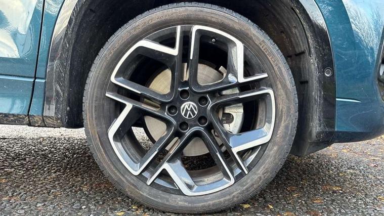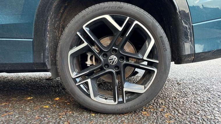 Adaptive cruise control (ACC), Digital Cockpit Pro - 10.25" high resolution dash display screen with customisable menus and information, Driver alert system, Driver attention monitoring system, Dynamic road sign display, E-Sim card for online connectivity, eCall emergency call system, Lane change system, Side assist, Rear traffic alert and Exit warning system, Multifunction front facing camera, Oncoming vehicle braking when turning including swerve support, Progressive steering, Start/stop system with regenerative braking, Voice activation spoken voice commands for telephone and navigation system, Warning signal and warning light for front and rear seatbelts not fastened, Wireless App-Connect, Adaptive chassis control DCC pro includes driving mode selection, Charging cable Mode 2 Type 2 / G (10A), Charging cable Mode 3 Type 2 / 3 (16A), Front shock absorption G08, Front wheel drive, Rear shock absorption, Digital radio reception (DAB), Diversity antenna for FM reception, Air intake with Chrome trim, Auto dimming interior rear view mirror, Automatic headlight control system, Body colour door handles, Chrome moldings on the side windows, Coming/leaving home lighting function, Dynamic headlight range control with dynamic cornering light, Exterior mirrors convex on the left and aspherical on the right, Heat insulating glass in side and rear windows, Illuminated Volkswagen logo rear with animation, Laminated safety glass from B-pillar backwards 90% tinted, Laminated safety glass winshield, heat insulating, LED 3rd brake light, LED separate signature day time running light, Puddle lights, Rain sensor windscreen wipers, Rear fog light on one side, reversing light on both sides, Rear side wing doors, Rear wiper, Reverse activated passenger's door mirror, Surround lighting with welcome light, Tilting and sliding panoramic sunroof with rear panoramic sunroof, Volkswagen logo in front, illuminated lighting animation with wake up/goodbye scenario and illuminated door handles, 12V socket in centre console, 3 rear headrests, 3 rear seat bench in 2nd row, split folding, longitudinally movable and folding with load-through hatch, Black roof lining, Brushed stainless steel pedals, Carpet mats, front and rear, Centre console with illuminated storage compartment with sliding cover and two drinks holders, Chrome elements on the mirror switch and power window switches and door pulls, Door and side trim panel insert in Art velour, Flat luggage compartment floor, Front centre armrest, Front scuff plates in alumium, Interior ambient lighting with 30 colour options, ISOFIX anchors for child seats on outer rear seats and front passenger seat compatible with i-Size, Mechanical rear seat release, Power adjustable lumbar support in front, Single front passenger seat, Sports comfort seats in front, Sun visors with illuminated vanity mirrors, Comfort package with park assist pro - Tayron, 3 Point seat belts in front with pretensioners, 3 point seatbelts in outer rear with ECE label, Autonomous emergency braking front assist with pedestrian and cyclist monitoring, Driver and front passenger airbag with front passenger airbag deactivation, Electronic parking brake with auto hold, First aid kit with warning triangle and safety vest, Front and rear curtain airbags, Front and rear side airbags, Front centre airbag, Front disc brakes, Hill start assist, Rear disc brakes, Two tone horn, Decorative material set R-Line, Interior door handle in matte chrome, Tool kit for tyre mobility set, Tyre mobility kit including compressor and sealing foam. In lieu of spare wheel,