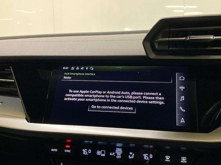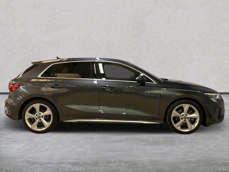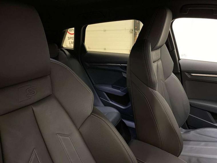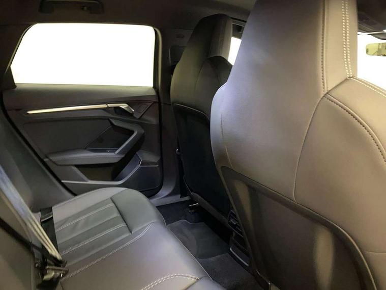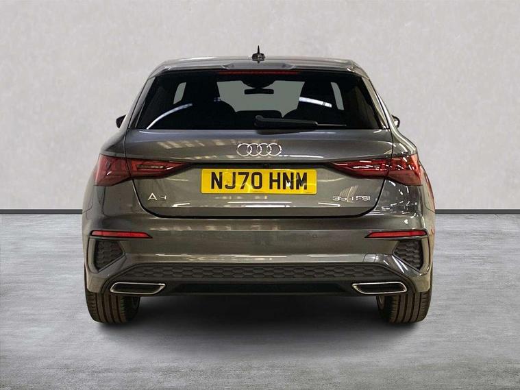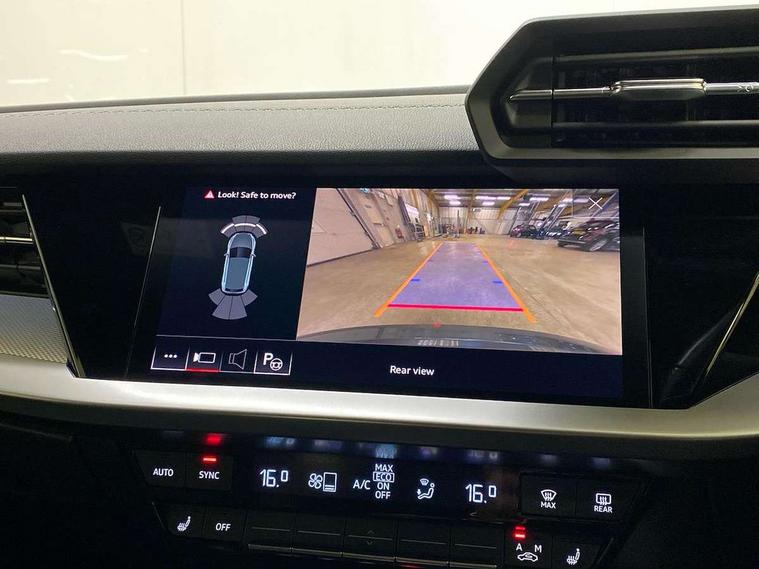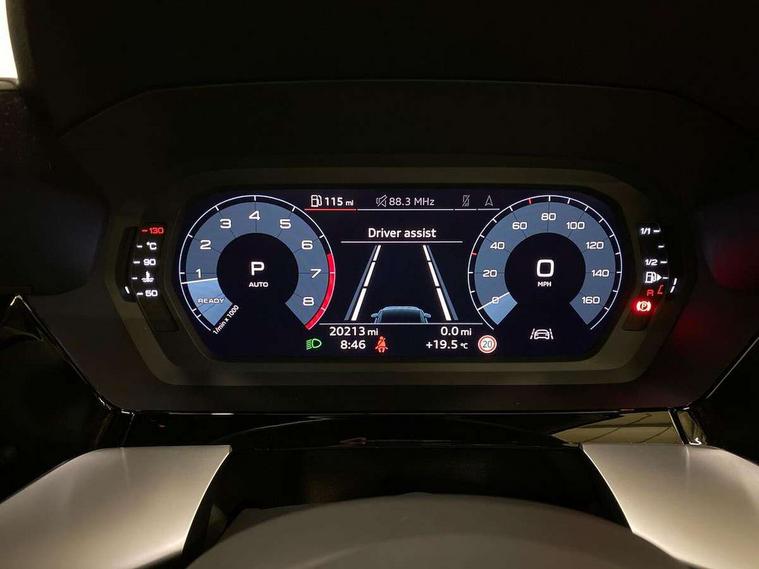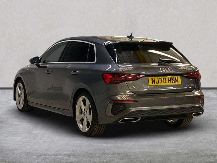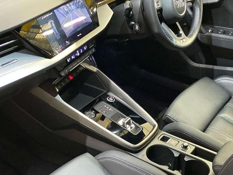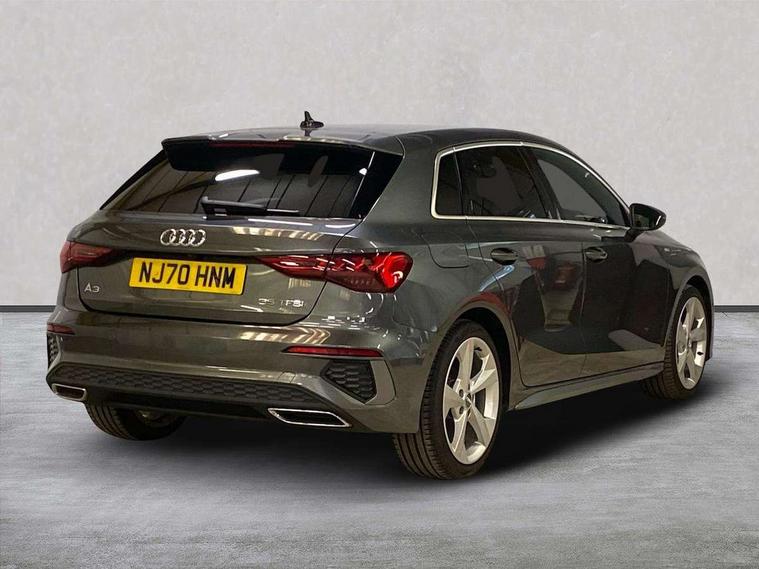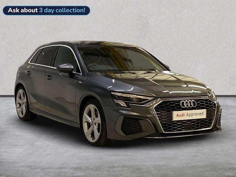 Audi connect emergency call and service, Audi drive select (Auto, Comfort, Dynamic, Efficiency and Individual), Audi smartphone interface, Audi Virtual Cockpit - 10.25" digital and colour instrument cluster, Automatic start/stop system with recuperation, Bluetooth interface, Collision avoidance assistant, Electromechanical power speed sensitive steering, Lane departure warning system, MMI Navigation Plus with high resolution 10.1" colour touch screen display, Service indicator, Trip computer, Voice control system with natural language interaction, 1xUSB-A and 1xUSB-C connection, 6 passive loudspeakers, DAB Digital radio, Acoustic glass windscreen, Aluminium window trim, Auto dimming frameless rear view mirror, Body colour exterior mirrors, Electrically adjustable/heated/folding/dimming door mirrors with kerb view includes integrated LED indications + kerb view function for passenger side, Front electric windows, Illuminated aluminium inserts front door sills with S logo, LED daytime running lights, Light and rain sensors, Privacy glass - dark tinted rear window, rear door and side windows, Rear electric windows, Rear side air outlets in grained matt black, Rear wiper, S line bumpers, S roof spoiler, 12V socket and storage compartment in front centre console, 40/20/40 split folding rear seat bench with cupholder, Black cloth headlining, Dual zone electronic climate control, Front and rear centre armrest in leather, Front and rear headrests, Front/rear floor mats, Height and reach adjustable steering wheel, Interior lighting - glove compartment light and right hand side, Luggage compartment floor covering, Manual boot compartment lid, Manually adjustable front seats, Seat side bolsters, Stainless steel pedals and front footrest, Twin leather upholstery with front sports seats S embossed logo, Aluminium interior elements pack - A3 Sportback, S line styling pack - A3 Sportback, 3x3 point rear seat belts, Driver and front passenger airbag with passenger airbag deactivation, Electronic Stabilisation Control (ESC) including ABS, ASR and EDL, First aid kit with warning triangle and 2 safety vests, Hill hold assist, Pre-sense front with pedestrian and cyclist detection, Seatbelt monitoring, Tyre pressure loss indicator, Anti theft alarm, Anti-theft wheel bolts, Electronically operated child lock, Immobiliser, Remote control central locking, Accent surfaces in the dashboard and centre console in platinum grey silk effect paint finish, Dark spectrum aluminium inlays,