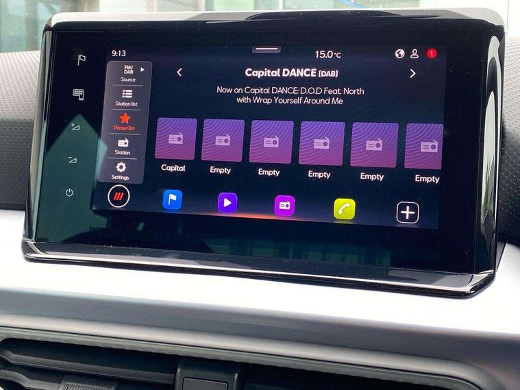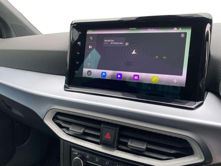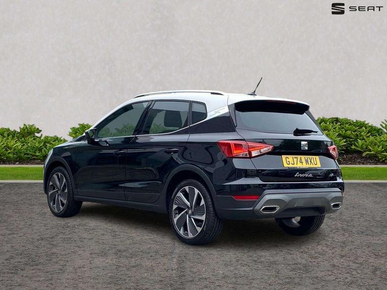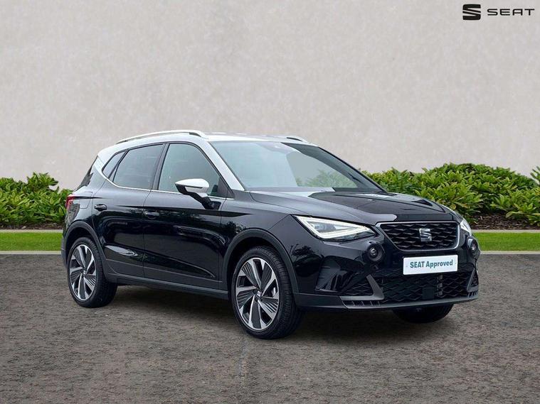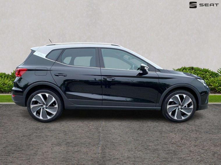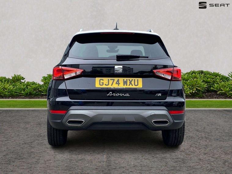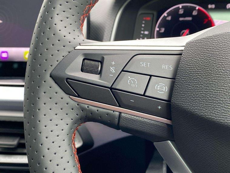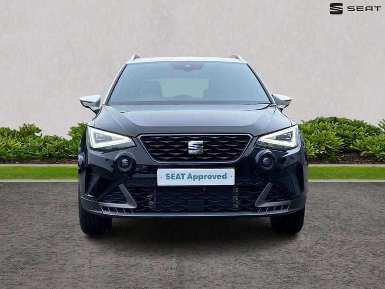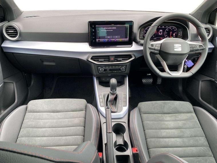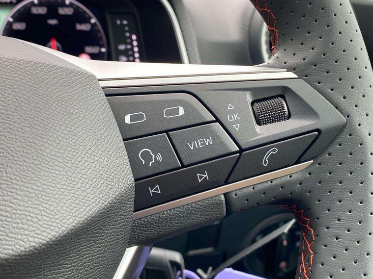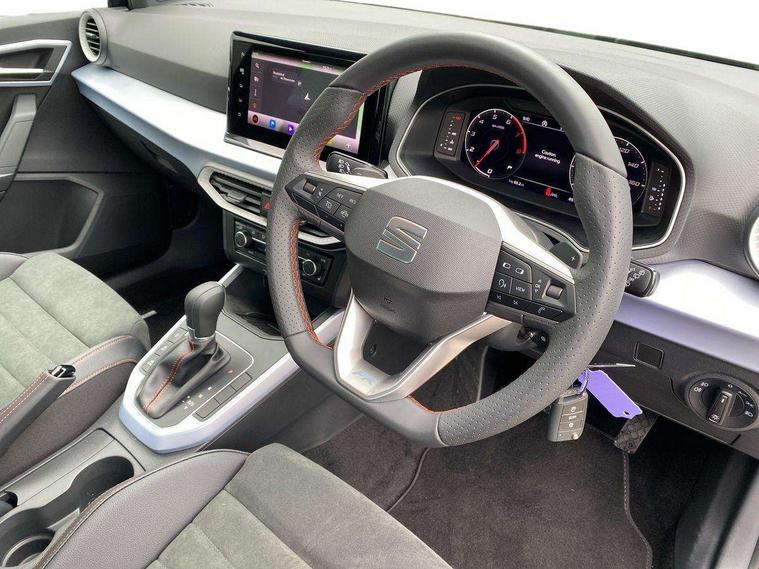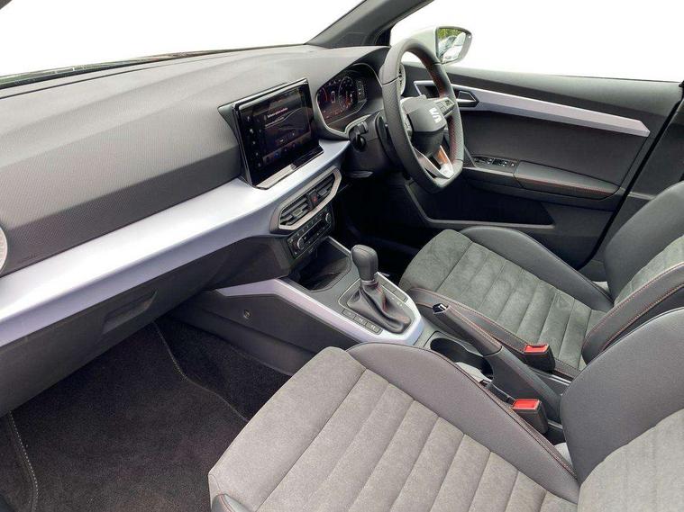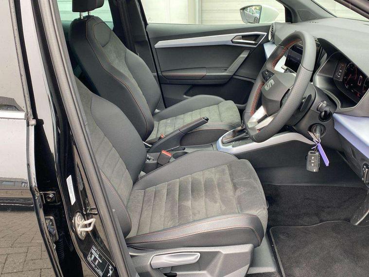 'Lights On' Reminder warning buzzer, 10" Digital cockpit, Digital clock, E-call, Electric speed sensitive power steering, Full link smartphone integration with mirror link, wireless apple carplay, Google android auto + USB Type C cable for apple and android devices, Lane keeping system, Low fuel warning light, Outside temperature display, RPM counter, SEAT Drive profile - Four different models normal-sport-eco-individual, steering response, throttle response and gear shifts mode, Trip computer, Wireless phone charger, 6 speakers, 9.2" colour touchscreen with navigation system, voice control and USB port (type c), Bluetooth interface for hands free and audio streaming, DAB digital radio and AM/FM radio, Steering wheel mounted audio controls, Anti theft roof antenna, Auto dimming interior rear view mirror, Automatic activation of hazard warning lights, Body coloured bumpers, Body coloured door handle inserts, Chrome roof rails and window surrounds, Dark tinted rear windows, Electric front/rear windows, Electrically adjustable, heated and folding door mirrors, Front fog lights with cornering function and rear fog light, FULL LED automatic headlights with dynamic headlight range control, coming and leaving home, LED daytime running lights, LED rear tail lights and licence plate lights, Protective side mouldings, Rain sensing wipers, Rear side wing doors, Rear spoiler, Rear window wash/wipe, Roof colour door mirrors, Third brake light, Twin exhaust pipe styling hidden exhaust pipe, Visible VIN plate, 2 cupholders, 3 seat bench in 2nd row, 60/40 split folding rear seat, Aircare filter, Black interior roof, Double boot floor, Driver sunvisor with covered mirror + card holder, Dual zone climate control, Front comfort seats, Front courtesy light with front reading lights, Front seat back storage pockets, Gear shift indicator, Heated front seats, Height adjustable front seats, Height/reach adjustable steering column, Illuminated air vent surrounds, Illuminated boot, Instrument lighting with brightness control, Interior ambient lighting, Interior light in footwell, central console and door panel, ISOFIX points in outer rear seats with top tether anchorage points, Microsuede cloth upholstery, Passenger sunvisor with vanity mirror, Perforated flat bottomed leather steering wheel/gear knob/handbrake with red stitching and FR logo, Potentiometer, Single front passenger seat, Steering wheel mounted gearshift paddles, Two front and three rear height adjustable headrests, Interior chrome pack - Arona, Safe and driving pack (S) - Arona, 3 point seatbelts on all rear seats, ABS, Active front headrests, Child locks on rear doors, Driver and front passenger airbags with front passenger airbag de activation, front side and curtain airbags, Emergency Brake Assist (EBA) and front assist, Front and rear seatbelt reminder, Hill hold control, Multi-Collision braking, Tiredness recognition system, Traction control, Tyre pressure monitoring system, Alarm with back up horn with tow away protection, Deadlock, Electronic engine immobiliser, Locking wheel bolts, Remote central locking, Titan black dashboard, 18" Performance Cosmo grey matt alloy wheels,