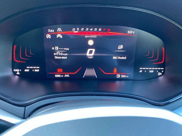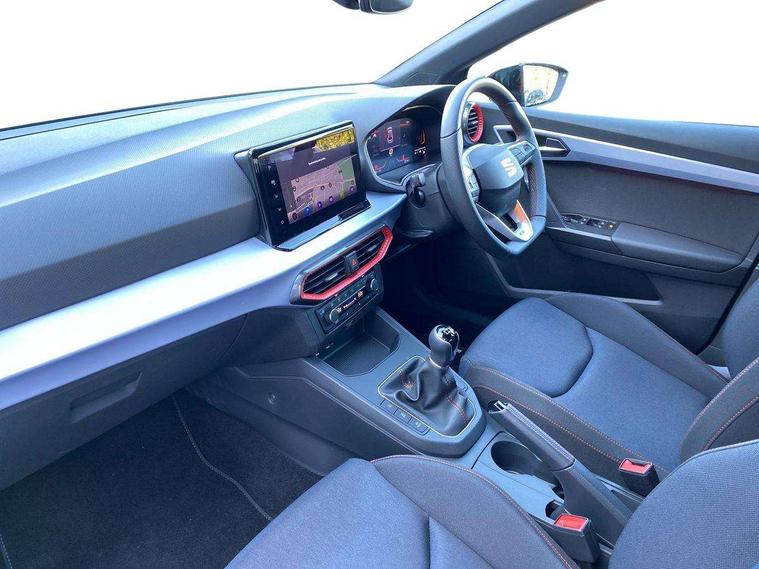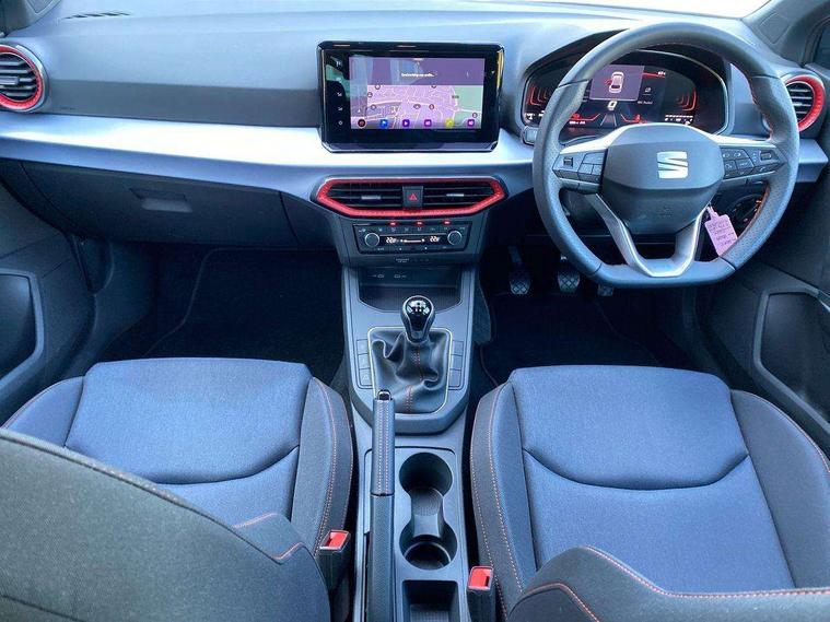 'Lights On' Reminder warning buzzer, 8" Digital cockpit, 9.2" touchscreen navigation system with type C USB socket, Voice control and DAB/AM/FM radio, Auto start and stop system, Bluetooth audio streaming with handsfree system, Digital clock, E-call, Full link smartphone integration with mirror link, wireless apple carplay, Google android auto + USB Type C cable for apple and android devices, Lane assist, Low fuel warning light, Outside temperature gauge, Power Steering, Rear parking sensor, Seat connect plus with safety, service, remote and online, SEAT drive profiles and ECO function, SEAT logo boot release, Speed limiter, Traffic sign recognition, Trip computer, Sports suspension, 6 speakers, Auxiliary input socket, Radio/MP3 player, SD card slot, Steering wheel mounted controls, Anti theft roof antenna, Auto dimming rear view mirror, Automatic rain sensing wipers, Black door mirror caps, Body colour bumpers, Body colour door handles, Brilliant black window surrounds, Dark tinted rear windows, Electric adjustable/heated/folding door mirrors, Electric front windows, Electric headlight adjustment, Electric rear windows, Front/rear fog lights, FULL LED automatic headlights with dynamic headlight range control, coming and leaving home, LED daytime running lights, LED 3rd brake light, LED tail lights, Rear roof spoiler with FR twin exhausts, Rear side wing doors, Rear wiper, 3 seat bench in 2nd row, 60/40 split folding rear seat, Ambient interior lighting, Chrome detailing and black headlining, Cloth upholstery, Dual zone climate control with combination filter, Front courtesy lights, Front cupholders x 2, Front reading lights, Gear shift indicator, Glovebox, Height adjustable front and rear headrests (five), Height adjustable front seats, Height/reach adjust steering wheel, Illuminated air vent surrounds, Illuminated boot, Instrument lighting with brightness control, Isofix, Leather multifunction flat bottomed sports steering wheel, Passenger sunvisor, Single front passenger seat, Sports seats, Sunvisors with mirror and driver side card holder, Safety and driving pack (S) - Ibiza, 3 point seatbelts on all 3 rear seats, ABS, Active front headrests, Child locks on rear doors, Electronic stability control, Energy recovery system, Front driver and passenger side airbags with curtain airbag and front passenger airbag deactivation, Hill hold control, Multi-Collision braking, Seat belt reminder for front and rear seats, Tiredness recognition system, Tyre pressure monitoring system, Locking wheel bolts, Perimeter alarm and interior monitoring with backup horn and tow away protection, Remote central locking + deadlocks, 17" Alloy wheels in Brilliant silver,