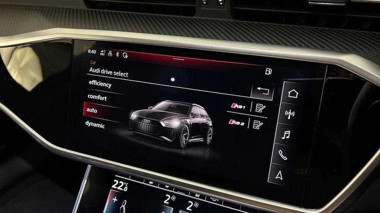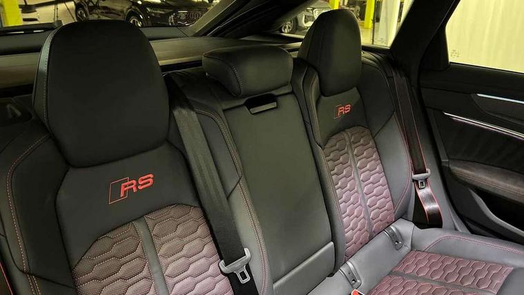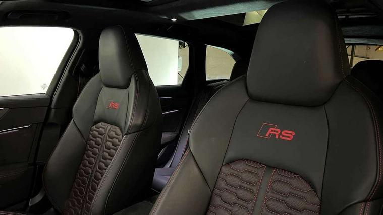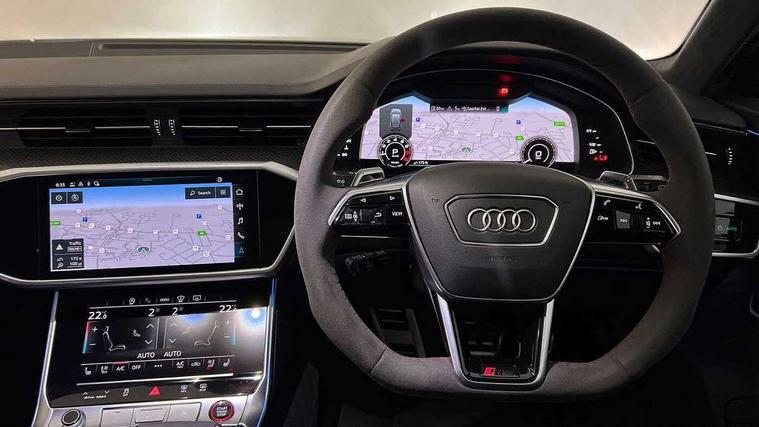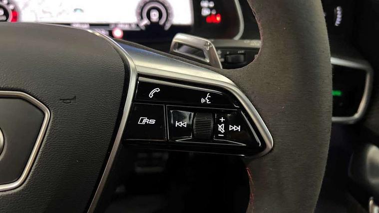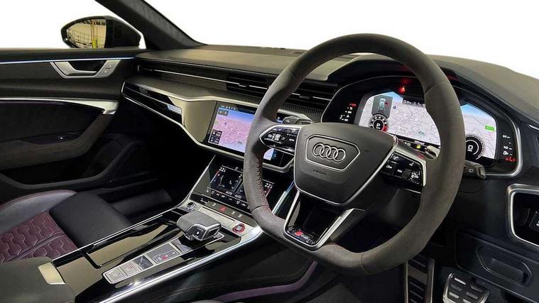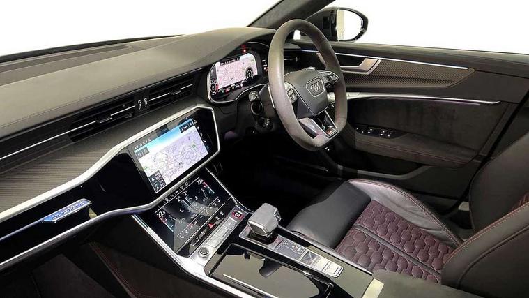 Audi connect safety and service (e-call), Audi connect with Amazon Alexa Integration, Audi drive select with 2 configurable RS modes, Audi virtual cockpit plus with RS specific design and 12.3" display with additional graphic display options, Automatic start/stop system, Bluetooth interface, Dynamic all wheel steering, Head up Display, Lane departure warning system, MMI navigation with MMI touch + twin touch screens 10.1" and 8.6" with haptic and acoustic feedback, Night vision assistant, Operating buttons in black, glass look with haptic feedback including extended aluminium look, Power door closure, Power operated tailgate, Service interval indicator, Smartphone interface includes wireless Apple carplay/Android Auto, Surround view camera system, Voice control system, 48V Mild hybrid technology, 73 litre fuel tank, Quattro sports differential, RS Sports suspension plus with dynamic ride control, 2 USB-C ports with charging functionality in the rear, Audi music interface, Bang & Olufsen 3D Premium Sound System, DAB Digital radio, 3rd brake light, Adaptive windscreen wipers with integrated washer jets, Black window trims, Electric front/rear windows, Electrically adjustable, heated and folding door mirrors with integrated LED indicators and kerb view function for passenger side, Frameless auto dimming interior rear view mirror, HD Matrix LED headlights with Audi laser light with dynamic light design and dynamic turn signal, Headlight washers, Heat insulating darkened glass in side and rear windows, LED daytime running lights, LED rear combination lamps with dynamic light design and dynamic turn signal, Panoramic glass sunroof, Privacy glass with rear/side windows and acoustic glazing side windows, Radiator grille in honeycomb structure, large front air inlets and rear diffuser in gloss black, Rain and light sensors, Rear side wing doors, Rear wiper, RS front bumper with air inlets on both side, RS rear spoiler in body colour, RS sports exhaust system with high gloss black oval tailpipe trims, 3 seat bench in 2nd row, 4 way electric lumbar support for driver and front passenger, 4 zone deluxe automatic climate control, Electric steering wheel adjustment, Electrically adjustable front seats with driver memory, Entry LED with RS Performance projection (Audi Beam) in front and rear, Front and rear headrests, Front centre armrest, Front seat ventilation, Heated front and rear seats, Illuminated front and rear door sill trims with aluminium inlays and RS6 logo, ISOFIX and Top Tether child seat mounting for the outer rear seats, ISOFIX child seat mounting and Top Tether with front passenger airbag deactivation, RS sports seat plus, Single passenger seat, Stainless steel pedals and foot rest, Valcona leather upholstery with perforated honeycomb and coloured RS logo, Air quality pack - RS6, Ambient lighting pack plus - RS6, City assist pack - RS6 Performance/carbon/vorsprung, Park assist pack with park assist plus - RS6, Storage pack - RS6, Tour pack - RS6 Performance/carbon/vorsprung, 3 point rear seatbelts, Airbags - Front side, front and rear including head, Direct tyre pressure monitoring system, EBD - Electronic brakeforce distribution, Electromechanical parking brake, Electronic Stability Control (ESC) including ABS, ASR and EDL, Extended pedestrian protection measures, Manual child lock in rear doors, Rear side airbags, Warning triangle and first aid kit, Anti theft alarm with tow away protection, Immobiliser, Keyless Go, Remote central locking, Tyre repair kit,