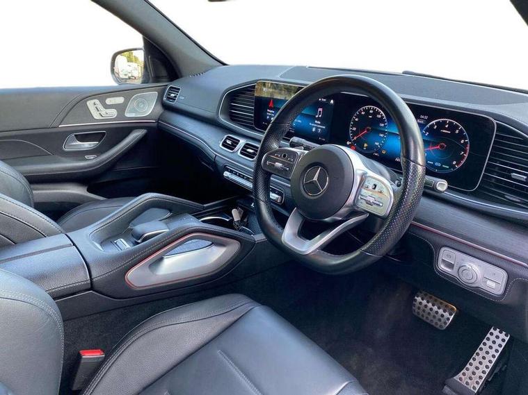 12.3 High resolution wide screen cockpit display with choice of three display styles Classic, Progressive or Sport and unique ambient lighting setting, Attention assist, Blind spot assist, Brake wear warning display, Cruise control with variable speed limiter, Direct steer speed sensitive steering, DYNAMIC SELECT with a choice of driving modes (ECO, Comfort, Sport and Individual), Easy-pack tailgate - Powered opening/closing automatically, ECO start/stop function, Geofencing, Hard-disk navigation, Hey Mercedes Voice activation, High resolution 12.3" multimedia colour display, Mercedes me connect including emergency call system, accident recovery, breakdown and maintenance management, Outside temperature display, Remote boot release, Service indicator (ASSYST), Smartphone integration, Status display for rear seat belts in instrument cluster, Traffic Sign Assist, Traffic sign recognition including wrong way warning function and display of posted speed limits in the instrument cluster, Trip computer in multifunction display showing current fuel consumption, Wireless charging, 85 litre fuel tank, 9G TRONIC 9 speed automatic transmission, Airmatic air suspension, Mild Hybrid starter alternator, Petrol Particulate Filter (PPF), Additional USB connection, Burmester surround sound system, DAB Digital radio, Dual bluetooth interface, 2 USB ports (type C), MBUX multimedia system, 3rd brake light, Adaptive brake lights, Adaptive high beam assist, Aerial for GPS, Aluminium look, illuminated running boards with rubber studs, AMG bodystyling front and rear aprons and side skirts in polished aluminium, Body colour door mirrors, Body coloured bumpers, Daytime running lights, Electric windows with one touch opening/closing and obstruction sensors, Exterior mirrors heated and electronically adjustable, Front green tinted glass, LED high performance headlamps, LED rear lights, Panoramic sunroof, Privacy glass - heat insulating dark tinted glass, Radiator grille with integrated star and single louvre in matt iridium silver with chrome trim, Radio aerial integrated into rear window, Rain sensing windscreen wipers, Rear side wing doors, Rear wiper, Roof rail system, Top surround of side windows in polished aluminium, Visible twin pipe exhaust system integrated into bumper, Waistline in polished aluminium, 3 spoke AMG multifunction steering wheel with touch control buttons, trimmed in black nappa leather with flattened bottom section, 3rd row of seats for 2 people, 4 way adjustable front head restraints and 2 way rear head restraints, 4 way lumbar support, 40:20:40 split folding rear seats, AMG brushed stainless steel sports pedals with rubber studs, AMG floor mats with AMG lettering, Artico man-made leather upper dashboard with contrast topstitching, Automatic child seat recognition sensor, Black roof liner, Central stowage compartment with 12 V socket in centre console, Chrome door pins, Courtesy lights in rear grab handles with reading light functionality, Electric height/reach adjustable steering column, Electronically adjustable second row three seats adjustments, Front centre armrest with stowage compartment and illuminated grab handles, Gearshift paddles on steering wheel, Glove compartment - lockable, air conditioned and illuminated, Heated front seats, Interior lighting - 64 colour Ambient lighting, Seat occupancy sensor for front passenger seat, Second row three seats, Single front passenger seat, Sports steering wheel, Sunvisors with illuminated vanity mirrors, Thermotronic automatic 4 zone climate control, Touchpad, Anti theft Protection package - GLE, Driving assistance pack - GLE Premium Plus/GLE 53, Interior chrome package - GLE, Keyless go comfort package - GLE, Memory package - GLE, Mirror package - GLE, Parking package with 360 camera - GLE, Active bonnet, Adaptive brake system with HOLD function and brake drying in the wet, Airbags - driver and front passenger, with extended adaptivity for front passenger airbag, Airbags - sidebag for driver and front passenger with combined thorax/pelvis bag, Airbags - windowbags, Anti-lock braking system (ABS), Childproof locks manually operated for rear doors and electrically operated for rear power windows, Drivers knee airbag, Electronic parking brake, Electronic Stability Programme (ESP), ISOFIX child seat attachment points two outer rear seats, Perforated front brake discs and brake calipers with Mercedes-Benz lettering, Pre-Safe anticipatory safety system, Three point rear seat belts, Tyre pressure monitoring system and loss warning system, Warning triangle and first aid kit, Alarm system/interior protection/immobiliser, Central locking with interior switch, automatic locking and crash sensor with emergency opening function, Chrome surround electric key, Dashboard and door, anthracite open pore oak wood trim, Trim - Centre console, anthracite open pore oak wood trim, 22" AMG 5 twin spoke light alloy wheels painted in black with a high sheen finish, Summer tyres with noise reducing absorber, TIREFIT with tyre inflation compressor,