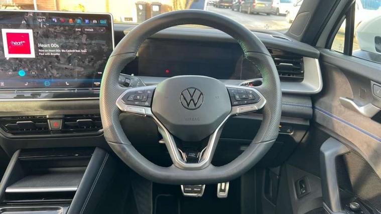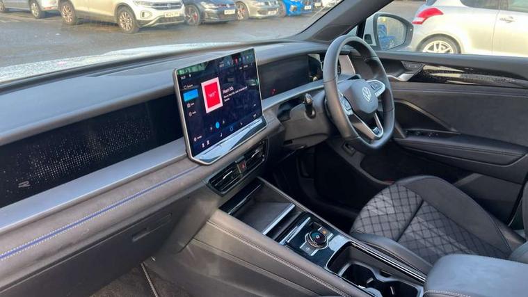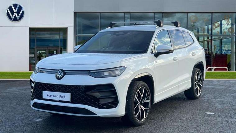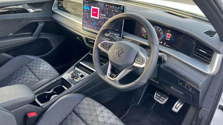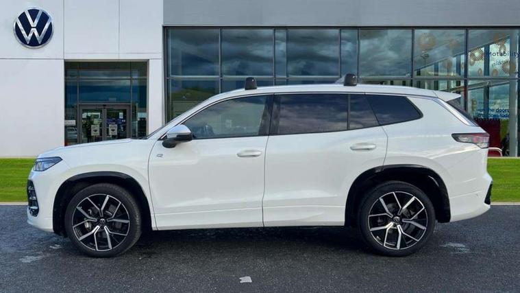 Adaptive cruise control (ACC), Digital Cockpit Pro - 10.25" high resolution dash display screen with customisable menus and information, Driver alert system, Driver attention monitoring system, Dynamic road sign display, E-Sim card for online connectivity, eCall emergency call system, Lane change system, Side assist, Rear traffic alert and Exit warning system, Multifunction front facing camera, Oncoming vehicle braking when turning including swerve support, Start/stop system with regenerative braking, Voice activation spoken voice commands for telephone and navigation system, Warning signal and warning light for front and rear seatbelts not fastened, Wireless App-Connect, Front wheel drive, Digital radio reception (DAB), Diversity antenna for FM reception, Air intake with Chrome trim, Auto dimming interior rear view mirror, Automatic headlight control system, Body colour door handles, Chrome moldings on the side windows, Coming/leaving home lighting function, Dynamic headlight range control with dynamic cornering light, Exterior mirrors convex on the left and aspherical on the right, Heat insulating glass in side and rear windows, Illuminated Volkswagen logo rear with animation, Laminated safety glass winshield, heat insulating, LED 3rd brake light, LED separate signature day time running light, Puddle lights, Rain sensor windscreen wipers, Rear fog light on one side, reversing light on both sides, Rear side wing doors, Rear wiper, Reverse activated passenger's door mirror, Surround lighting with welcome light, Volkswagen logo in front, illuminated lighting animation with wake up/goodbye scenario and illuminated door handles, 10 colour interior ambient lighting, 12V outlet in center console rear and in luggage compartment, 3 rear headrests, 3 rear seat bench in 2nd row, backrest split folding with centre armrest and 2 seats in 3rd row of seats, Black roof lining, Brushed stainless steel pedals, Carpet mats, front and rear, Centre console with illuminated storage compartment with sliding cover and two drinks holders, Chrome elements on the mirror switch and power window switches and door pulls, Door and side trim panel insert in Art velour, Flat luggage compartment floor, Front centre armrest, Front scuff plates in alumium, ISOFIX anchors for child seats on outer rear seats and front passenger seat compatible with i-Size, Mechanical rear seat release, Power adjustable lumbar support in front, Single front passenger seat, Sports comfort seats in front, Sun visors with illuminated vanity mirrors, 3 Point seat belts in front with pretensioners, 3 point seatbelts in outer rear with ECE label, Autonomous emergency braking front assist with pedestrian and cyclist monitoring, Driver and front passenger airbag with front passenger airbag deactivation, Electronic parking brake with auto hold, First aid kit with warning triangle and safety vest, Front and rear curtain airbags, Front and rear side airbags, Front centre airbag, Front disc brakes, Hill start assist, Rear disc brakes, Two tone horn, Decorative material set R-Line, Interior door handle in matte chrome,