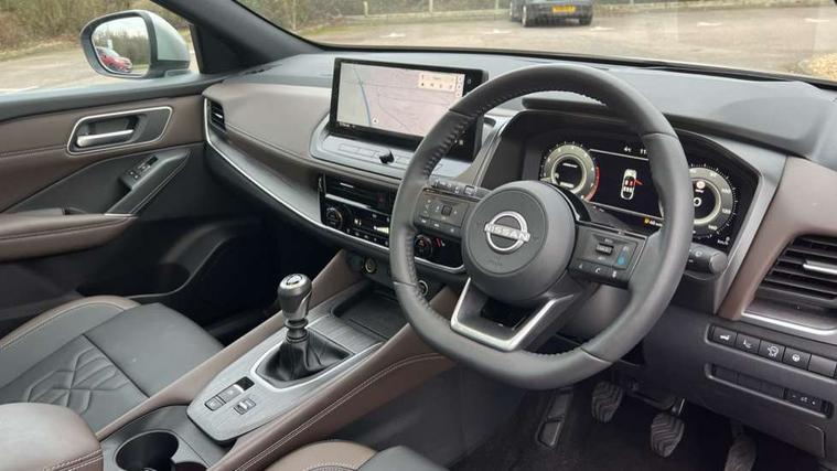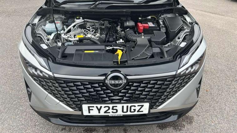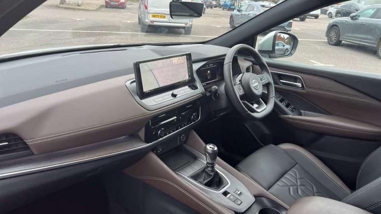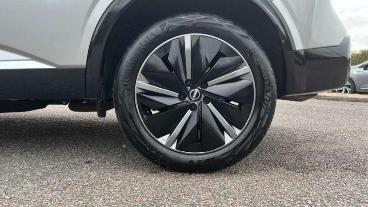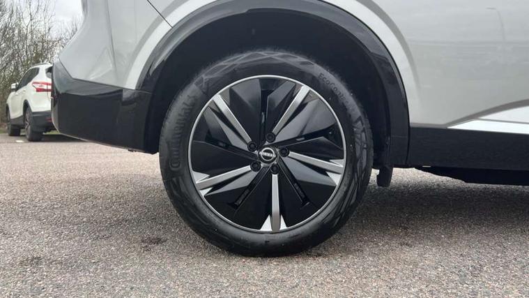 2 front USB-C ports, 2 rear USB-C ports, 360 degree Intelligent around view monitor with moving object detection, Advanced windscreen head up display, Blind spot warning, Drive assist, Drive assist custom mode, Drive modes (sport, normal, eco), Driver drowsiness and attention warning, Electric speed sensitive power steering, Emergency and breakdown call, Emergency lane keep assist, Emergency Stop Signal (ESS), Engine start/stop button, Event data recorder, Front and rear parking sensors, Full Digital 12.3" TFT Digital Combimeter, Google virtual personal assistance, Hands free power tailgate, Idle stop/start system, In-car WIFI hotspot, Intelligent Cruise control (ICC), Intelligent driver alert system, Intelligent forward collision warning, Intelligent lane intervention, Intelligent speed assist, Lane departure warning system, Nissan connect 12.3 inch touchscreen infotainment system, Nissan connect navigation with google maps, Nissan connect services 2.0 (Google Automotive System), Outside temperature sensor, Rear cross traffic alert, Remote control services - door locks, lights, horn and car locator, Reversing detection, Traffic sign recognition with legal speed adjustment, Trip computer, Wireless Apple CarPlay/Android Auto, Wireless charging pad, Limited slip differential, 6 speakers, AM/FM audio system with DAB, Bluetooth audio streaming, Auto dimming frameless rear view mirror, Auto rear wiper when reversing, Body colour mirror caps, Body coloured door handles, Bodyside mouldings, Chrome side window finisher, Electric auto folding door mirrors, Electrically adjustable and heated door mirrors with LED turn indicator, Follow me home headlights, High beam assist, Intelligent auto headlights, LED 3rd brake light, LED daytime running lights, LED headlights with adaptive driving beam, LED rear lights, LED sequential turn lights, One touch front and rear electric windows with remote opening and closing, One touch passenger window, Partially body coloured bumpers, Rain sensing wipers, Rear privacy glass, Rear roof spoiler, Rear side wing doors, Rear styling plate, Reverse tilting door mirrors, Shark fin antenna, Silver roof rails, Splash free rain sensing wipers, Super RED rear LED lights, Super UV and infrared cut glass, Thermaclear heated windscreen, 12v power socket in dashboard and luggage, 3 bench rear seats in 2nd row, 3 rear headrests, 60/40 split folding rear seat bench, Chrome interior door handles, Dark headlining, Driver and passenger sunvisors with illuminated vanity mirrors, Driver seat back pocket, Dual zone automatic climate control with pollen filter, Electrically adjustable driver seat, Electrically adjustable lumbar support for driver, Fixed Glass roof with electric sunshade, Front centre console and armrest, Front cupholders, Front door with bottle holders, Heated front seats, Heated steering wheel, Height adjustable front headrests, Height adjustable passenger seat, Leather shift knob, Luggage board system, Luggage space lighting, Manual adjustable lumbar support for passenger, Multifunction steering wheel, Passenger seat back pocket, Quilted/PVC upholstery, Rear door bottle holders, Rear seat armrest with 2 cupholders, RGB ambient light (Full area coverage), Single front passenger seat, Smooth leather steering wheel, Tilt/telescopic adjustable steering wheel, Two rear isofix child seat anchorage points with top tether, 3x3 point rear seatbelt pretensioners + load limiters, ABS with EBD and brake assist, Autonomous emergency braking, Child locks on rear doors, Curtain and front side, far side airbags, Driver and passenger airbags, Driver, passenger and 2nd row rear seat belt reminder, Electric handbrake with auto hold function, Front seatbelt pretensioners + load limiters, Height adjustable front seatbelts, Hill start assist, Intelligent blind spot intervention, intelligent front emergency braking, Intelligent rear automatic braking, Tyre pressure monitoring system, Vehicle dynamic control, Engine immobiliser, Intelligent key with walk away lock and approach unlock functions, Remote central door locking with deadlocking, Thatcham alarm, 19" Diamond cut alloy wheels, Tyre puncture repair kit,