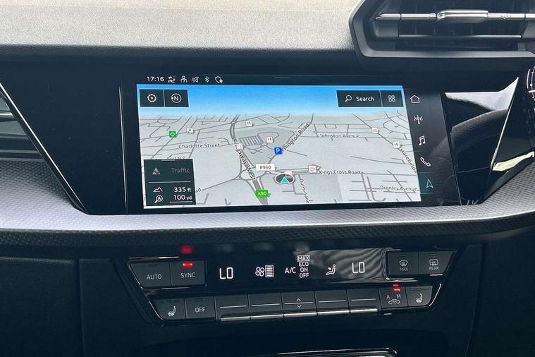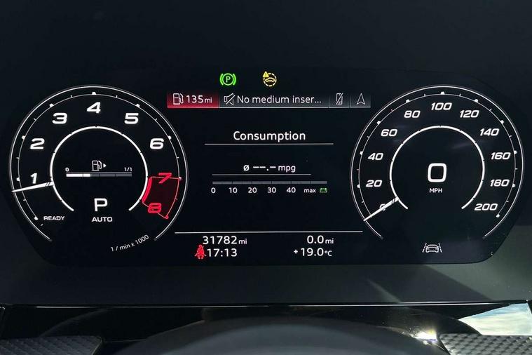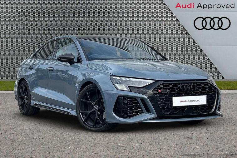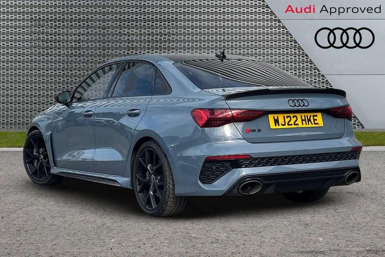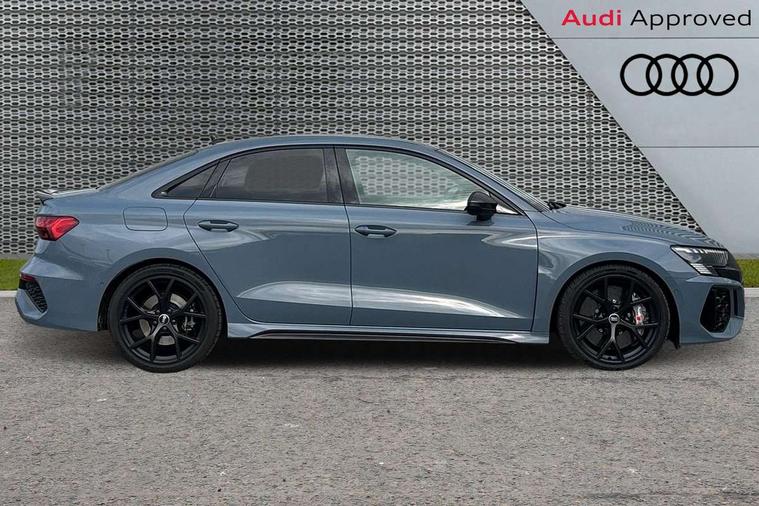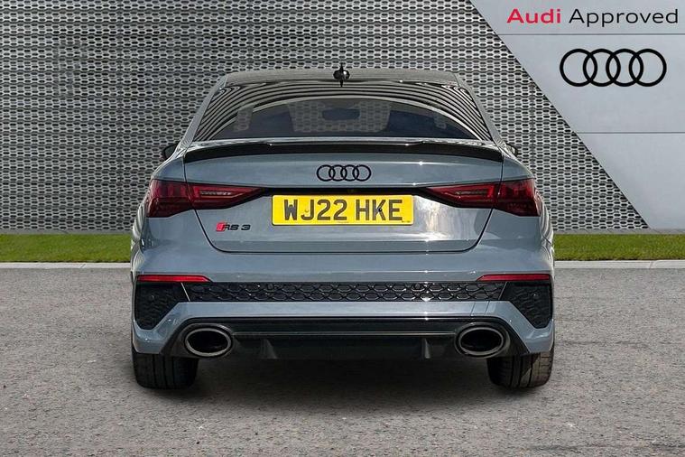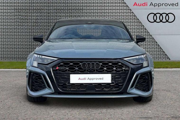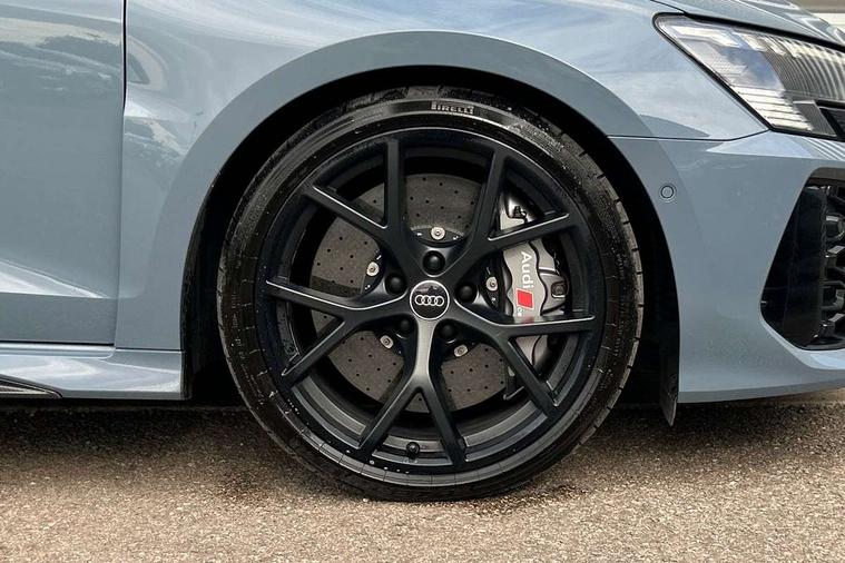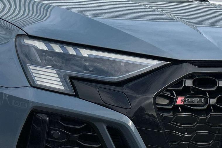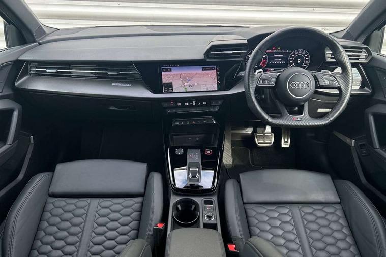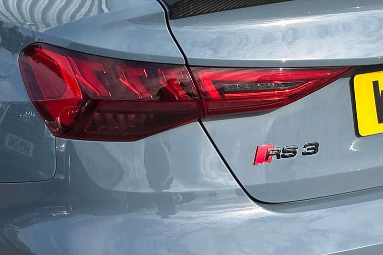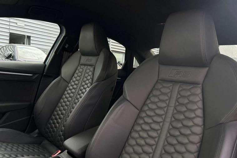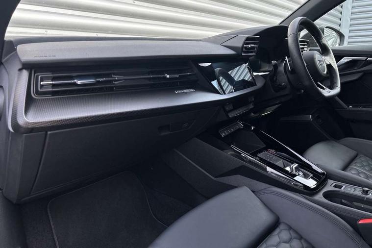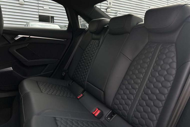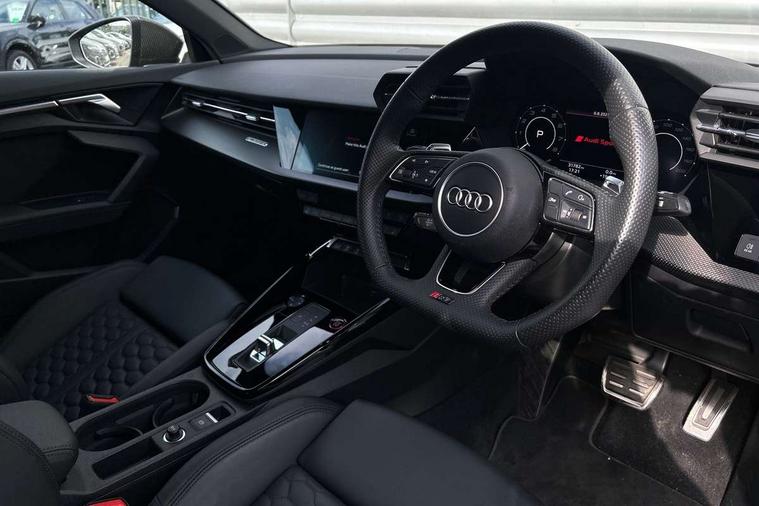 Audi connect emergency call and service, Audi smartphone interface, Audi virtual cockpit with RS specific display 12.3" full colour digital instrument cluster, Automatic start/stop system with recuperation, Bluetooth interface, Collision avoidance assistant, Lane departure warning system, Legal emergency call, Manual boot opening, Parking assist with parking system plus, Progressive power assisted steering, Quattro permanent four wheel drive, Rear suspension, Audi sound system impressive sound with 10 loudspeakers including centre speaker and subwoofer, 6-channel amplifier with a total output of 180 watts, DAB Digital radio, 3rd brake light, Acoustic glass windscreen, Audi beam uses LEDs to project the Audi sport logo onto the ground as you exit your RS 3, Audi matrix LED headlights, LED rear lights, dynamic front and rear indicators and headlight cleaning system, Auto dimming rear view mirror, Black coloured roof, Carbon exterior door mirror, Carbon fibre engine cover, Door mirrors - electrically adjustable, heated, folding and auto dimming on both sides, Front spoiler in high gloss black, Light and rain sensors, Privacy glass - dark tinted rear and rear side windows from B-pillar backwards, RS exterior features in gloss black, RS sports exhaust system, Side skirt in carbon inlay, 40/20/40 split folding rear seat bench, Black cloth headlining, Dual zone electronic climate control, Front and rear headrests, Front centre armrest, Front sports seats RS embossed logo, Front/rear floor mats, Heated front seats, Honeycomb stitching and RS embossing, Illuminated door sill trims inlays in aluminium with RS 3 logo, Manually adjustable front seats, RS emblems, Stainless steel pedals and front footrest in black, Tool kit, Aluminium interior elements pack - RS3, Ambient lighting pack - RS3, MMI navigation plus with MMI touch - RS3, RS bodystyling - RS3, Storage Pack - RS3, 3x3 point rear seat belts, ABS/EBD, ASR, Audi pre sense front, Driver/Front Passenger airbags, EDL, ESC - Electronic Stability Control + traction control, Front passenger airbag deactivation, Front side airbags with head airbags and interaction airbag, Hill hold assist, Seat belt reminder with passenger presence detection in rear, Tyre pressure loss indicator, Warning triangle and first aid kit, Anti theft alarm, Anti-theft wheel bolts, Electronically operated child lock, Remote control central locking, Full decorative carbon trim, 19" 5 Y spoke matt black alloy wheels, Tyre repair kit,