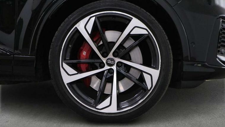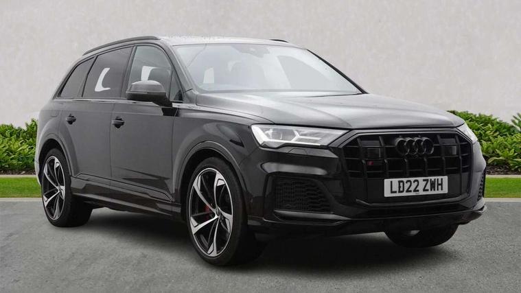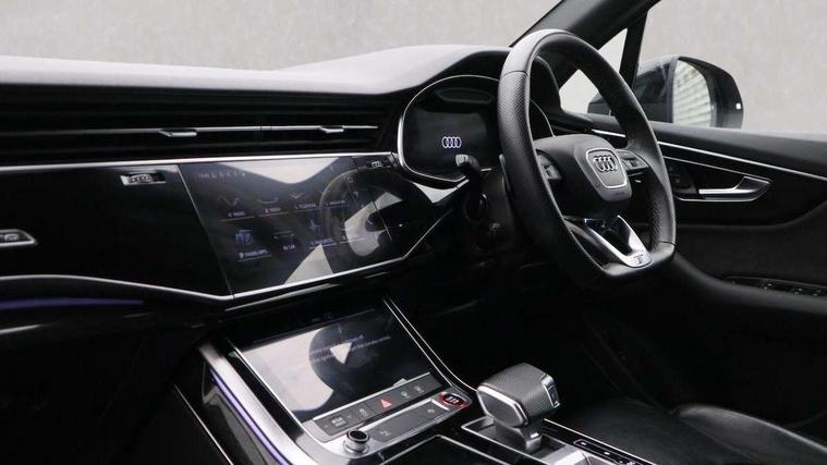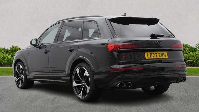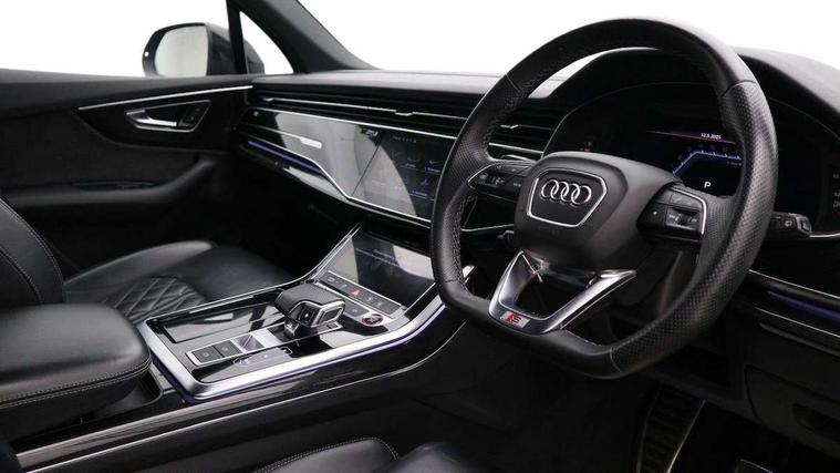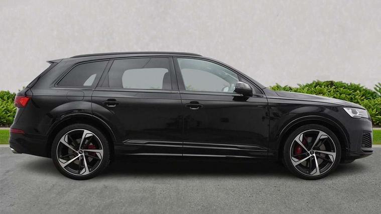 All wheel steering, Audi connect safety and service (e-call), Audi connect with Amazon Alexa Integration, Audi drive select (Auto, Comfort, Dynamic, Efficiency, Individual, Off-road and All road), Audi virtual cockpit - 12.3" high-resolution LCD display with fully customisable instrument cluster, Bluetooth interface, Camera based traffic sign recognition, MMI navigation plus with MMI touch screens includes 10.1" and 8.6" screens with haptic feedback, Natural voice recognition, Parking system plus with 360 degree display (front, rear and side sensors) - acoustic and visual park assist system, Power operated tailgate, Rear view camera, Smartphone interface includes wireless Apple carplay/Android Auto, Start/stop system, 48V Mild hybrid technology, 85 litre fuel tank, Quattro all wheel drive with self locking centre differential, S specific adaptive air sport suspension, Audi music interface - front 2 USB-C ports with charger and data functions, Audi sound system with 6 channel amplifier, 180 watt amplifying capacity and 10 loudspeakers including subwoofer, DAB digital radio module, 3rd brake light, Audi Beam uses LEDs to project Audi logo onto the ground as you exit your SQ7, Audi matrix LED headlights with dynamic front and rear indicators, Auto dimming frameless rear view mirror, Black roof rails, Electrically adj heated/folding + automatically dimming exterior mirrors with memory + automatic kerb side function for passenger side exterior mirror, Gloss black finish for exterior Audi rings and SQ7 logos, Heat insulating glass in windshield, Integrated LED indications in door mirrors, LED daytime running lights, LED rear tail lights, Privacy glass - dark tinted rear and rear side windows from B-pillar backwards, Rear side wing doors, Rear wiper, S front and rear bumpers, S specific rear bumper with 4 exhaust pipes, 2 seat bench in 3rd row, 3 seat bench in 2nd row, 4 zone deluxe automatic climate control, 7 seat layout with ISOFIX points for the front passenger seat and rear passenger seat, Black cloth headlining, Comfort front centre armrest, Electric adjustable front seats/backrest bolsters, lumbar support, memory functionality, Folding rear seats, Front head restraints, Front/rear floor mats, Heated front seats, Illuminated door sill trims with S logo, LED interior ambient lighting, Luggage compartment cover, Luggage compartment sill protection in stainless steel, Rear head restraints, Single front passenger seat, Stainless steel pedals, Sunvisors with illuminated vanity mirrors, Valcona leather upholstery with front super sport seat, Titanium black styling pack - Q7/SQ7, 3 point seatbelts on all rear seats, Audi pre sense front, Child locks on rear doors, Driver and front passenger, front side and curtain airbags, Electromechanical parking brake, Electronic Stabilisation Control (ESC) including ABS, ASR and EDL, Extended pedestrian protection measures, Hill hold assist, Seatbelt monitoring, Tyre pressure loss indicator, Warning triangle and first aid kit, Anti theft alarm, Anti-theft wheel bolts and wheel loosening detection, Keyless Go, Remote central locking, Polished oak trim with grey finish inlay, 22" 5 arm trapezoid design audi sport alloy wheels in anthracite black with gloss turned finish, Tool kit, Tyre repair kit,