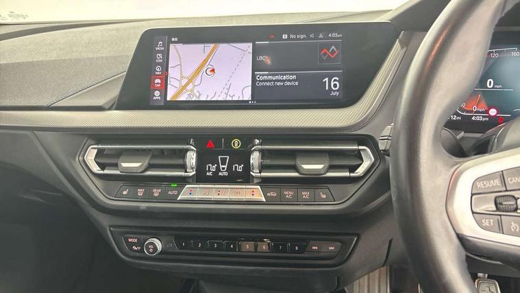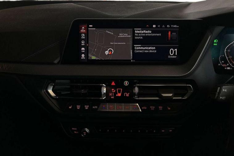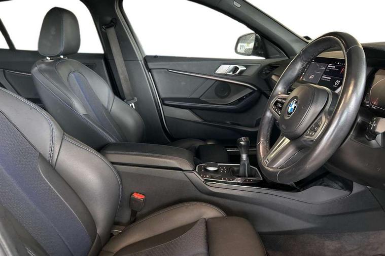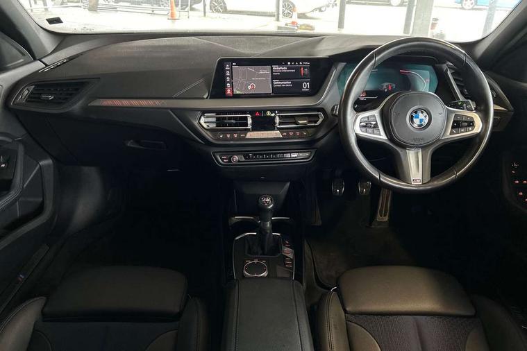 Active guard plus, Attentiveness assist, Bluetooth / WiFi interface for wireless connection of mobile terminal devices and audio streaming, BMW ConnectedDrive online services, BMW Teleservices, Check Control warning system for monitoring of lights and door/luggage compartment open warning, Cruise control with brake assist, Eco pro mode, Front axle single joint with specific axle kinematics to minimise drive influences on steering + provide increased rigidity agile driving behaviour, Integrated owners handbook, Lane departure warning system, Oil sensor for level and grade, On board computer, Optimum shift indicator, Personal Profile, Pull away assistant, Rigidly mounted rear subframe - Multi link construction with separate spring / damper configuration and excellent driving characteristics, Speed limit Info including no-overtaking indicator, Speed limiter, Aluminium lightweight construction, Anti roll bar front and rear, Balancer shaft, Double VANOS twin scroll turbocharging system, Drive Performance Control, Electronic differential lock, High precision injection, M sport suspension, Petrol Particulate Filter, Twin tube gas filled shock absorbers with degressive characteristic curve, VALVETRONIC engine management, DAB Digital radio, Auto dimming rear view mirror, Automatic headlight beam throw control, Automatic windscreen wipers and automatic headlight, Body colour door handles, Body colour mirror caps, Body colour roof trims, Chrome 'M' logo side designation, Chrome exhaust twin tailpipes round 90mm in left, Chrome kidney grille frame with Satin Aluminium struts, Direction indicator side lights in exterior mirrors, Fading support, Folding side mirrors with auto dimming/folding wing mirrors with auto dimming, Follow me home headlights, Front and rear bumper system with replaceable deformation elements, Front and rear electric windows with open and close fingertip control, anti trap facility and comfort closing, Front door sill finishers in black plastic with M designation in metallic look, Green tinted heat protection glazing, Heated, electrically adjustable exterior mirror aspheric on driver side, convex on passenger side, High gloss shadowline window frame, Recess cover mirror frames and B/C pillar embelisher trim, High level third brake light, Integrated front windscreen with washer jets, LED daytime running lights, LED eyebrow turn indicators, LED front fog lights, Lightweight engineering, Matt black air guide grilles, Matt black wheel arch trim, Model designation on electric bootlid, Nearside reverse light in rear light cluster, Preparation for high beam assistant, Rear fog lights, Rear side wing doors, Rear window wiper, Shark fin antenna, Trailer stabilisation logic, Visible VIN plate, Welcome lighting, 12V power socket in front centre console with blanking plug, 3 rear seat head restraints, 3 seat bench in 2nd row, 3 spoke sports leather steering wheel in black leather with black stitching and decorative finisher in pearl chrome, specific M badge + leather knob, Ambient interior lighting, Anthracite headlining, Black boot net with lashing eyes, Cargo function on 2nd seat row, Child seat ISOFIX attachment for two outer rear seats and front passenger seat with anchorage points, Conditioned based service, Driver and front passenger seat heating, Folding rear clothes hook, Four grab handles integrated in roof lining, Front and rear door pockets with bottle holders, Front and rear side armrest integrated into door trim, Front armrest, Front sports seats, Gearshift lever with M designation, Glove compartment, Height adjustable front head restraints, Luggage compartment for bag hooks on left and right, foldable luggage compartment liner and four lashing eyelets, Manual adjust steering wheel, Multi-function controls for steering wheel, Single front passenger seat, Storage compartment in centre console, Sun visors with vanity mirrors and insert tab, Two front centre console cupholders, Two zone automatic air conditioning, Velour floor mats, Additional interior lighting pack - 1 Series, BMW live cockpit professional pack- 1 Series, Connected pack professional - 1 Series, Interior lights pack - 1 Series, M Sport exterior styling aerodynamics pack - 1 Series, 2 tone horn, 3 point seatbelts on all seats, front pyrotechnic belt tensioners, stopper and belt force limiters, rear coded belt buckles, Airbags - Front driver/passenger, front and rear curtain head protection, front side, manual deactivation of front passenger airbag, Anti lock braking system (ABS) with brake assist, BMW emergency call, Brake drying, Braking readiness, Child proof locking system in rear door, City braking function, Comfort modes, Cornering brake control, Crash sensor activating central locking release, hazard warning lights, fuel cut off, interior lighting + activation of safety battery terminal clamp, Driver and front passenger seat belt security check, Dynamic stability control + (DSC+), Dynamic Traction Control - DTC, Electrically operated hand brake, Front and rear disc brakes, Seatbelt warning, Side impact protection, Tyre pressure monitoring system, Warning triangle and first aid kit, Central locking switch for all doors, fuel filler cap and luggage compartment, Deadlocking function system to all doors, Drive away locking system on all doors and luggage compartment with de-activated in iDrive settings, Locking wheel bolts, Remote control with integrated key with High-gloss Black inlay and M designation and 1 button for open/ close lock, window, open luggage compartment, Start/stop button illuminated in centre console with keyless engine start and auto start stop deactivation button, Thatcham Cat.1 alarm and immobiliser, Wheel slip limitation close to the actuator (ARB), Contrast stitching on instrument panel, Electrically powered 12V compressor, Reduced rolling resistance tyres,