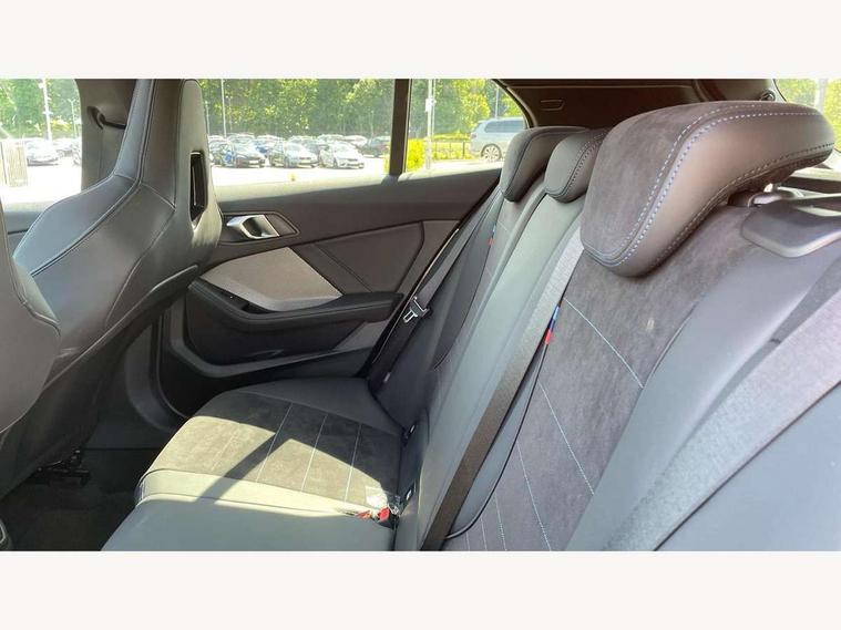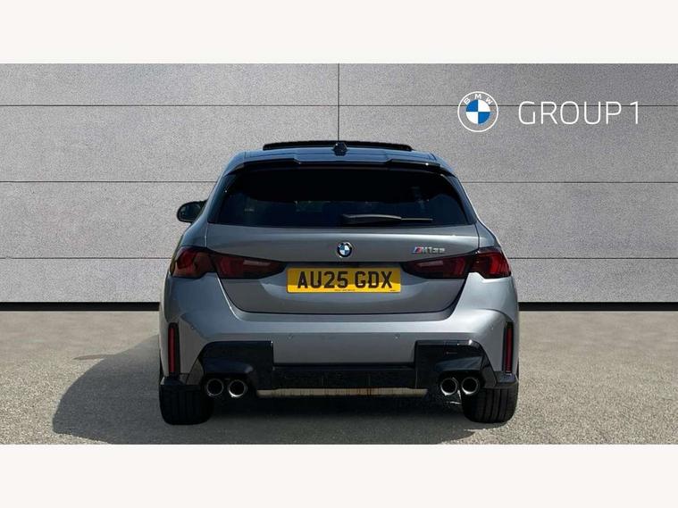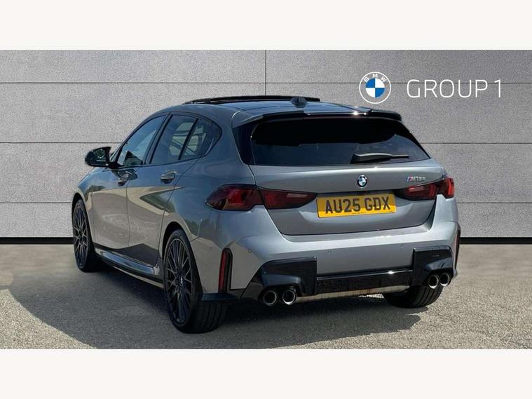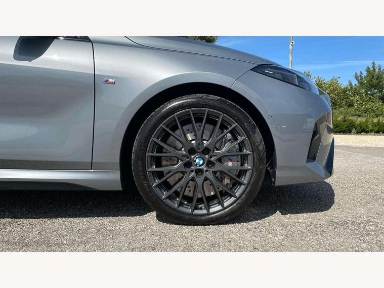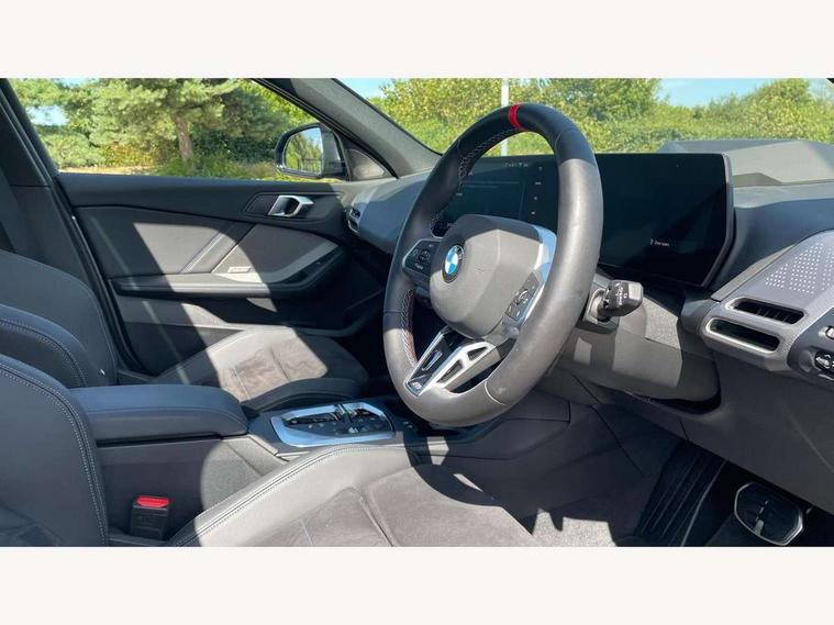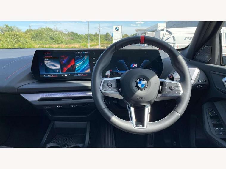Active guard plus, Attentiveness assist, Bluetooth / WiFi interface for wireless connection of mobile terminal devices and audio streaming, BMW ConnectedDrive online services, BMW Live cockpit plus, BMW Teleservices, Check Control warning system for monitoring of lights and door/luggage compartment open warning, Eco pro mode, Electric power steering, Electro hydraulically controlled multi-plate clutch transfers drive to rear axle and with power take-off device located on the front differential., Energy efficient operating strategy, Evasion assistant, Flat airvents in instrument panel with adjustable slats, Front and rear parking sensors, Front axle single joint with specific axle kinematics to minimise drive influences on steering + provide increased rigidity agile driving behaviour, Gearshift time display in manual mode, Integrated owners handbook, Left turn warning with brake function, M Sports steering with M135i xDrive specific settings, My modes (Personal / Efficient / Sport), Oil sensor for level and grade, On board computer, Optimum shift indicator, Park assist including reversing assistant, lateral parking aid and reversing assist camera, Personal e-SIM, Personal Profile, Pull away assistant, Rigidly mounted rear subframe - Multi link construction with separate spring / damper configuration and excellent driving characteristics, Speed limit Info including no-overtaking indicator, Speed limiter, Sporty fast gear shifting in sport mode, 49 litre fuel tank, Aluminium lightweight construction, Anti roll bar front and rear, Balancer shaft, Double VANOS, Drive Performance Control, Electronic differential lock, Electronic selector lever, Engine cover with M performance designation, High precision injection, Launch control, M Adaptive suspension, M135i specific heavily de-throttled engine intake air guide, M135i specific high-performance cooling package, M135i specific larger turbocharger with integrated divert-air valve, Petrol Particulate Filter, Steptronic transmission with double clutch, Twin tube gas filled shock absorbers with degressive characteristic curve, VALVETRONIC engine management, Variable, stepless and infinitely adjustable distribution of drive torque between the front and rear axles, xDrive intelligent all wheel drive with M135i specific reinforced components, DAB Digital radio, Harman/Kardon surround sound audio system with 12 speakers, Auto dimming rear view mirror, Automatic windscreen wipers and automatic headlight, Body colour door handles, Body colour roof trims, Cerium grey exterior mirror caps, Direction indicator side lights in exterior mirrors, Electrically adjustable exterior mirror with mirror adjustment switch on drivers armrest and aspheric on driver side, convex on passenger side, Exhaust tailpipe, Cerium Grey with bevelled finish - twin, round 100mm, left and right split, Fading support, Folding side mirrors with auto dimming/folding wing mirrors with auto dimming, Follow me home headlights, Front and rear bumper system with replaceable deformation elements, Front and rear electric windows with open and close fingertip control, anti trap facility and comfort closing, Front door sill finishers with M135i designation, Green tinted heat protection glazing, Heated rear window, High gloss shadowline window frame, Recess cover mirror frames and B/C pillar embelisher trim, High level third brake light, Integrated front windscreen with washer jets, Kidney grille frame in Cerium Grey with Mesh design, LED daytime running lights, LED eyebrow turn indicators, LED Headlights, Lightweight engineering, M Performance exhaust system with valve control and minimised exhaust back pressure, M Performance specific setup, M rear spoiler in high gloss black, M sport roof spoiler, Matt black air guide grilles, Matt black wheel arch trim, Model badge on tailgate right, Nearside reverse light in rear light cluster, Preparation for high beam assistant, Rain sensor, Rear fog lights, Rear side wing doors, Rear window wiper, Reinforced crank drive, new pistons and adapted con rods, Shark fin antenna, Sun protection glass, Trailer stabilisation logic, Visible VIN plate, Welcome lighting, 12V power socket in front centre console with blanking plug, 3 rear seat head restraints, 3 seat bench in 2nd row, 3 spoke Walknappa leather steering wheel, decorative stitching, badge, pearl chrome finish, thumbnails, red centre and black/red high gloss paddles, Anthracite front and rear floor mats, Anthracite headlining, Black boot net with lashing eyes, Cargo function on 2nd seat row, Child seat ISOFIX attachment for two outer rear seats and front passenger seat with anchorage points, Conditioned based service, Driver and front passenger backrest net on rear, Driver and front passenger seat heating, Driver side folding compartment in instrument panel, Folding rear clothes hook, Footrest and pedals in black plastic, Four grab handles integrated in roof lining, Front and rear door pockets with bottle holders, Front and rear side armrest integrated into door trim, Front armrest with storage compartment, Glove compartment, Height adjustable front head restraints, Luggage compartment for bag hooks on left and right, foldable luggage compartment liner and four lashing eyelets, Manual adjust steering wheel, Multi-function controls for steering wheel, Rear seat backrest with manual 60:40 split folding with 3 top tether clips integrated on rear of seat panels, Single front passenger seat, Storage compartment in centre console, Storage compartment in luggage compartment, Stowage of the parcel shelf in luggage compartment trim, Sun visors with vanity mirrors and insert tab, Two front centre console cupholders, Type C two USB ports in rear centre console, Upper retaining strap integrated into backrest rear panels, Connected pack professional - 1 Series, Interior lights pack - 1 Series, M Sport exterior styling aerodynamics pack - 1 Series 135i, 2 tone horn, 3 point seatbelts on all seats, front pyrotechnic be
