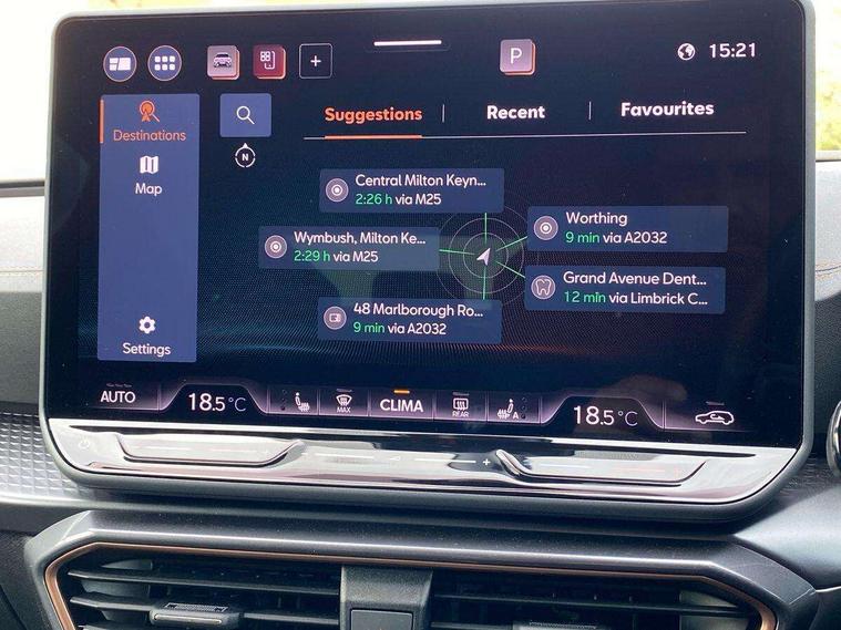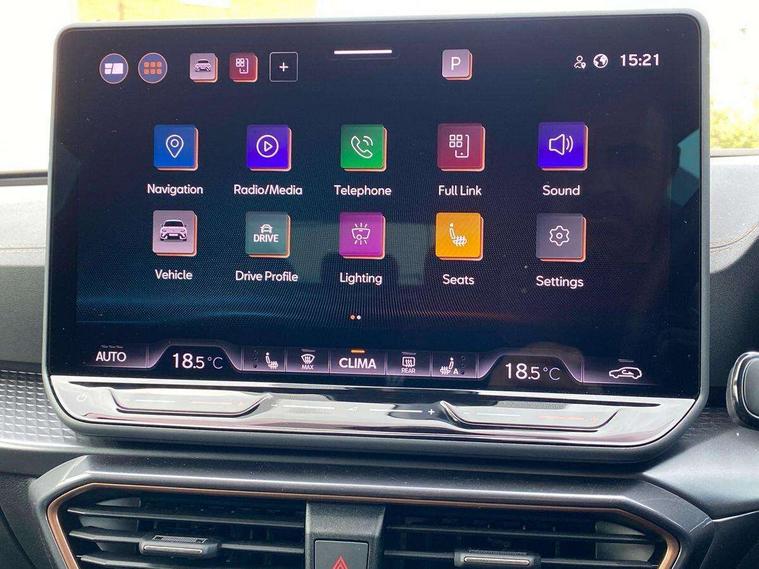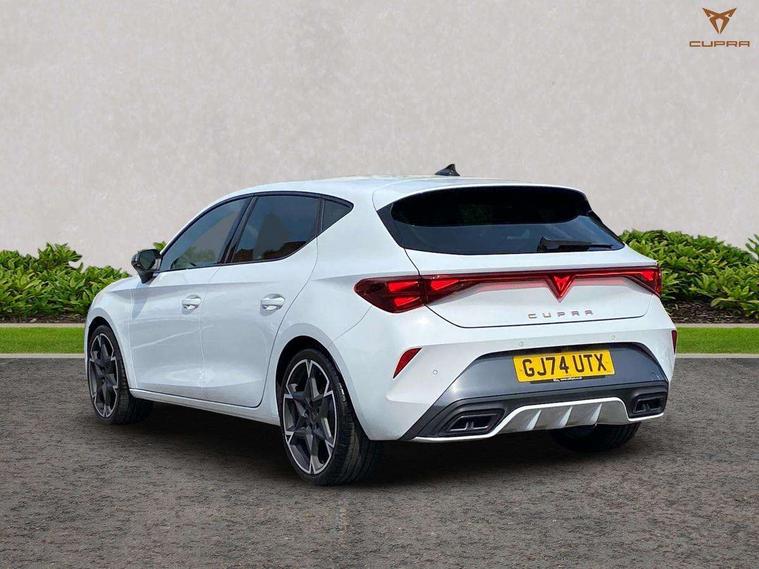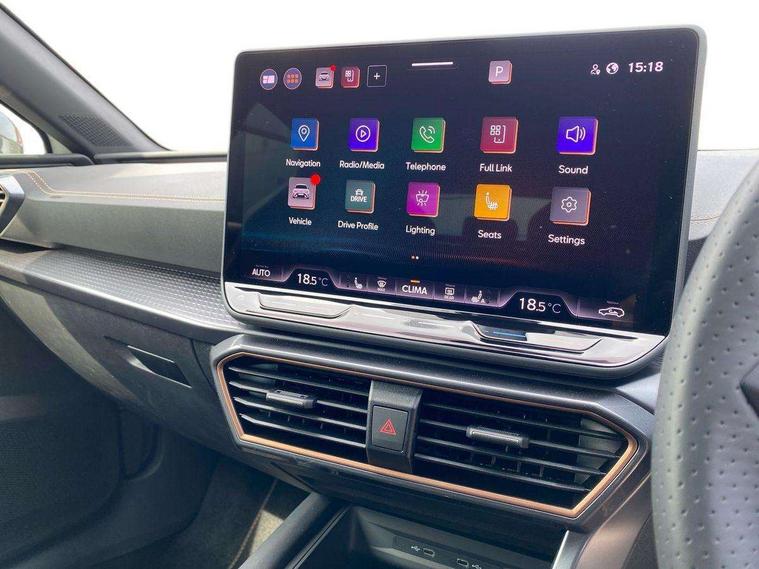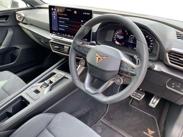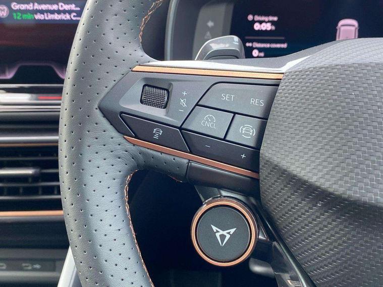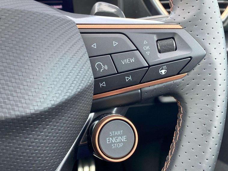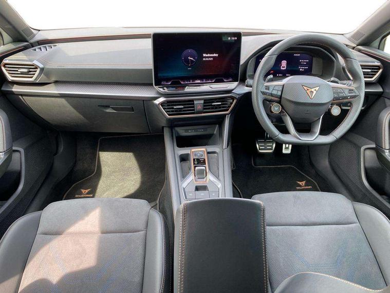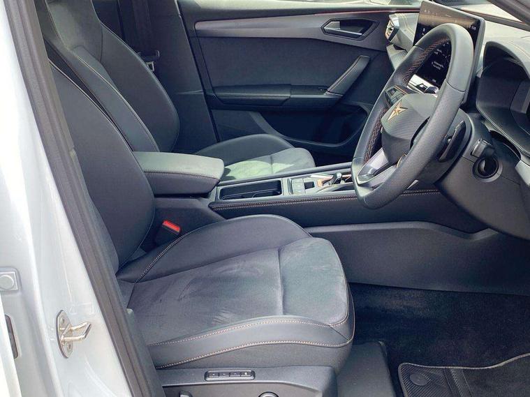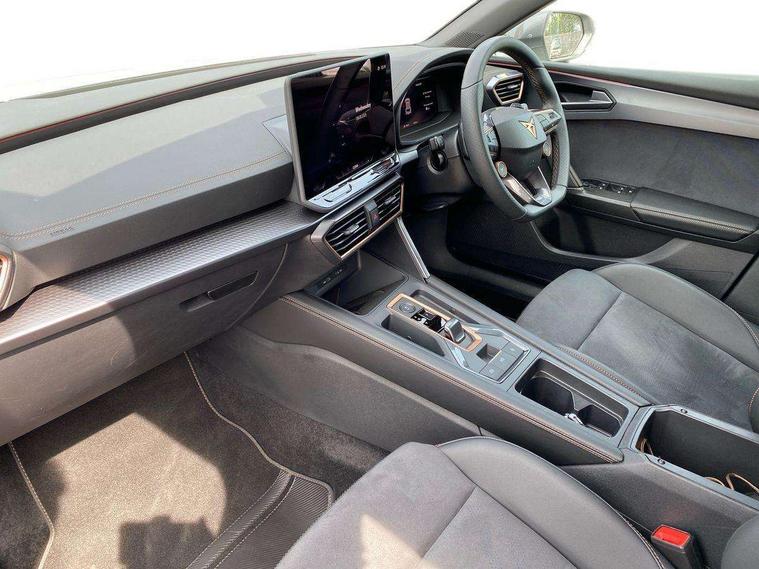 Adaptive cruise control with follow-to-stop and speed limiter, CUPRA drive profile selection with (Comfort/Sport/Individual), throttle response and gearshift mode, Digital cockpit, Dynamic road sign display, E-call, Four x USB Type C ports (2 in front and 2 in rear), Front and rear parking sensors, Front assist with forward collision warning braking reaction to vehicles, pedestrians and cyclists, Full link smartphone integration with Mirror Link, wireless Apple CarPlay and wired Google Android Auto, Lane assist, Lockable tailgate, Rear view camera, RPM, trip computer, outside temp gauge, instrument light brightness, low fuel warning light, lights on reminder, gearshift indicator, Service interval indicator, Start/stop system with regenerative braking, Wireless phone charger, Auxiliary input socket, Auto dimming rear view mirror, Body colour door handles, Body coloured bumpers, Cupra sports bumpers, Dark tinted rear windows, Electric front/rear windows, Electrically adjustable, heated and folding door mirrors, High beam assist, LED front fog lamps with cornering function, LED headlights with dynamic turn signals, tail lights, rear fog lights with rear coast to coast lighting, LED rear fog lamp, Rain sensing wipers, Rear side wing doors, Rear wash/wipe, Separate daytime running light with automatic headlight control and coming home feature, Third brake light, Welcome light with logo projector in door mirrors, 12v power supply in centre console, 3 seat bench in 2nd row, 5 headrests, 60/40 split rear bench seat with armrest, Ambient lighting (glovebox, footwell, ambient lighting multicoloured), Black headlining, Cupra sports pedals, CUPRA Supersports, heated steering wheel with satellite buttons, Dinamica cloth upholstery, Electrically adjustable driver seat and lumbar support with memory function + manually adjustable passenger seat, Folding boot cover, Front and rear reading lights X 4, Front centre armrest, Heated front seats, Height/reach adjust steering wheel, Illuminated interior front door sills, Interior wraparound lighting, ISOFIX points in outer rear seats with top tether anchorage points, Single front passenger seat, Storage pockets on rear of front seats, Sunvisors with illuminated mirror, Three zone climate control, Dynamic and comfort pack - Leon Cupra, Media system plus with 12.9" display + navigation pack - Leon Cupra, 3 point seatbelts on all rear seats, ABS, Brake control system - ESC and brake booster, Child proof door locks, Cupra black brake calipers, Driver and front passenger airbags with front passenger airbag de-activation, front side and curtain airbags, Electronic parking brake, Hill hold control, Rear disc brakes, Seat belt reminder for front and rear seats, Tiredness recognition system, Tyre pressure monitoring system, Anti theft alarm system with interior monitoring in cab, backup horn and towing protection, KESSY Advanced - Keyless start, keyless entry, Locking wheel bolts, Chrome and copper interior detailing, 19" Polar machined sport black and silver alloy wheel with 91Y tyres, Tool kit,