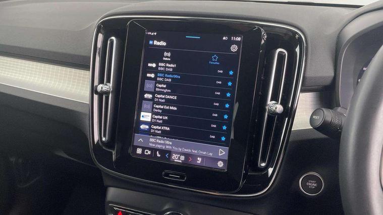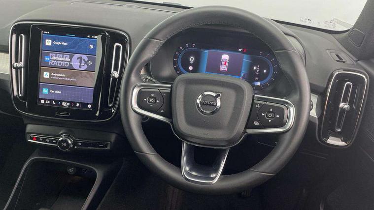 12.3" Progressive Driver Display, 360 degree surround view parking camera with side proximity sensors, 9" centre console portrait touch screen, Adjustable steering wheel force, Bluetooth hands free telephone kit, Cruise control, E-call, Front park assist, Google automatic services - Nav with google maps, apple carplay/android auto, voice recognition with google assistant, Hands free power tailgate, Lane keep assist with driver alert control, Oncoming Lane Mitigation, Rear park assist, Speed limiter, Speed sensitive steering, Wireless/Inductive Mobile Phone Charging, Dynamic chassis, DAB Digital radio, High performance sound, 8 speakers/250W, front USB and 2 rear type C USB, Steering wheel mounted remote controls, Adaptive brake lights with high level LED brake lights, Auto dimming feature for exterior door mirrors, Auto dimming interior mirror, Automatic headlamp levelling, Automatic LED Headlights + Active high beam incorporating daytime running lights, Front aluminium tread plates, Front and rear electric windows, High gloss black front and rear skid plate, High gloss black mesh front grille with high gloss black surround, High gloss black window trim, Home safe and approach lighting, Integrated roof rails in high gloss black, LED front fog lights, Puddle lights, Rain sensor with automatic windscreen wiper activation, Rear side wing doors, Rear wiper, Roof antenna, Roof spoiler, Visible VIN plate, 12V socket in front tunnel console and luggage compartment, 2-Zone electronic climate control with CleanZone air quality system and pollen filter, 3 seat bench in 2nd row, 3 Spoke tailored steering wheel with chrome trim, 60/40 versatile split folding rear seat, A-pillar parking ticket holder, Centre console cupholders and storage, Flexible load floor and grocery bag holder, Floor mats, Front door pocket, front cupholder, ambient front door, rear reading, rear courtesy, instrument panel and tailgate lighting, Front footwell illumination, Front headrests, Front reading light and theatre lighting, Front seat cushion extensions, Front tunnel pocket, Glovebox bag hook, Heated front seats, Height adjustable passenger seat, Height/reach adjustable steering column, High gloss centre tunnel deco, Illuminated glovebox, Illuminated luggage compartment, Illuminated vanity mirrors, Integrated waste bin, Isofix attachments on outer rear seats, Load protection net, Multi directional lumbar support, Power driver seat with memory + exterior mirrors memory, Rear armrest / integral cup holders / storage tray, Rear headrests, Single front passenger seat, Underfloor cargo storage, Climate pack without heated front seats - XC40, 3x3 point rear seatbelts, City safety with steering support with Pedestrian + cyclist + front collision warning with full auto brake and rear auto brake, Drivers knee airbag, Dual stage driver/passenger airbags, Electronic parking brake with auto hold, First aid kit, Front and outer rear seatbelt reminder and pretensioners, Front seats SIPS airbags, Hill descent control, Hill start assist, Inflatable curtain, Passenger airbag cut-off device, Power child locks on rear doors, Road sign information display, Run off Road Mitigation, Run off Road Protection, SIPS (Side Impact Protection System), Slippery road and hazard light alert, Stability and Traction Control with Spin control, Engine Drag Control and Corner Traction Control, Tyre pressure monitoring system, Vehicle deceleration control with Anti-lock Brake System, Electronic Brake Distribution and Emergency Brake Assist, Warning triangle, WHIPS whiplash protection system - front, Anti-theft alarm including immobiliser/volume sensor + level sensor, Key integrated remote control central locking + fuel flap with deadlocking system and auto open/close power windows, Keyless drive includes keyless entry and keyless start, Locking wheel nuts,