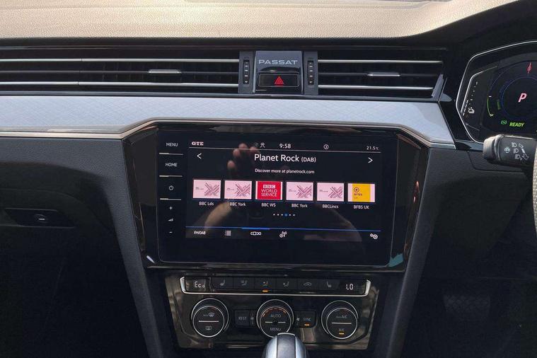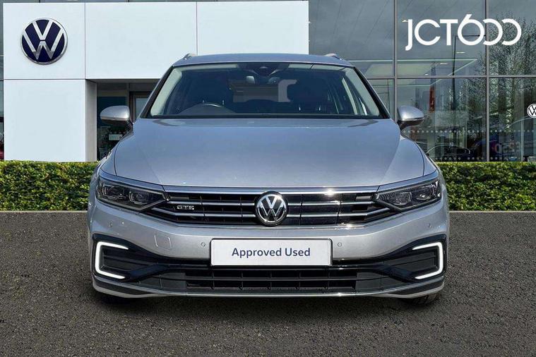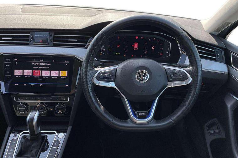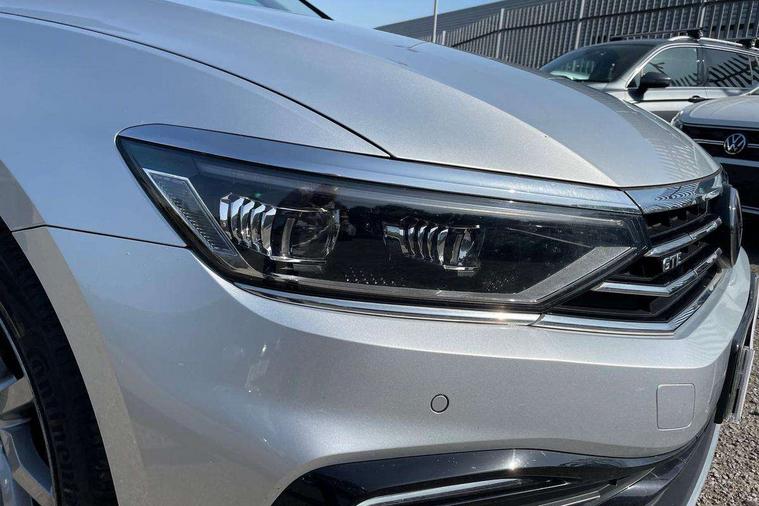 Adaptive cruise control including Front Assist, radar sensor controlled distance monitoring system, City emergency braking system, Driver alert system, Driver profile selection, Exterior temperature gauge with frost alarm, Lane assist, Low washer fluid warning light, Multifunction computer includes visual gear, One touch indicator turn signal, Proactive occupant protection, Security and service including e-call, Socket AC Type 2, Speed sensitive power steering, Speedo and rev counter, electronic odometer, trip, service interval display and fuel gauge, Traffic jam assist, Warning buzzer and light for front seatbelts unfastened, Wireless app connect, Battery regeneration during braking, Exterior e-sound, Misfuel prevention device, Petrol Particulate Filter, Two charging cables 16amp for wallbox/chargepoints (mode 3) and 10amp mains charge cable (mode 2), Aerial for radio integrated into rear windscreen, DAB Digital radio receiver, Auto dimming interior rear view mirror, Automatic headlights with dusk sensor, Automatic leaving home and manual coming home lighting functions, Black radiator grille with chrome louvres, Body colour bumpers, Body colour door handles, Body coloured door mirrors with integrated indicators, Charging point inlet on radiator grille, Chrome side window surrounds, Front and rear electric windows, Fully galvanised body, Gloss black finish on B pillar, Heated rear window, High level 3rd brake light, IQ.LED matrix projection technology headlights w. washers, dynamic curve lighting, dual U-shaped LED DRL, LED indicators, static cornering fog lights, LED rear lights, LED rear number plate lights, Plastic load sill protection, Rain sensor, Rear tinted glass from B pillar backwards, approx 65% tinted, Rear window wash/wipe, Remote electrically adjustable and foldable heated door mirrors including automatic dimming function on drivers side door mirror puddle lights, Silver anodised roof rails, Trapezoid exhaust tailpipes, left and right, Unique GTE badging, Unique GTE radiator grille with blue strip, Warning lights for open tailgate and doors, White instrument lighting, 12V socket in front centre console, 12V socket in luggage compartment, 40:20:40 split folding rear seat backrests, Climate control - 3 Zone electronic air conditioning with automatic air recirculation, Driver's door storage compartment for 1.0 litre bottle, Driver/front passenger seat height adjustment, ErgoComfort seat with seat cushion tilt adjustment, thigh support and electric backrest adjustment on the driver side, Extending luggage compartment cover with convenience opening, stowable, Front + rear carpet mats, Front and rear interior lighting with delay and dimming function, Front centre armrest with storage compartment and two rear air vents, Front cupholders x2 with covers, Front passenger storage compartment for 1.5 litre bottle, Front seats with lumbar adjustment, Height adjustable and removable variable boot floor, Height adjustable rear seat head restraints (x3), Height/reach adjust steering wheel, Illuminated vanity mirrors, Isofix child seat preparation, outer rear seats, Leather trimmed three spoke multifunction steering wheel and gear knob with blue contrast stitching, Load lashing points x 4 in luggage compartment, Load through provision, Lockable, illuminated, cooled glovebox, Luggage compartment lighting, Rear seat centre armrest with storage compartment, Storage compartment in rear doors, Storage compartment in roof console with cover, Vienna leather upholstery + heated front seats + heated windscreen washer jets, Discover navigation pro pack - Passat, Easy open package with full electric tailgate/ boot - Passat (Estate), 3x3 point rear seatbelts, ABS (Anti locking brake system) includes BAS (Brake assist) and EBD (Electronic brake pressure distribution), Automatic post collision braking, Blue brake callipers, Disc brakes front and rear, Door open warning reflectors, Driver/Front Passenger airbags, Drivers and front passengers safety optimised head restraints, longitudinal and height adjustable, Drivers knee airbag, Electronic parking brake with auto hold, First aid kit, Front airbags with deactivation switch, Front and rear passenger curtain airbags, Front side impact airbag, Height adjustable front 3 point seatbelts + pretensioners, Hill hold function, Pre crash preventive occupant protection, Rear seat side impact airbags, Rigid safety cell with front and rear crumple zones, Volkswagen roadside assistance, Warning light for rear seat belts if unfastened, Alarm with interior protection and deactivation via infotainment system, Electronic engine immobiliser, Keyless entry system including start/stop button on centre console, Chrome air vent and instrument surround, Cross hatch decorative inserts in dash and door panels, Unique GTE instrument cluster, Tyre mobility kit,