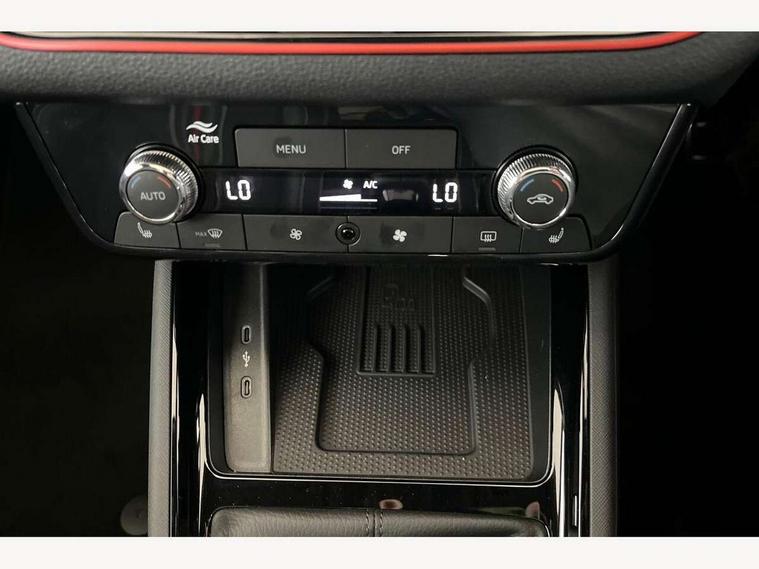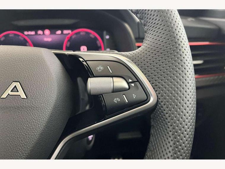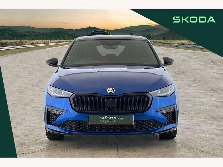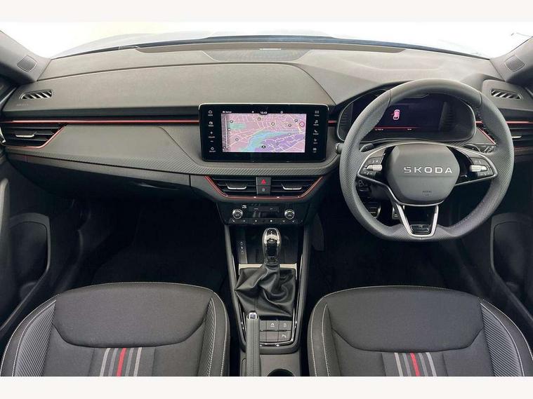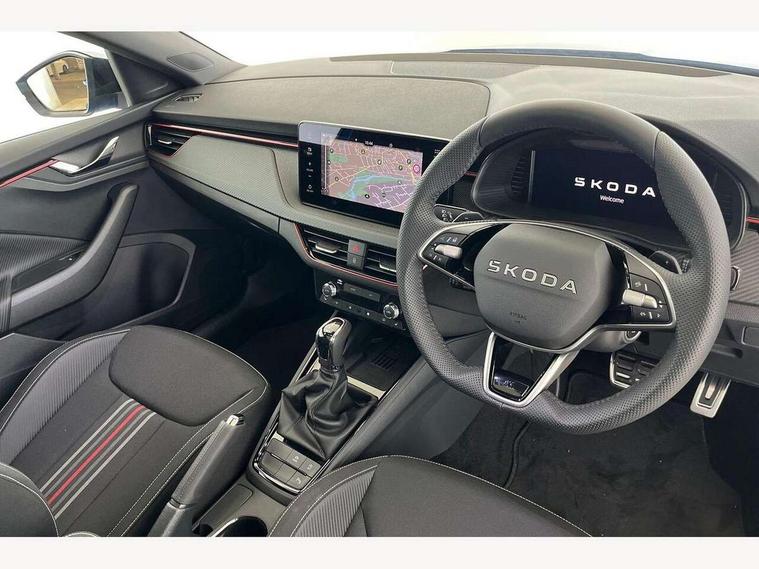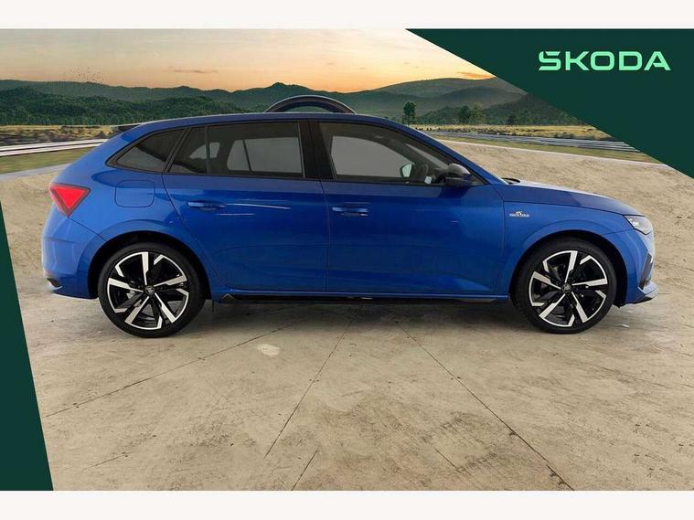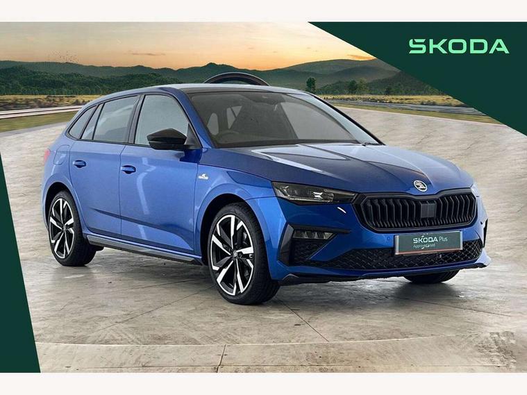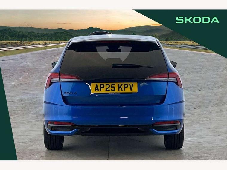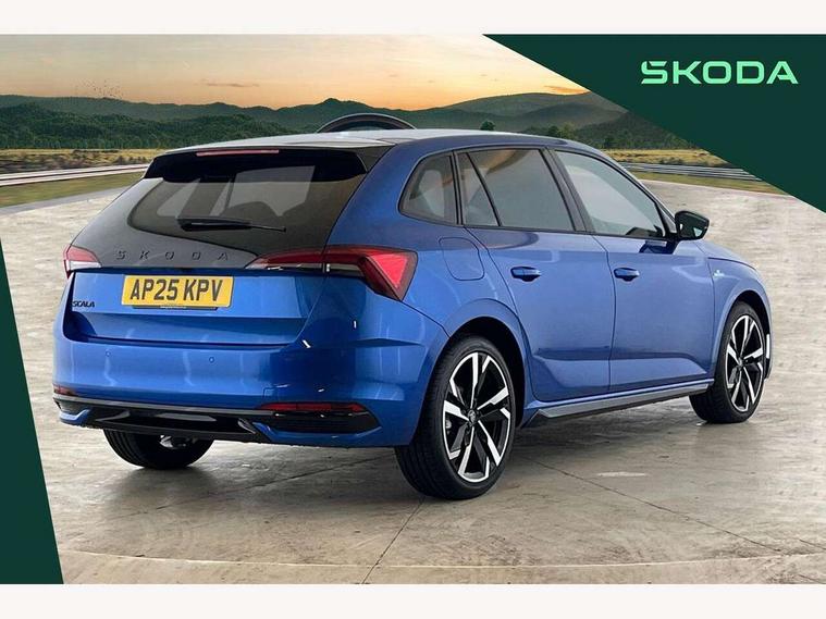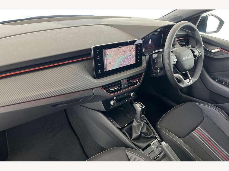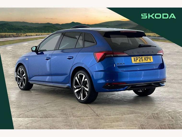 Advanced driver attention and drowsiness monitor, Bluetooth, e-Call (emergency call), Front assist system, PAS, Rear parking sensors, Rear view camera, Speed limiter, Tailgate, Traffic sign recognition, Virtual Cockpit - 10.25" digital display, Voice control system, Wireless smartlink, 4 USB C ports, 8 Speakers, 9.2" Skoda navigation display, DAB radio, Auto dimming rear view mirror, Automatic headlamp activation with Coming home and Leaving home feature, Automatic high/low beam, Automatic intermittent wipers, Black door mirrors, Black lettering on boot lid, Black radiator grille, Black rear diffuser, Black roof spoiler, Body colour bumpers, Body colour door handles, Chrome moulding around grille, Extended tailgate glass, Front and rear electric windows, Heated rear window, LED 3rd brake light, LED brake lights, LED daytime running lights, LED high beam, LED low beam, Light sensors, Monte carlo plaque, Panoramic glass roof, Privacy glass, Rear LED fog light, Rear side wing doors, Rear wiper, Tinted windows, Unique dark chrome design logo on alloy wheels, 12V socket in luggage compartment, 3 seat bench in 2nd row, Aluminium pedals, Ambient lighting in white/red, Black / White armrest stitching, Black ceiling, Black roof headlining, Cargo elements, Chrome inner door handles, Door inserts in art.leather carbon, Driver and passenger sun visors with vanity mirror, Dual zone climate control, Front and rear roof lights, Front centre armrest, Front head restraints, Height adjustable driver seat, Height adjustable passenger seat, Ice scraper, Illuminated glove compartment, Inner circulation control with pollen filter, ISOFIX for front passenger seat, Isofix preparation for back seats, Leather gearknob and handbrake lever, Luggage net under rear parcel shelf, Manual lumbar support for front seats, Monte Carlo cloth upholstery, Net package and top tether hooks in boot space, Pocket on the back of both front seats, incl. mobile phone pockets, Rear centre armrest, Red hotstamping, Single front passenger seat, Skoda lettering on steering wheel, Sport seats, Textile floor mats, Third rear headrest, Ticket holder, Top tether for front passenger seat, Umbrella in driver's door, Light and view plus pack - Scala, 3x3 point rear seatbelts, ABS, Child locks, Curtain airbags and front side airbags, Disc brakes, Driver and front passenger airbags, ESP, Hill hold control, Manual leather parking brake, One tone horn, Passenger airbag switch off function, Seatbelt reminder for driver and front passenger, Tyre pressure monitoring system, Anti theft alarm system with interior monitoring, backup horn and towing protection, Anti-theft wheel bolts, Remote central locking with 2 remote folding keys, SAFE function for remote central locking, Carbon effect decorative inserts, 18" Ursa black diamond cut alloy wheels,