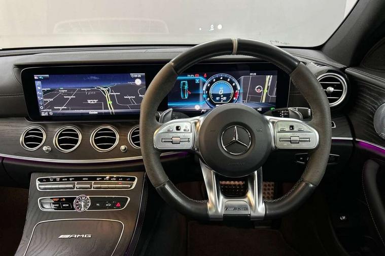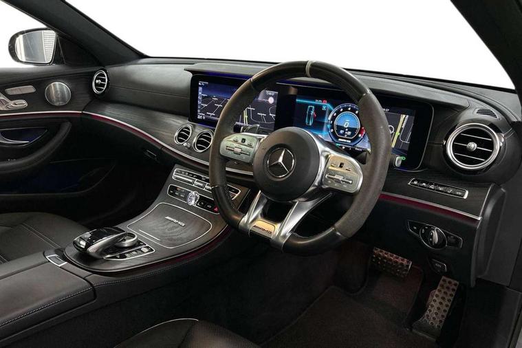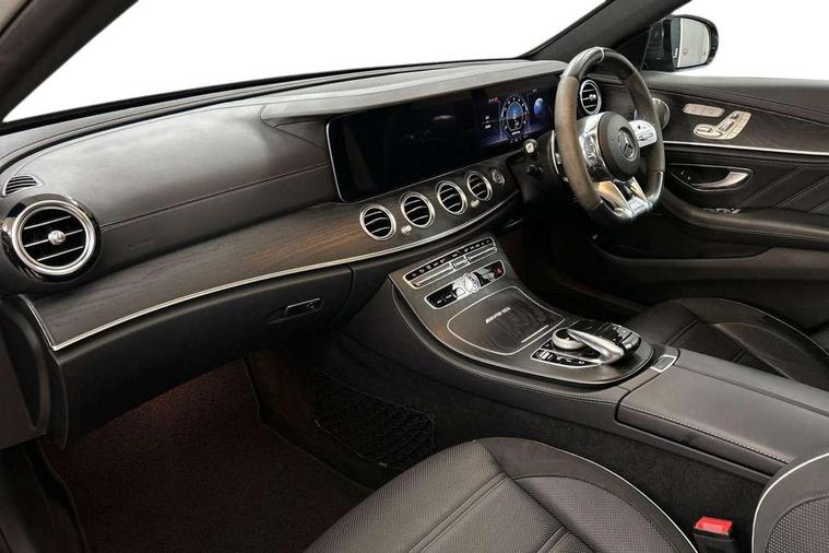 Active park assist with parktronic system, Analogue clock, Attention assist, Bluetooth interface for hands free telephone, Boot release from drivers seat, Brake wear warning light, COMAND HDD navigation with 12.3" central display and 12.3" Cockpit display, DYNAMIC SELECT with a choice of driving modes (ECO, Comfort, Sport, Sport+ and Individual), Easy-pack tailgate - Powered opening/closing automatically, External temperature gauge, Instrument cluster, Multi function trip computer, Park assist pilot with front and rear park assist, Remote boot release, Reversing camera, Service indicator (ASSYST), Smartphone integration with Apple CarPlay, Touchpad with control wheel, 66 litre fuel tank, AirMATIC suspension, AMG electronic rear axle limited slip differential lock, DAB Digital radio, Media interface, Steering wheel mounted audio controls, USB/aux input socket, Adaptive brake lights, Aerial integrated in rear window, AMG bodystyling, AMG front, rear apron and side skirts, Body colour bumpers, Body colour door handles, Chrome roof rails, Electric front/rear windows with one touch/auto up/down, Electrically adjustable and heated door mirrors, LED daytime running lights, LED Headlights, LED tail lights, Polished aluminium upper window surround, Rain sensor windscreen wipers, Twin exhaust tailpipes x2, 3 spoke AMG Performance steering wheel in black nappa leather/dinamica, 40:20:40 split folding rear bench seat, Adjustable front head restraints, Ambient lighting, AMG Exclusive Nappa leather upholstery, AMG floormats, AMG illuminated door sills, Auto Mercedes-Benz child seat recognition sensor, Bag hook in luggage compartment, Black roof lining, Chrome door pins, Cupholders in centre console, Electric adjustable steering column, Folding shopping box, Front and rear door pockets, Front centre armrest with storage compartment, Front seat back map pockets, Heated front seats, Interior rear light/integral reading lights, Isofix rear child seat fastenings, Lockable/illuminated air conditioned glovebox, Multi function steering wheel, Nappa leather upper dash trim, Sports pedals with stainless steel surfaces and rubber studs, Steering wheel gearshift paddles, Storage compartment with 12V socket in centre console, Storage net in luggage compartment, Sunglasses holder, Sunvisors with illuminated vanity mirrors, AMG driver's package - E Class AMG, Interior lighting pack - E Class, Memory pack - E Class, Mirror pack - E Class, 3x3 point rear seatbelts, ABS, Active bonnet, Active brake assist, Childproof rear door locks, Crash sensor, Driver and passenger side/thorax airbags, Driver/front passenger airbag, Drivers knee airbag, Electronic parking brake, ESP with ASR, Hill hold assist, Hill start assist, Pre-Safe anticipatory safety system, Red brake calipers, Seat occupancy sensor, Seatbelt warning, Tyre pressure monitoring system, Warning triangle and first aid kit, Window airbags, Alarm system/interior protection/immobiliser, Automatic door locking, Chrome surround electric key, Keyless Start, Remote central locking, Open pore black ash wood centre console, Tirefit sealant with electric air pump,