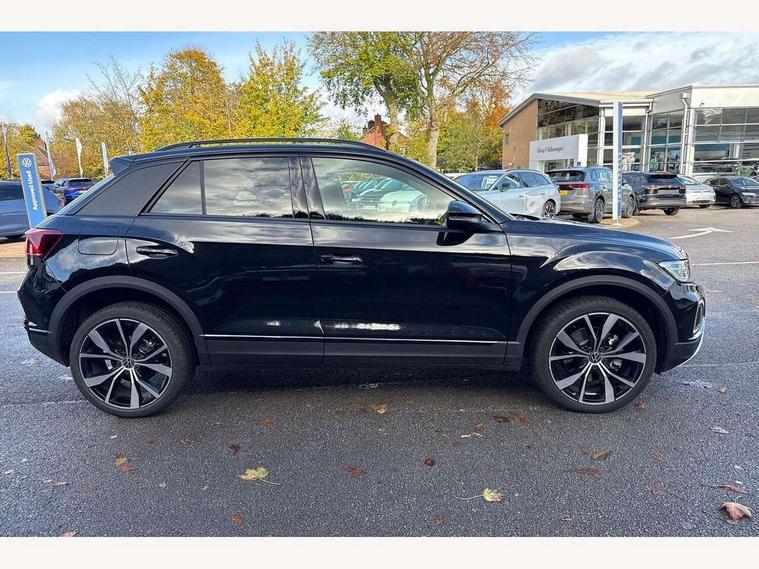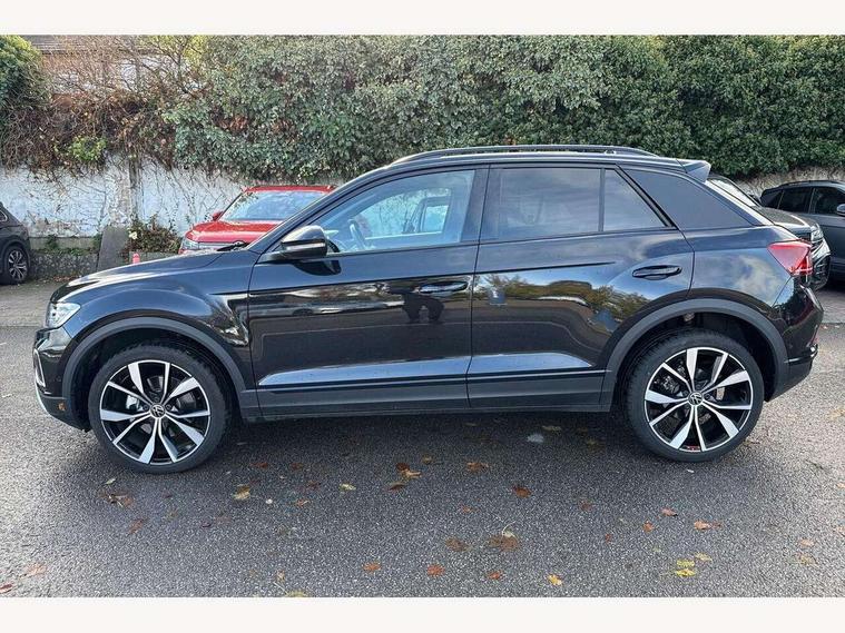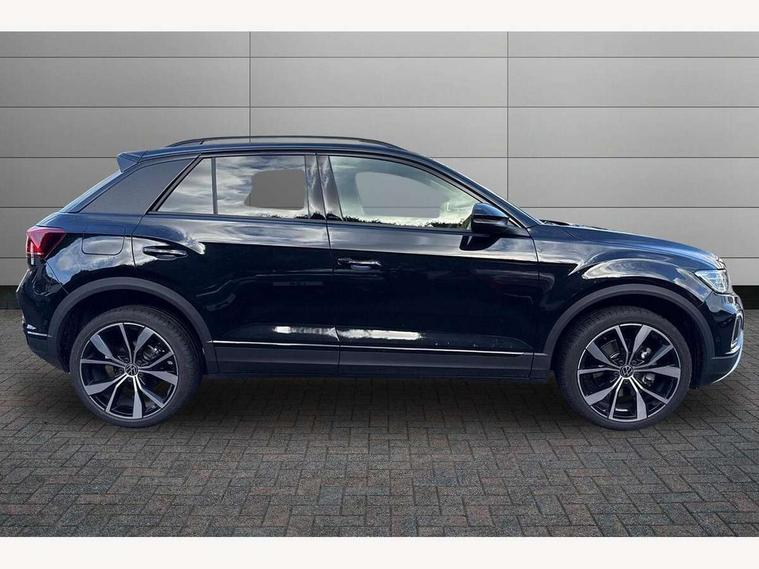 10.25" Digital cockpit pro, Advanced driver attention and drowsiness monitor, Dynamic road sign display, Emergency call service, Lane keeping system Lane Assist, Mobile phone interface, Modified key software - reduce switch off time for key status change to Long no motion, Online services, Park assist including front and rear parking sensors, Power assisted speed sensitive steering, Rear view camera, Service interval indicator, Tailgate/trunk lid release from outside, Think blue trainer driver tips and journey analysis, Warning sound and light for front seatbelts unfastened, Wireless app connect, Battery regeneration during braking, Start/stop function with battery regeneration, DAB Digital radio, Diversity antenna for FM reception, Music playback - MP3, WMA and AAC files, Premium USB cable in choice of either Apple or Android smartphone compatibility, SD card slot, Simultaneous pairing of 2 compatible mobile devices, Title and cover art display, We Connect and We Connect Plus functionality, Adhesive film in carbon look on the C-pillars, Advanced dynamic light assist for LED matrix headlights, Auto dimming interior rear view mirror, Automatic hazard lights activation under emergency braking, Black roof rails, Body colour sports bumpers with silver metallic underbody fascia, Body coloured exterior mirror housings and door handles, Dynamic cornering light, Dynamic headlight range control with self adjusting whilst driving, Electrically adjustable and heated door mirrors, Extended roof spoiler, Exterior ambient lighting, Exterior mirrors aspherical on driver side, convex on front passenger side, External USB type C socket and charging sockets, Front windscreen wiper with intermittent wipe and 4 position delay, Heated rear window, Illuminated front grille, IQ LED matrix headlights, LED 3rd brake light, LED rear number plate lights, LED rear tail lights with dynamic turn signal, LED separate daytime running light, Light mode for poor weather, rain, fog or snow, Power windows with comfort operation and circuit breaker, Privacy glass for rear side windows and rear window, Rain sensor, Rear exhaust tailpipe, Rear fog light on one side and reversing lights on both sides, Rear side wing doors, Rear wash/wipe with intermittent wipe setting, Remote electrically foldable door mirrors, puddle lights and reverse activated passenger's door mirror, Tilting and sliding panoramic sunroof with rear panoramic sunroof, 12V power socket in centre console, 3 rear head restraints, 3 seat bench in 2nd row, 4 load lashing points in luggage compartment, Air care climatronic air conditoning system with active combination filter and 2-zone temperature control, Black roof lining, Chrome plated radiator grille inserts, air vent surrounds and light switch surrounds, Door and side trim panel with leatherette insert, Drawer under drivers seat, Front + rear carpet mats, Front centre armrest, Front comfort sports seats, Front cupholders x 2, Front footwell illumination, Front seat back storage pockets, Glove compartment door with light, Instrument lighting, white adjustable panel illumination, Interior ambient lighting and surround lighting, Interior light delay, Isofix child seat preparation, Leather gearshift handle, LED interior light with switch off delay/dimmer and 2 front/rear LED reading lights, Load-through provision with cup holder when folded down ('Unsplit rear seat bench, split folding backrest, with centre armrest), Luggage compartment lighting, Non-folding front passenger seat backrest, Single front passenger seat, Storage compartment in left and right luggage area, Storage compartment in rear doors, Storage compartments in driver and front passenger doors, Sunvisors with illuminated vanity mirrors, Variable boot floor, height adjustable and removable, Black design pack - T-Roc style design, Driver assistance pack without proactive passenger protection - T-Roc, Easy open package with safelock - T-Roc, 3 point height adj front seatbelts + pretensioners, 3 point seatbelts in outer rear with ECE label, ABS, Child locks on rear doors, City emergency braking and pedestrian monitoring, Driver and front passenger airbag with front passenger airbag deactivation, Driver and front passenger safety-optimised head restraints, Drivers seatbelt reminder, Electronic parking brake, Electronic Stability Control (ESC) inc EDL (Electronic Differential Lock) and ASR (Traction Control), Front and rear passengers curtain airbag system including front side airbags, Predictive pedestrian protection, Rear disc brakes, Two tone horn, Tyre pressure loss indicator, Volkswagen roadside assistance, Black decorative trims, Piano black decorative inserts in dashboard and front door trim panels, Tool kit, Trims for alloy wheels, Tyre mobility kit including compressor and sealing foam,